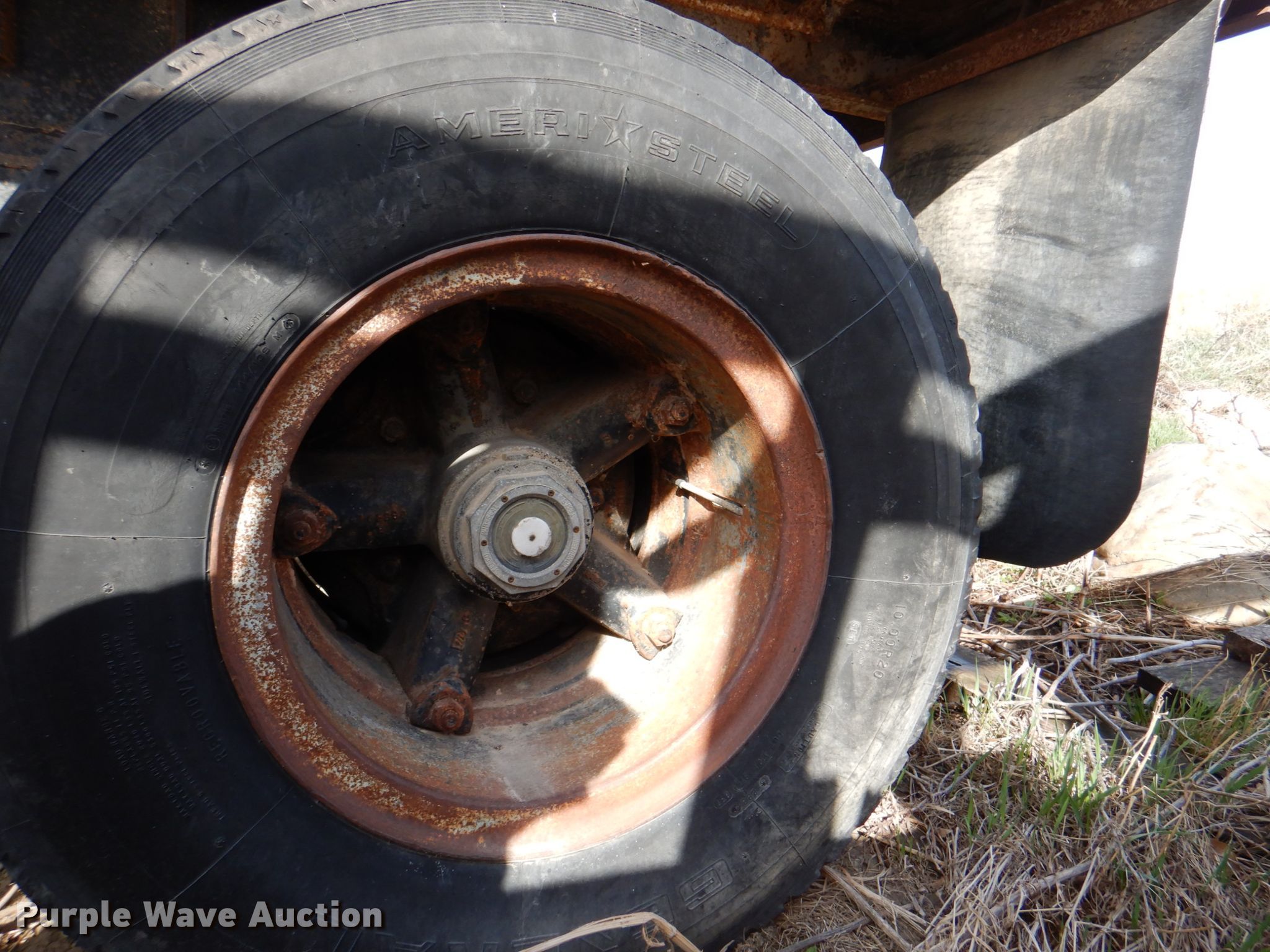 1974 Fruehauf end dump pup trailer. Dimensions. Overall: 32' L x 96" W, Body: 147" L, Side height: 50". Operational Body type: Steel, End gate: Air operated, Roll tarp. Chassis Hitch: Pintle, Suspension: Spring, Brakes: Air, Axles: Spread. Tires Steel wheels, Size: 10.00R20. South Dakota title. FWR514102. Site Work Specialists Inc.. 1410 Jess St. Rapid City, SD 57703