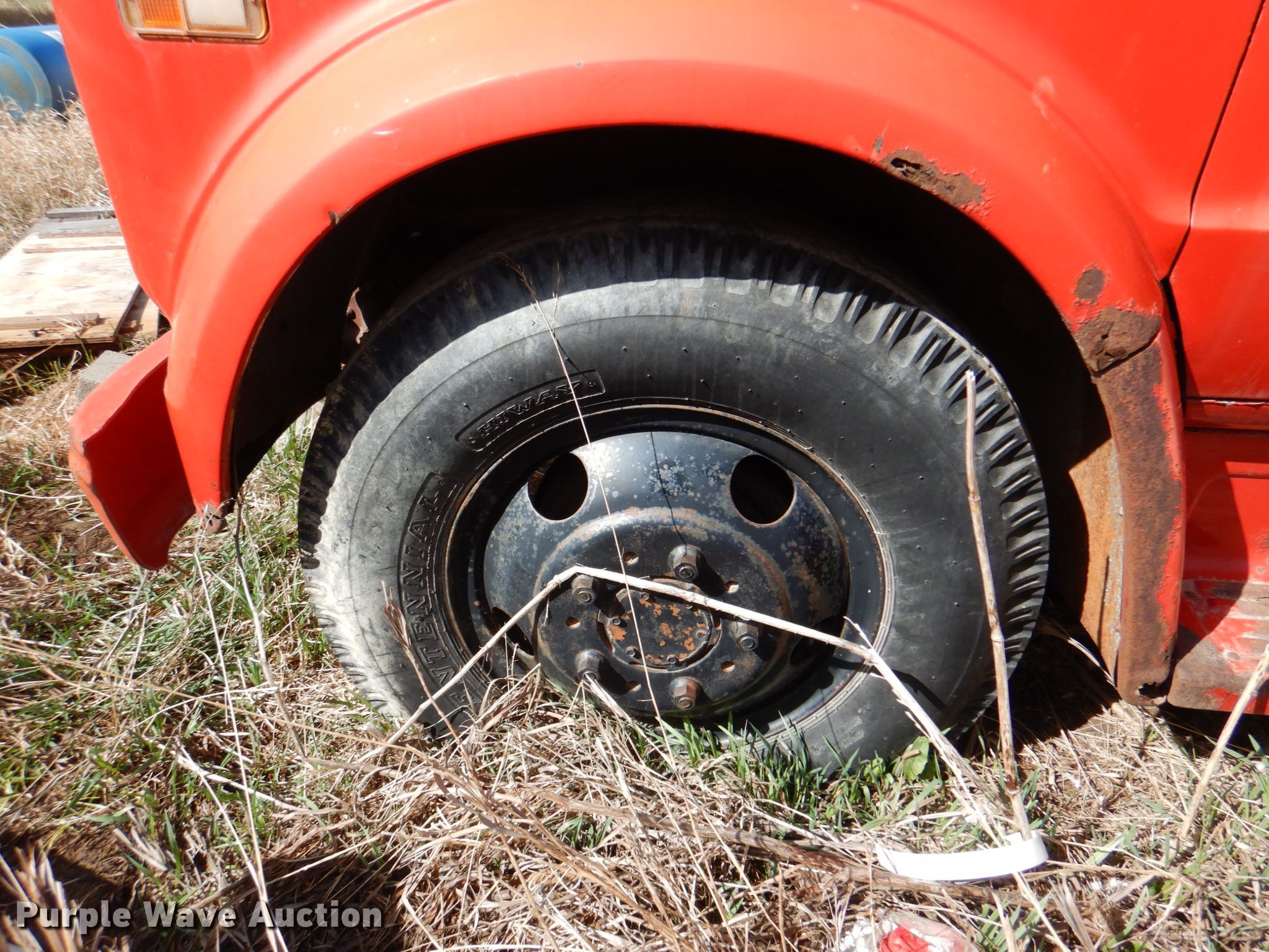 Chevrolet C50 lube truck. 61,301 miles on odometer. Engine Cylinders: 8, Fuel type: Gas. Transmission Manual, Speed: 8. Chassis Axles: Single, Suspension: Spring, GVWR: 19,500 lbs. Interior Heat. Operational Oil/lube system Hose reels, Pump, Reservoirs, Fuel tank Pump.. Tires Front: 9.00-20, Rear: 8.25-20. Notes Unknown operating condition. South Dakota title. CE530P121970. Site Work Specialists Inc.. 1410 Jess St. Rapid City, SD 57703