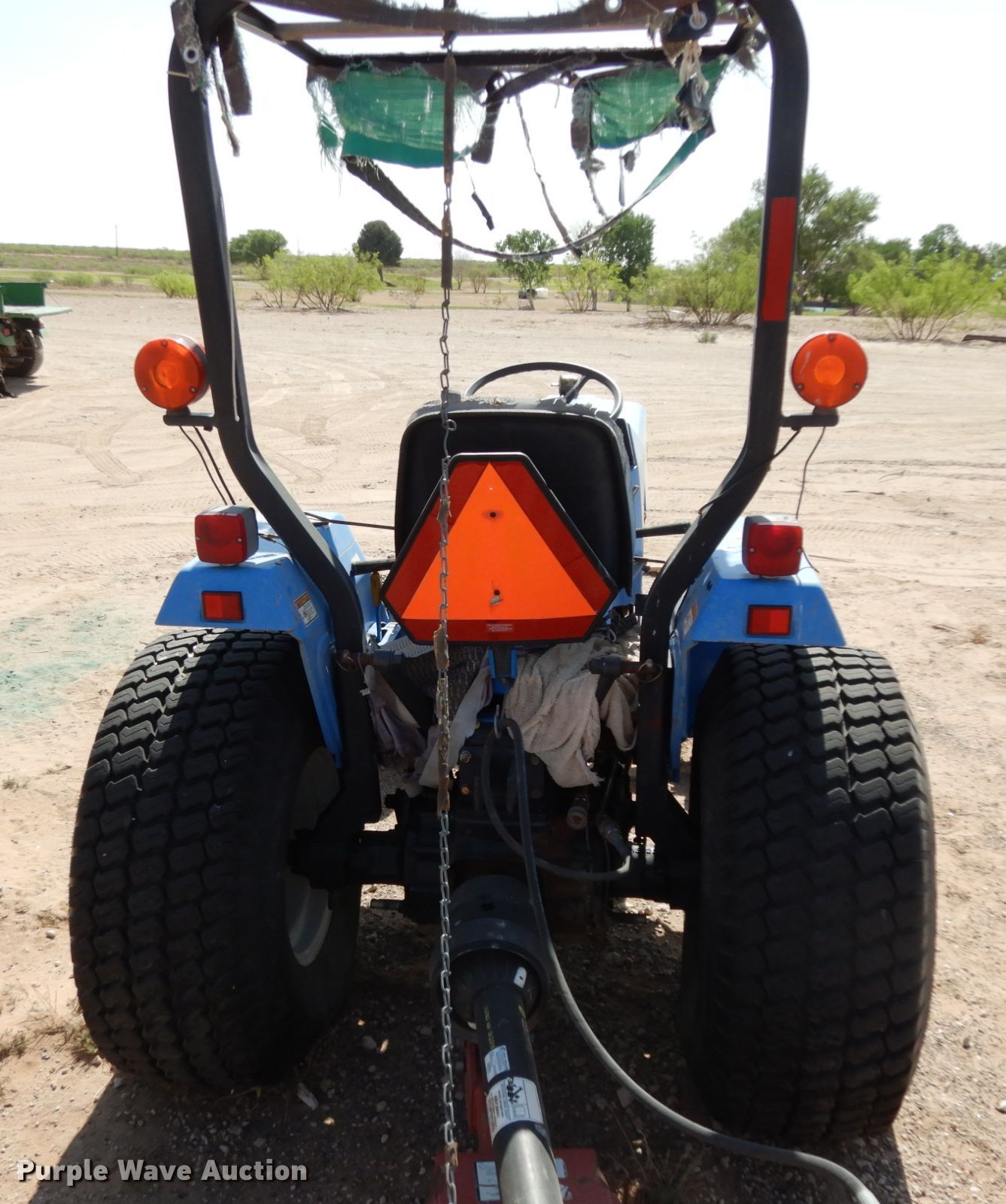 New Holland T1520 tractor. 1,384 hours on meter. Engine Shibaura, Displacement: 1.7L, Cylinders: 3, Fuel type: Diesel. Transmission Synchro, 9F - 3R. Operational PTO: 540, Three point, Hydraulic remote sets Rear: 1. Tires Front: 24x8.50-14, Rear: 13.6-16, Wheelbase: 63". Winkler County - Kermit, TX. 405 S Pyote Ave. Wink, TX 79789