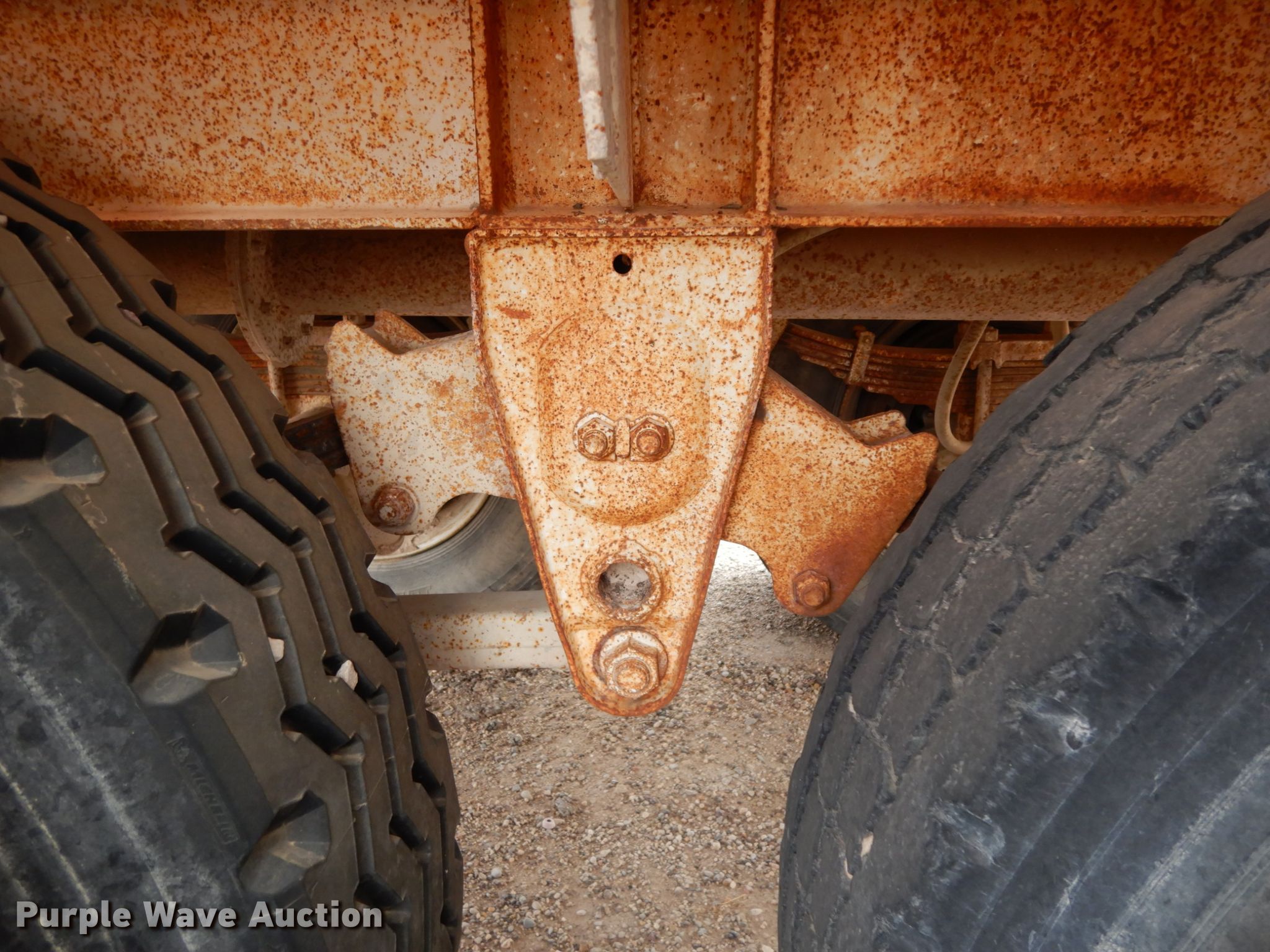 1980 RD-M tank trailer. Dimensions. Overall: 34' L x 8' W. Operational Tank type: Steel BBL capacity: 130, Outlet valves: 1 Size: 4", Relief valve size: 3.5", No. of manways/manholes: 1 Width: 16". Chassis Landing gear: Dual, Suspension: Spring, Brakes: Air, Axles: Tandem. Tires Steel wheels, Size: 11R22.5. Texas title. Title distribution may be delayed up to 14 days from verification of funds. S-3041. Winkler County - Kermit, TX. 729 N Pine St. Kermit, TX 79745
