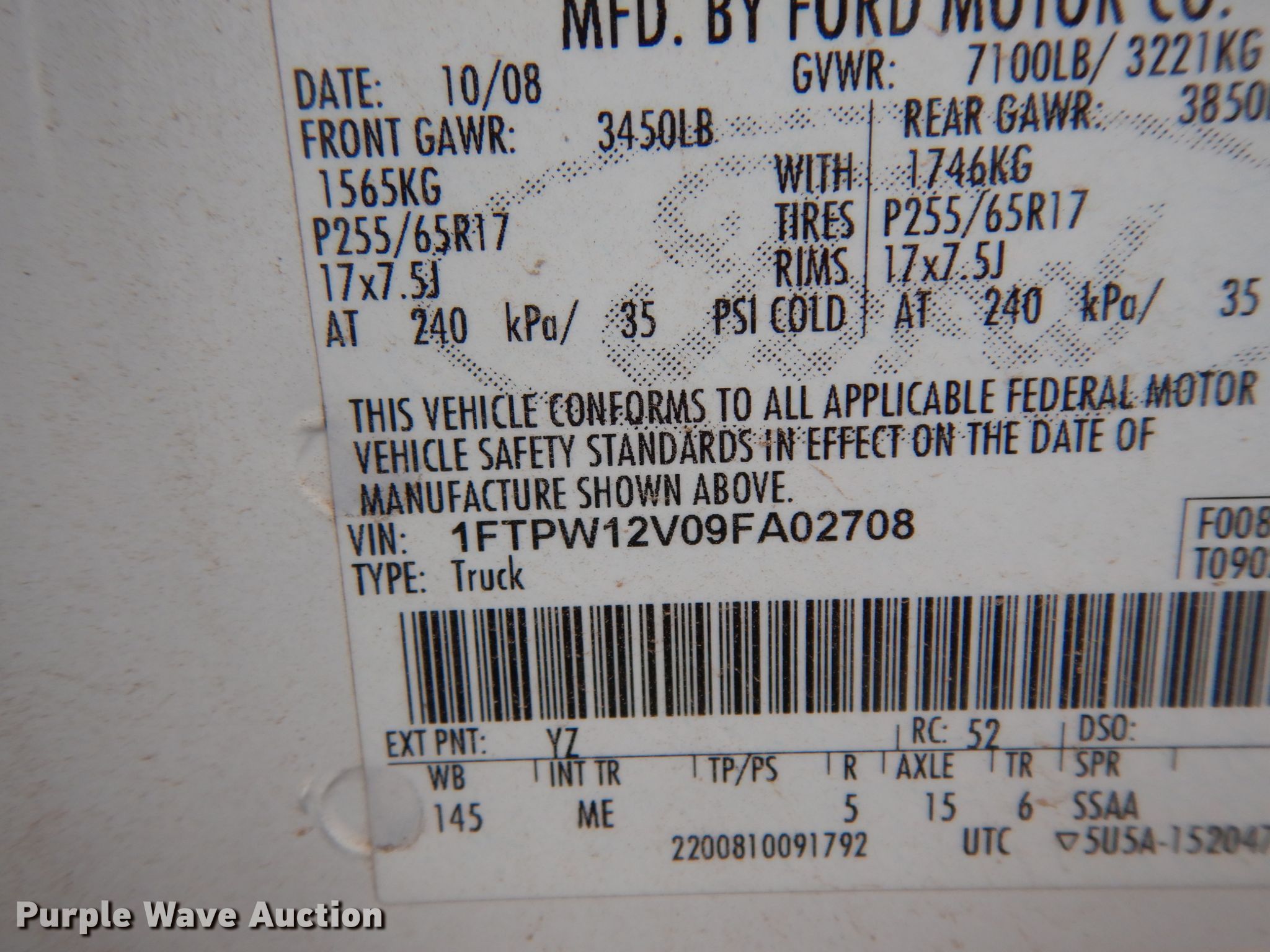 2008 Ford F150 SuperCrew pickup truck. 143,133 miles on odometer. Engine Displacement: 5.4L V8 SOHC 24V FFV, Cylinders: 8, Fuel type: Gas. Transmission Automatic. Interior AC, Heat, Heated mirrors, Power windows, Power locks, Cruise control. Tires Size: 255/65R17. Notes Dead battery, Dash warning indicator: Check engine, TPMS, Windshield chipped or cracked, Unknown operating condition. Title distribution may be delayed up to 14 days from verification of funds. 1FTPW12V09FA02708. Winkler County - Kermit, TX. 729 N Pine St. Kermit, TX 79745