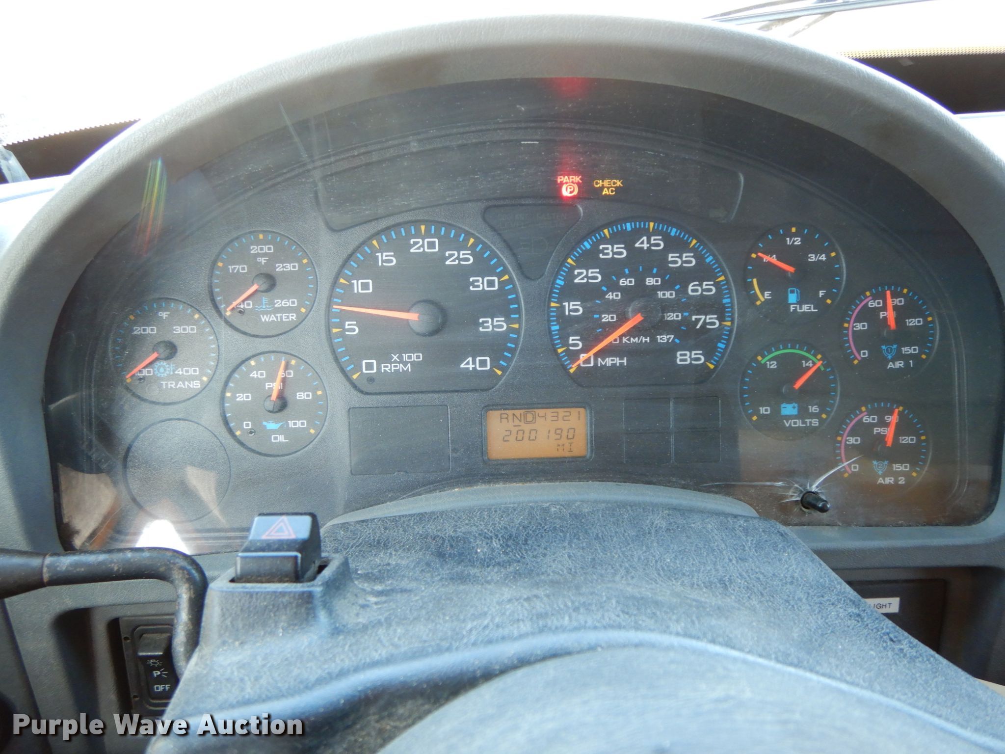 2007 International 7400 dump truck. 200,190 miles on odometer, Engine hours: 9,187, MODOT ID: 7895. Engine International DT570, Displacement: 9.3L, Cylinders: 6, Fuel type: Diesel. Transmission Automatic. Chassis Axles: Tandem, Differential lock: Inter-axle, Suspension: Walking beam, Brakes: Air, Front mount PTO, GVWR: 58,000 lbs FAWR: 18,000 lbs, IAWR: 20,000 lbs, RAWR: 20,000 lbs. Interior AC, Heat, Heated mirrors, Power windows, Cruise control. Operational Dump bed 16' L x 96" W, Side height: 43", Bed type: Steel, Bed vibrator, Roll tarp, Ram: Single , End gate: Air operated. Tires Front: 315/80R22.5, Rear: 11R22.5. Notes Dash warning indicator: Check A/C, Unit will not hold air, Must be towed or hauled. Missouri title. 1HTWHAZT57J501737. Missouri Department of Transportation (MODOT). 52 Business Hwy 54. Eldon, MO 65026