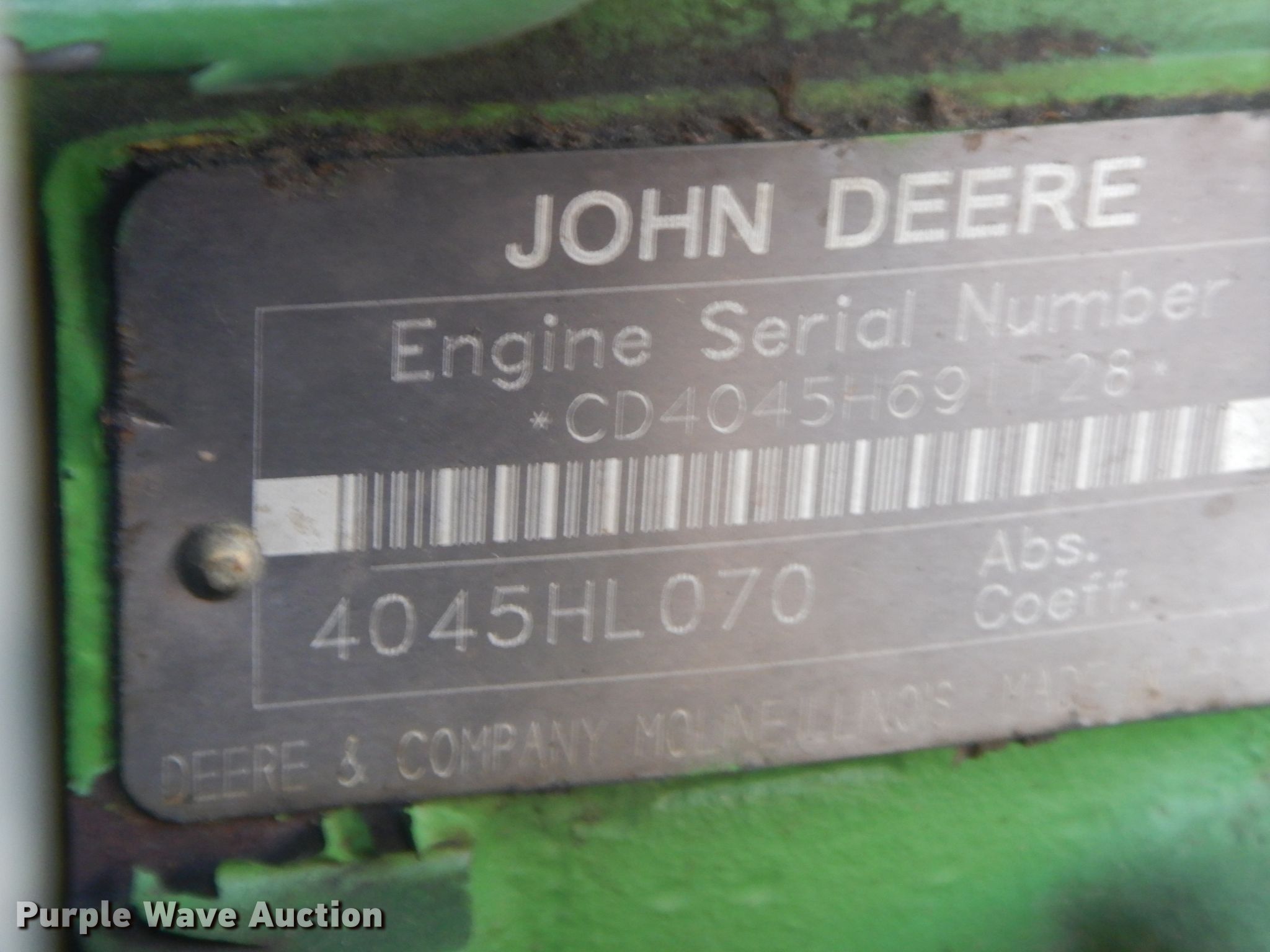 John Deere 6420 MFWD tractor. 3,058 hours on meter. Engine John Deere, Serial: CD4045H691128, Cylinders: 4, Fuel type: Diesel. Transmission Synchro, 12F - 4R. Operational PTO: 540, Three point Top link, Seven pin outlet, Hydraulic remote sets Rear: 3. Tires Front: 12.4-24, Rear: 460/85R34. Notes Transmission issues. Missouri Department of Transportation (MODOT). 52 Business Hwy 54. Eldon, MO 65026