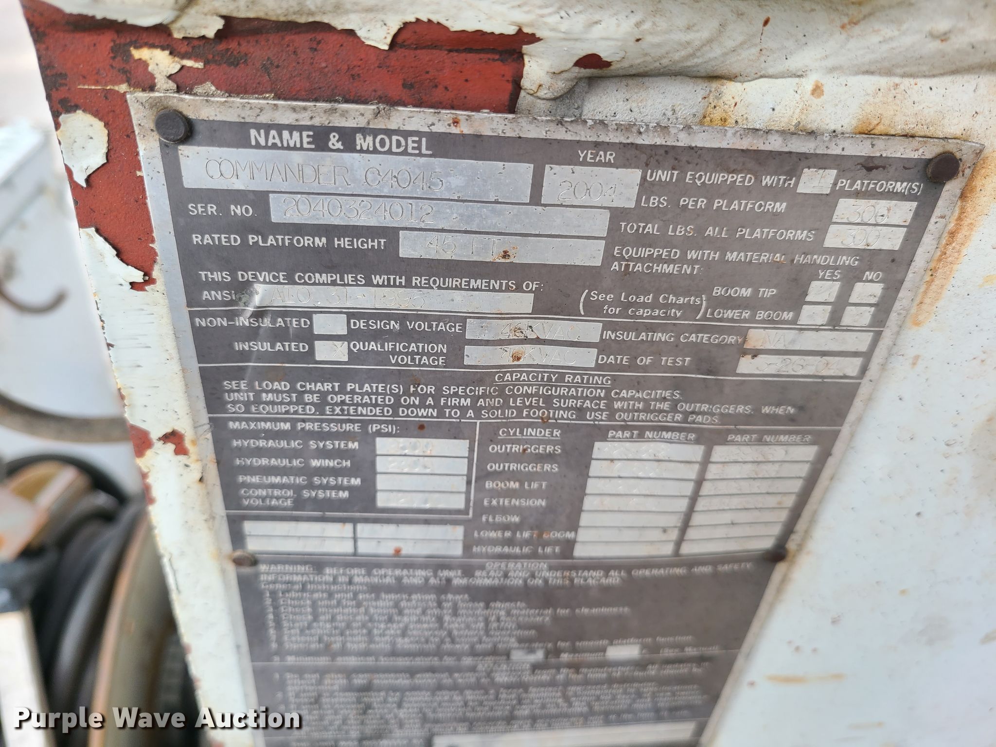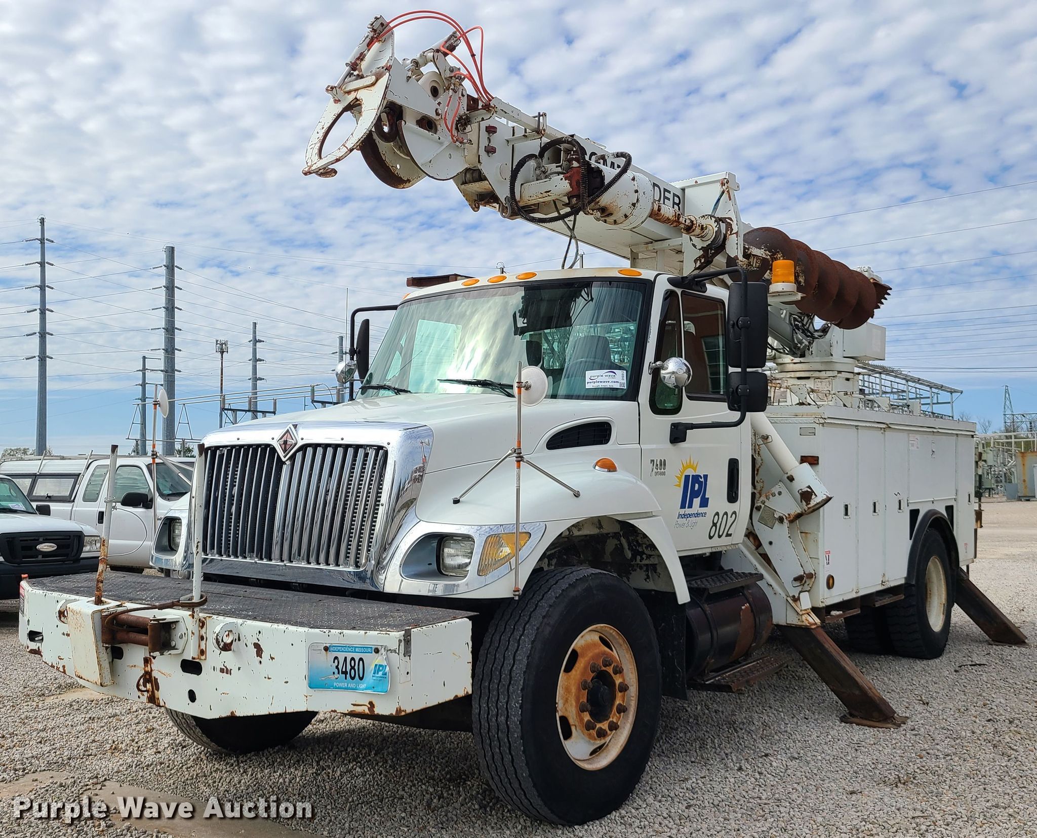 Purple Wave is selling a used Digger Derrick Truck in Missouri. This item is a 2005 International 7400 pressure digger derrick truck with the following: 77,505 miles on odometer, Engine hours: 12,276, Unit #: 3480