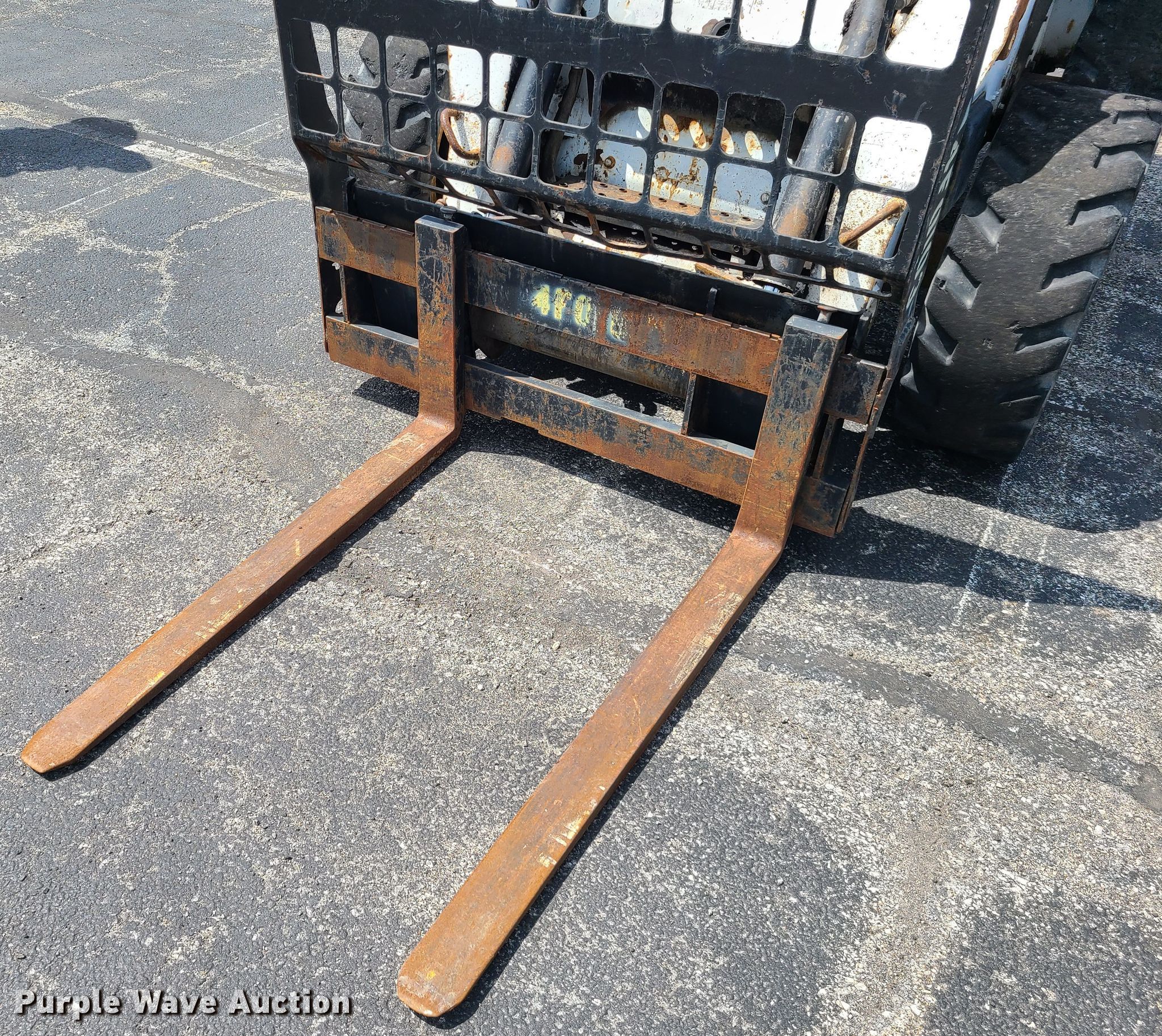 2002 Bobcat S300 skid steer loader. 3,619 hours on meter, Serial: 521512355, Unit #: G8919. Engine Cylinders: 4, Fuel type: Diesel. Transmission Hydrostatic, Two speed travel. Operators station Enclosed cab, Heat, Bucket control: Selectable, Electronic Monitoring System panel. Operational Auxiliary hydraulics, Quick coupler: Hydraulic, Forks Length: 46". Tires Size: 33x12x20, Solid. Notes Weak battery. Missouri Department of Transportation (MODOT). 600 NE Colbern Rd. Lee's Summit, MO 64086