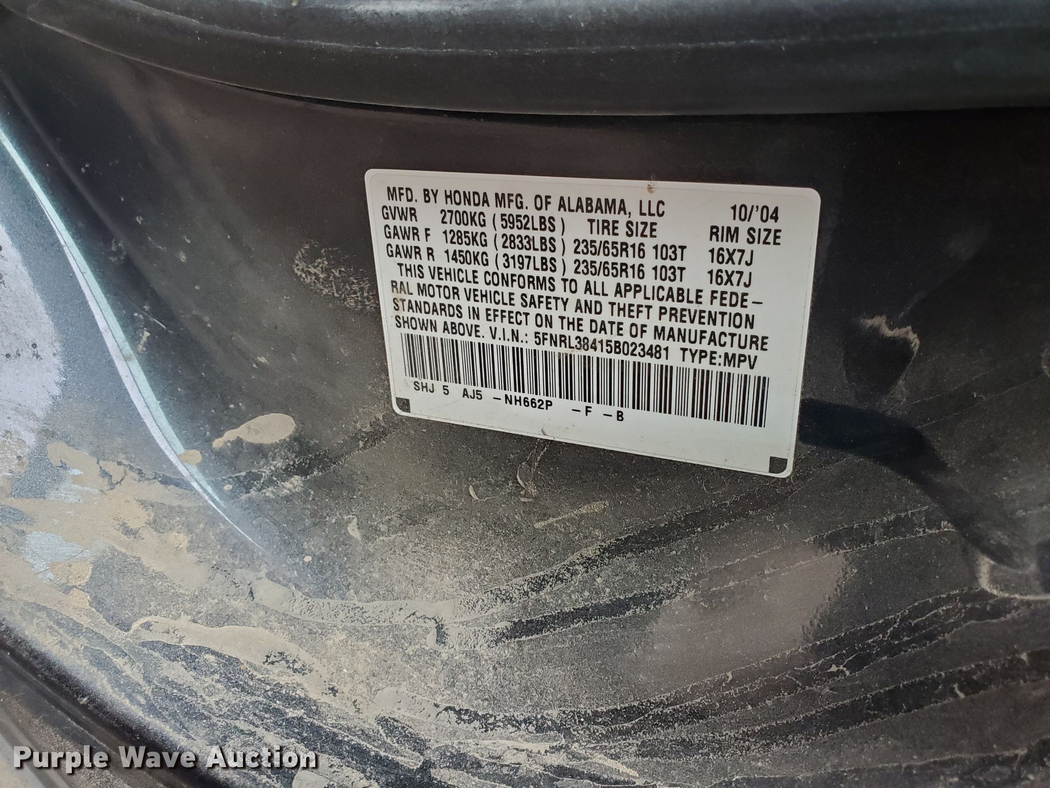 2005 Honda Odyssey van. Unknown miles on odometer. Engine Displacement: 3.5L V6 SOHC 24V, Cylinders: 6, Fuel type: Gas. Transmission Automatic. Interior AC, Heat, Power windows, Power locks, Cruise control. Tires Size: 235/65R16. Notes No keys, Contents not included, Wreck damage, Tire missing, Unknown operating condition. Mileage has not been verified. Odometer discrepancy will be marked on the title. Vehicle is abandoned. Condition and history are unknown. No additional information is available. Transfer of ownership documentation will be Kansas Department of Revenue form TR-105. This form is the only ownership documentation that will be provided and is sufficient for a Kansas buyer to apply for a Kansas title. Bidders are responsible for verifying if this is sufficient to obtain a title in their own titling jurisdiction prior to bidding. Buyer may be required to obtain a motor vehicle inspection from the Kansas Highway Patrol prior to titling. 5FNRL38415B023481. Gove County Sheriff Department. 420 Broad St. Gove, KS 67736