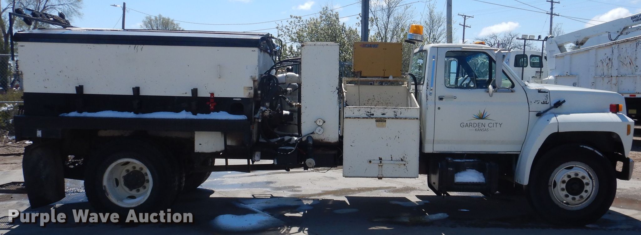 Purple Wave is selling a used Oil Distributor Truck in Kansas. This item is a 1992 Ford F700 pot hole patcher truck with the following: 38,409 miles on odometer