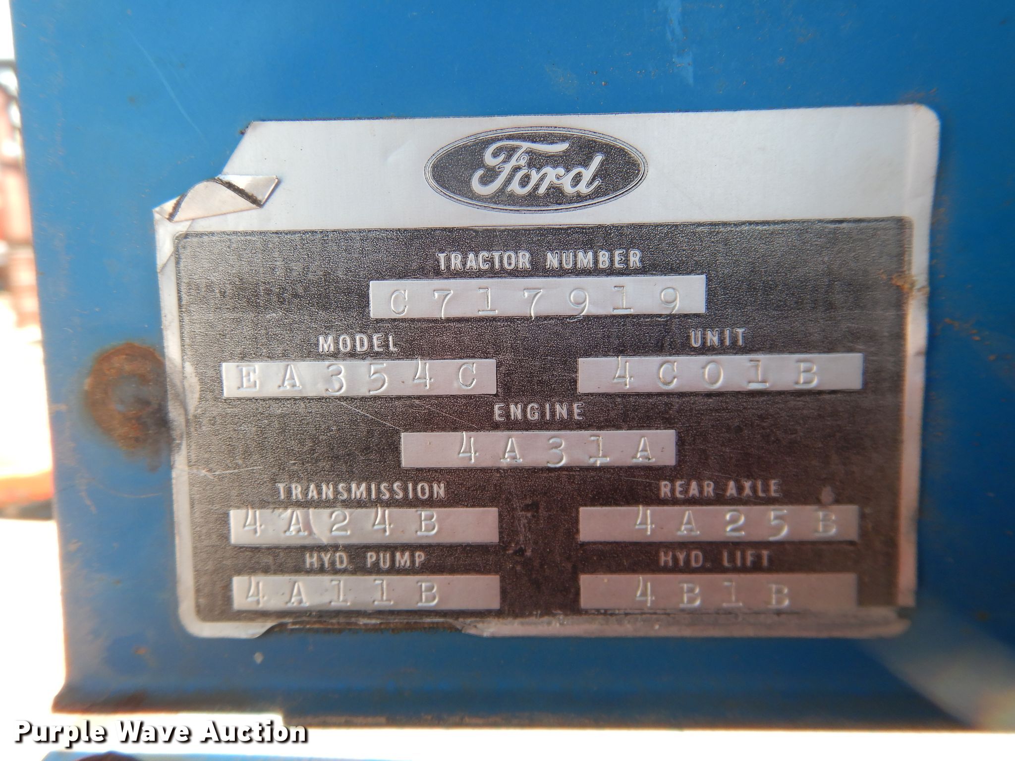 Ford G610 tractor. Unknown hours on meter, Serial: C717919. Engine Cylinders: 4, Fuel type: Diesel. Transmission Manual, 8F - 2R. Operational PTO: 540, Three point, Hydraulic remote sets Rear: 2, Suitcase weights: 5. Tires Front: 7.50-18, Rear: 480/70R30. Garden City KS Utilities Dept.. 103 S 9th St. Garden City, KS 67846