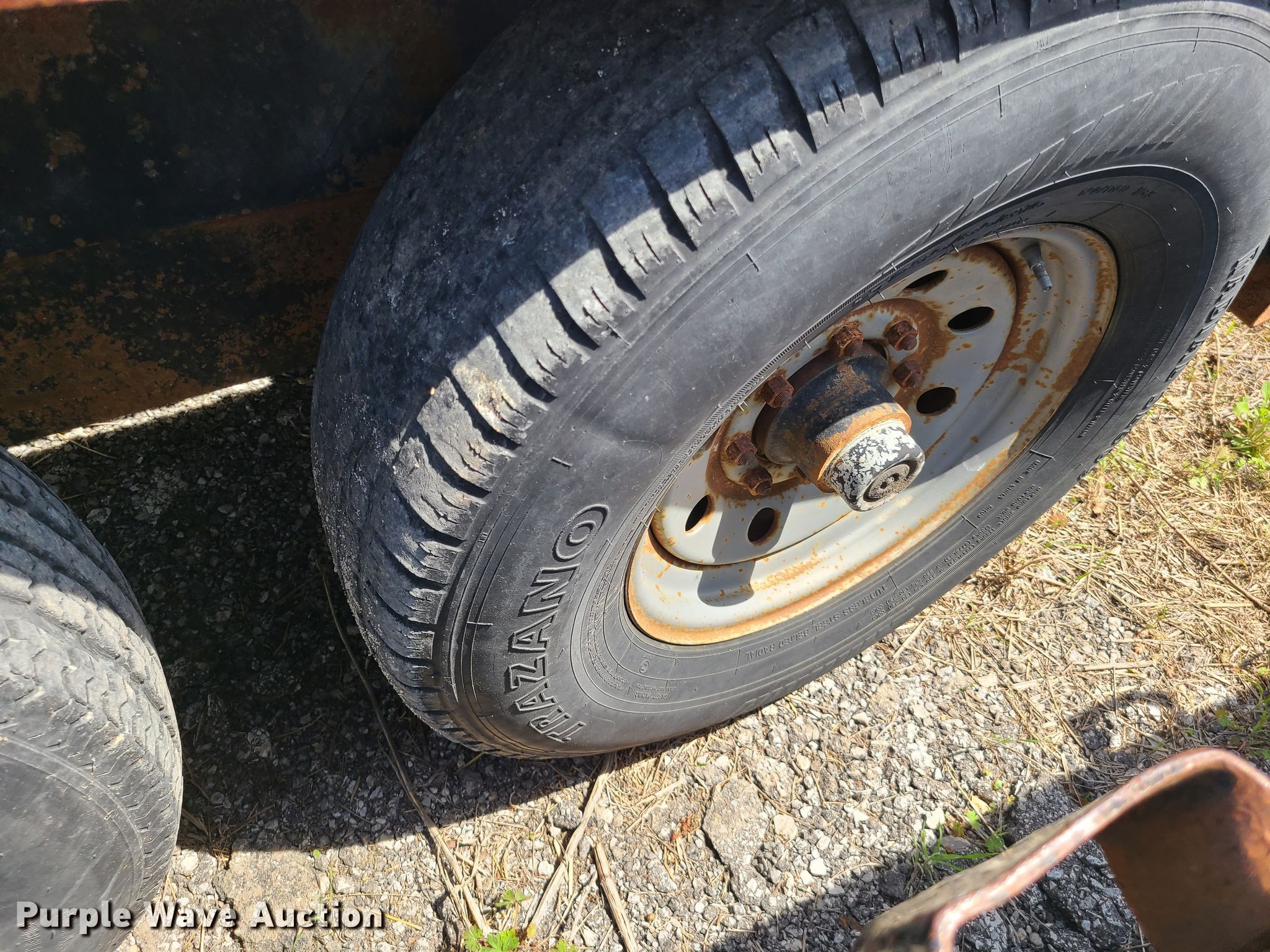 2006 Hillsboro S418-2X-BT utility trailer. Dimensions. Overall: 21' x 102" W, Deck: 18' x 80" W, Ramps: Manual Length: 5'. Operational Deck type: Wood. Chassis Landing gear: Single, Suspension: Spring, Brakes: Electric, Axles: Tandem, GVWR: 12,500 lbs, GAWR: 7,000 lbs. Tires Size: 235/85R16. Missouri title. 1TH3B6DK861022478. City of Grain Valley Fleet Maintenance. 618 James Rollo Ct. Grain Valley, MO 64029