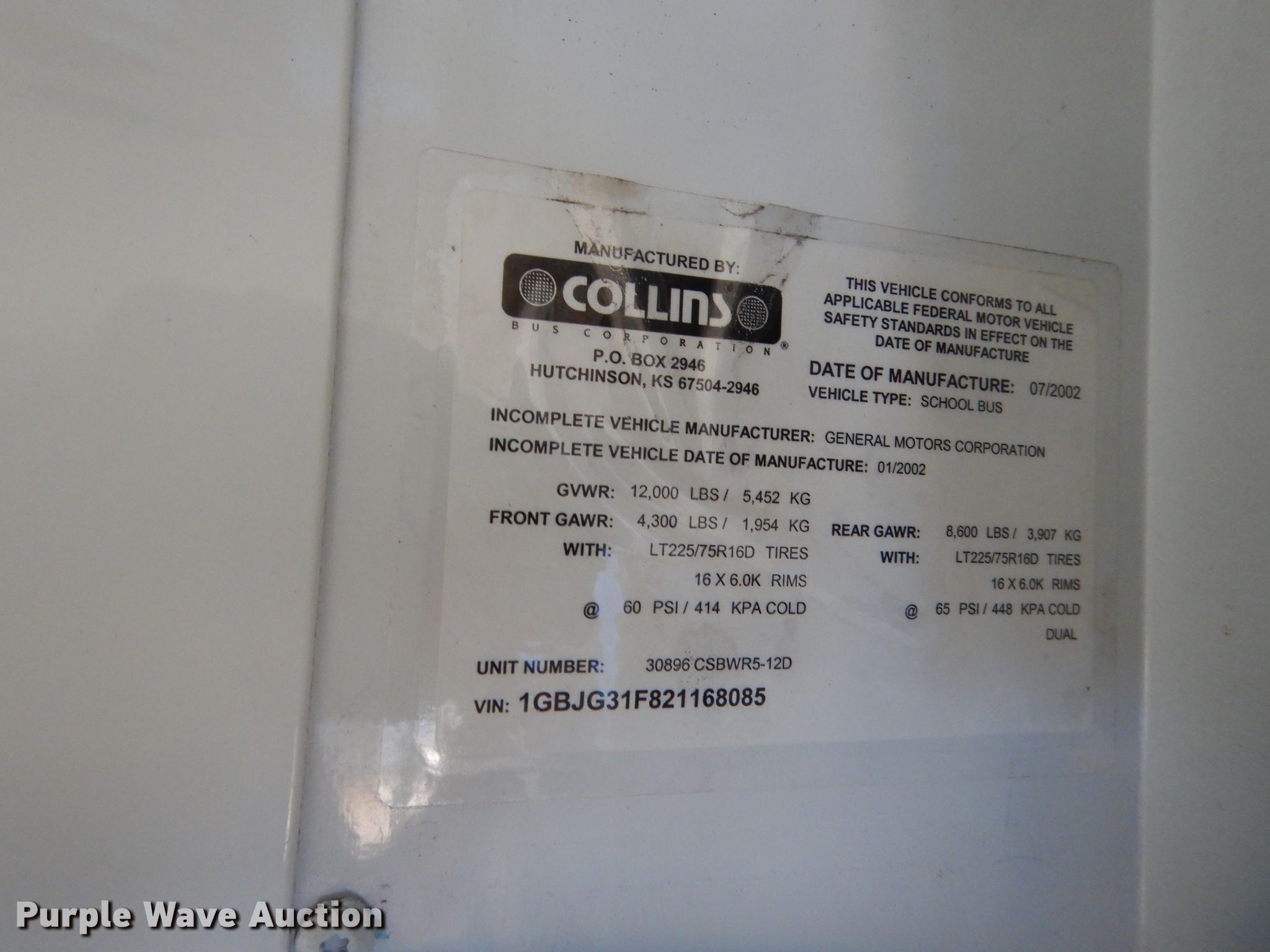 Purple Wave is selling a used Bus in Oklahoma. This item is a 2002 Chevrolet Express G3500 school bus with the following: Unknown miles on odometer