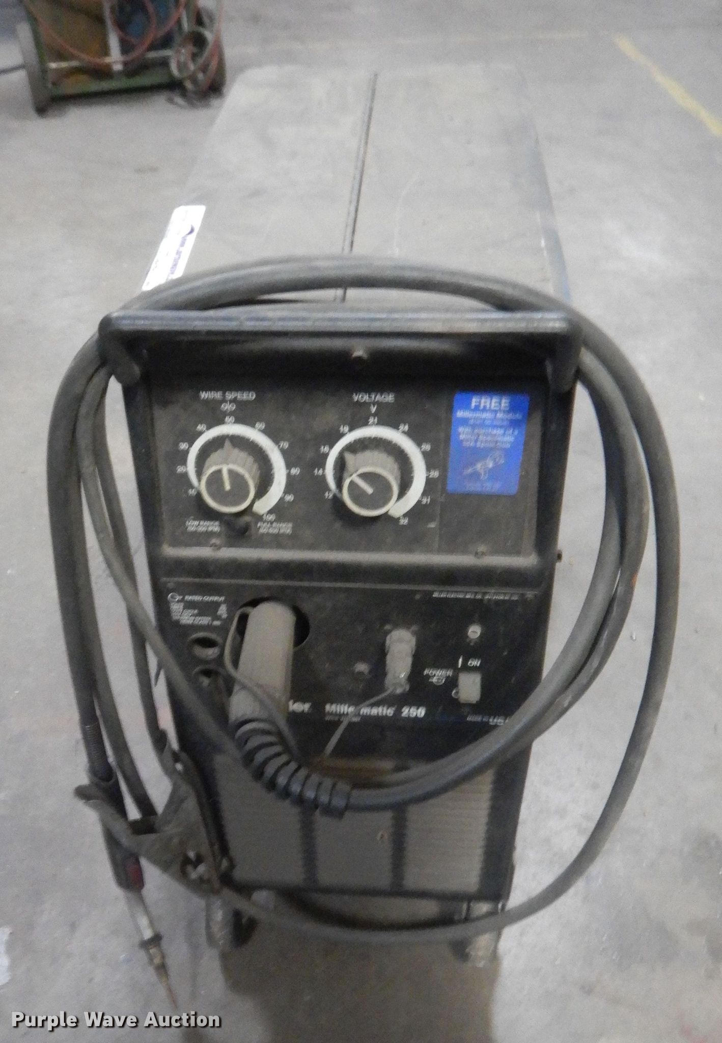 Purple Wave is selling a used Welder (Manual) in Oklahoma. This item is a Miller Millermatic 250 welder with the following: 200 amp, Wire feeder