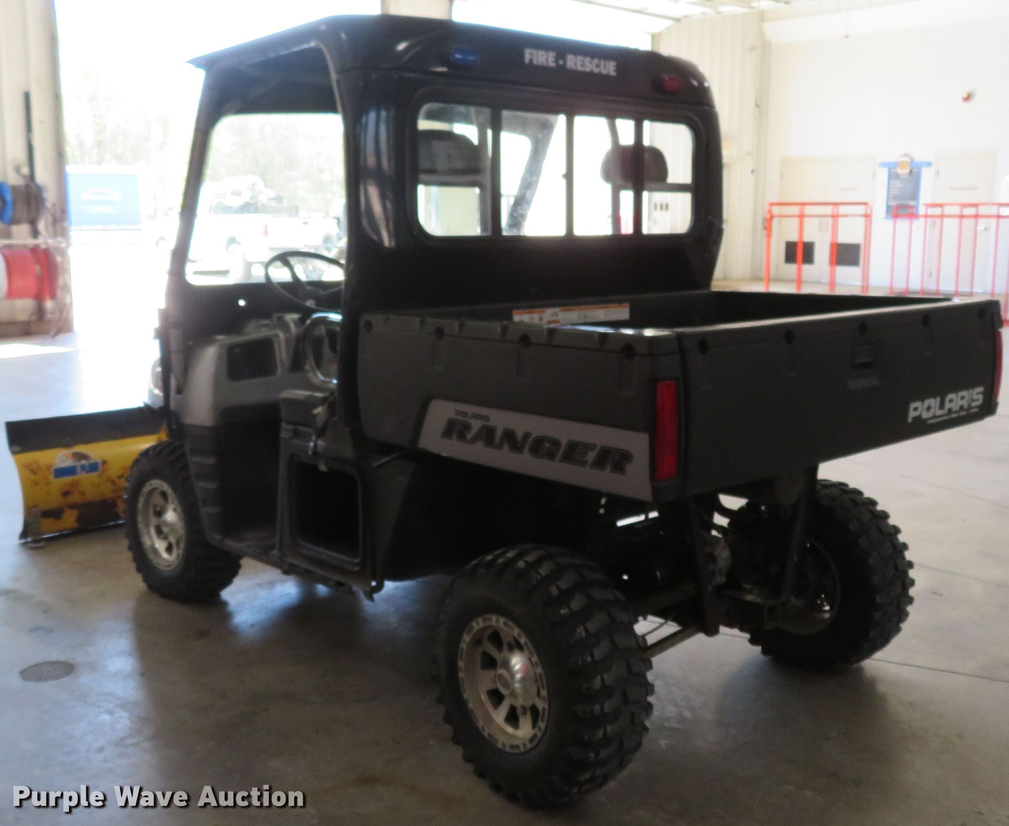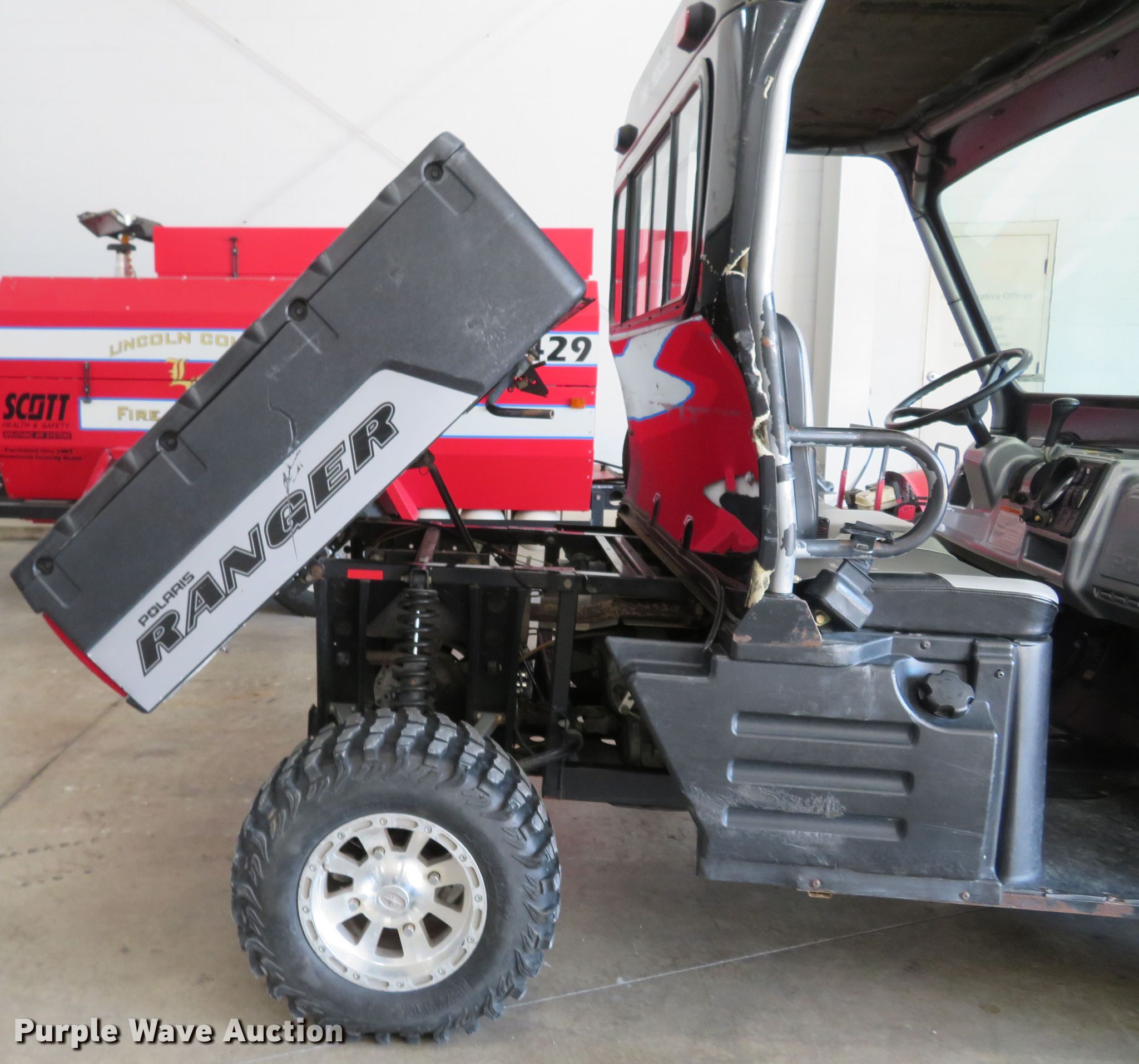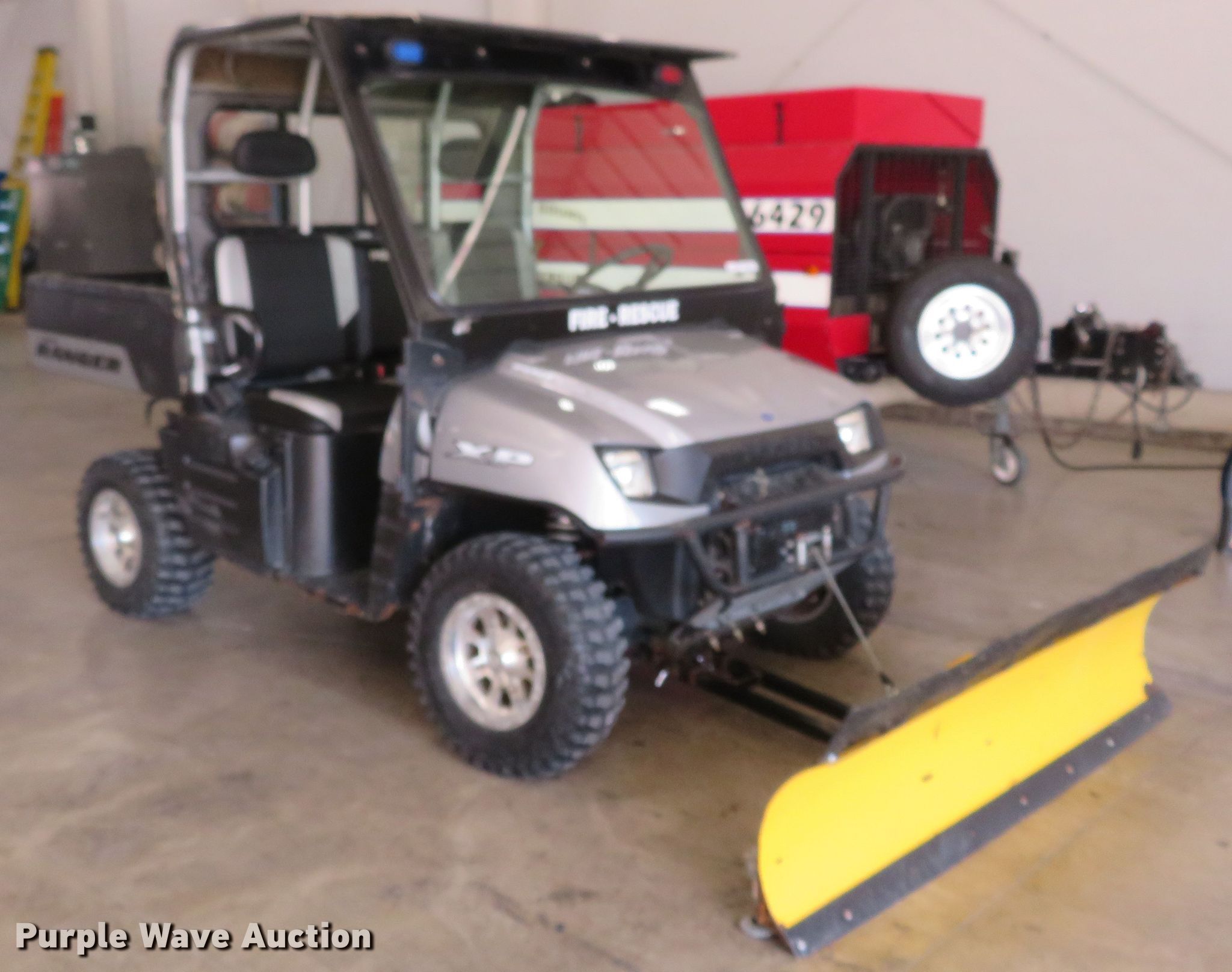 2007 Polaris 700 XP Ranger utility vehicle. 2,615 miles on odometer, Engine hours: 552. Engine Cylinders: 2, Fuel type: Gas, Electric start. Transmission CVT. Chassis Four wheel drive. Operators station Canopy, OROPS, Passengers: 2. Operational Winch, Receiver hitch, Dump bed 54" L x 36" W, Dump bed type: Manual, Attachment Moose Plow Width: 72".. Tires Front: AT25x8R12, Rear: 255/55R12. Notes Non-operational fuel gauge, Windshield cracked. View repairs. Transfer of ownership documentation will be a bill of sale. 4XARH68A874113396. Lincoln County Fire Protection District. 700 E Cherry St. Troy, MO 63379