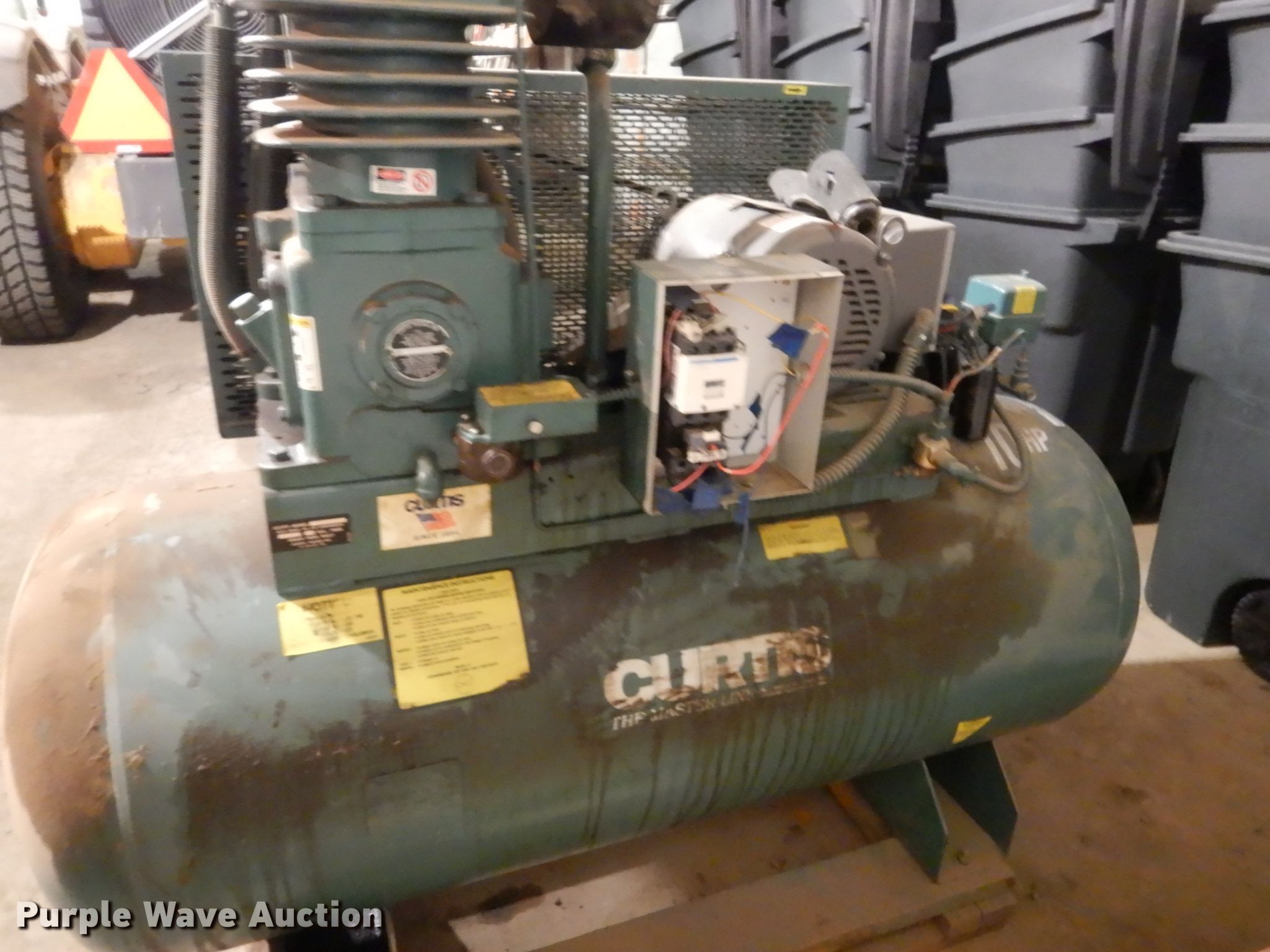 Purple Wave is selling a used Air Compressor in South Dakota. This item is a Curtis air compressor with the following: HP: 10, Volts: 230