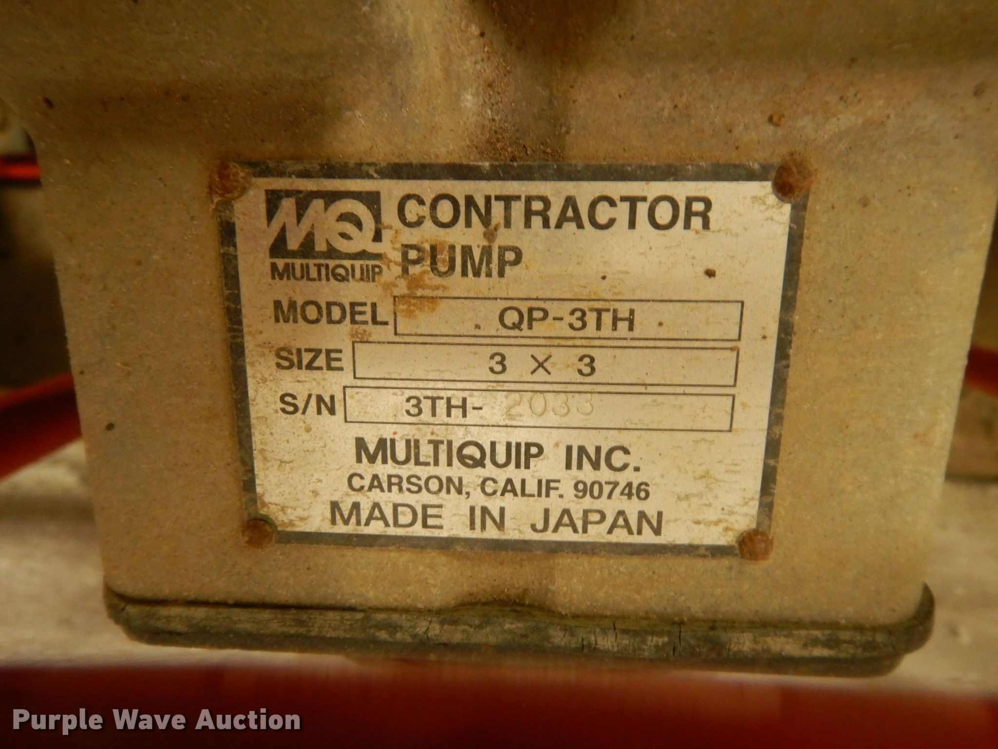 (3) Multiquip water pumps. (2) Model: QP-3TH Honda single cylinder gas engine, 3" intake/discharge, Model: QP-301 TH Honda single cylinder gas engine , 8 HP. Notes Unknown operating condition. City of Elk Point. 305 E Rose St. Elk Point, SD 57025