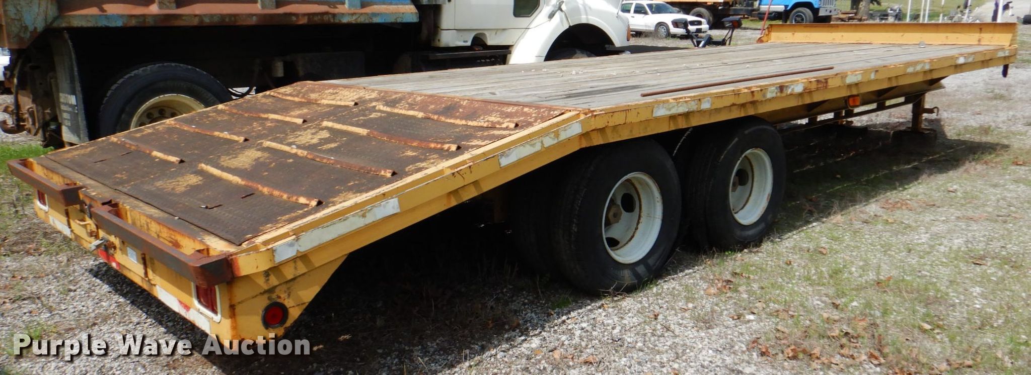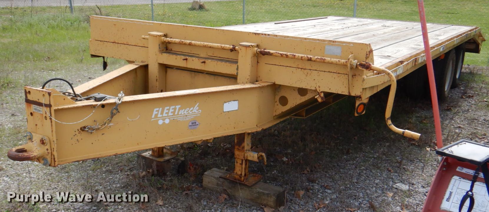Purple Wave is selling a used Car or Utility Trailer in Missouri. This item is a Fleetneck utility trailer with the following: Overall: 29.5' L x 101" W, Deck: 24.4' L x 101" W, Tail length: 60", Ramps: Manual, Length: 67"