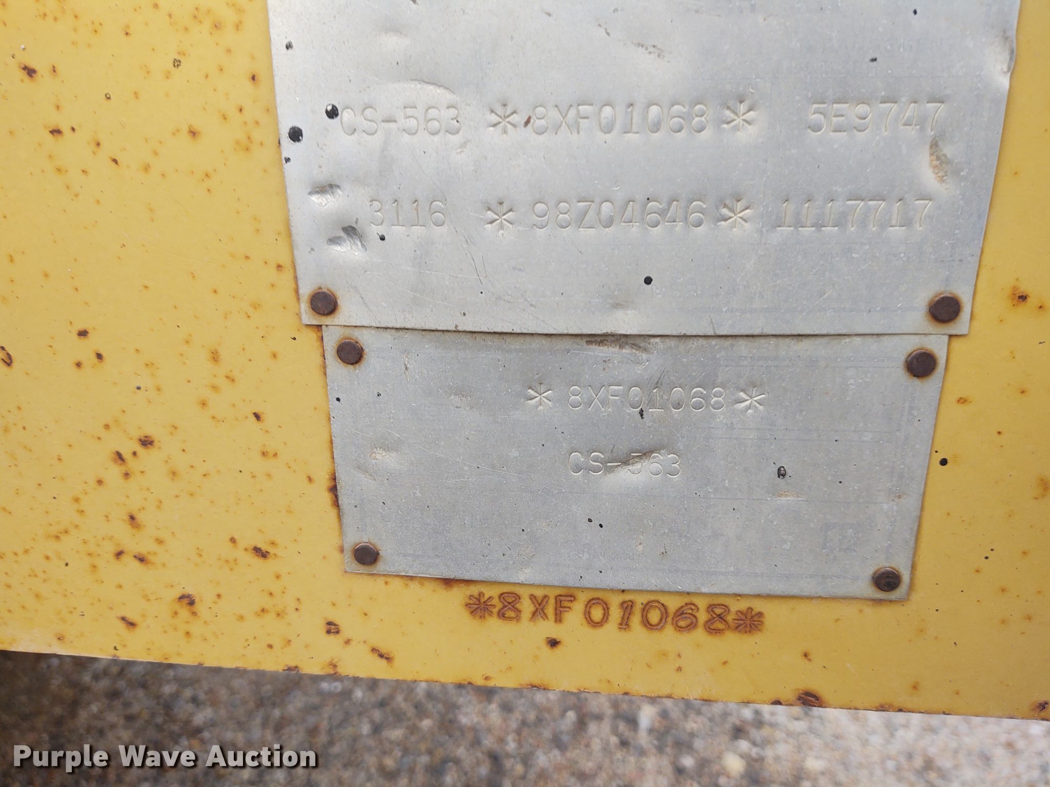 1994 Caterpillar CS-563 single drum roller. 3,442 hours on meter, Serial: 8XF01068. Engine Caterpillar 3116, Serial: 98Z04646, Cylinders: 6, Fuel type: Diesel. Transmission Hydrostatic. Operators station Enclosed cab, Heat. Operational Drum: Smooth, Front drum Width: 84", Drum scrapers: Front. Tires Size: 16.9-30. View repairs. Butler County. El Dorado, KS 67042