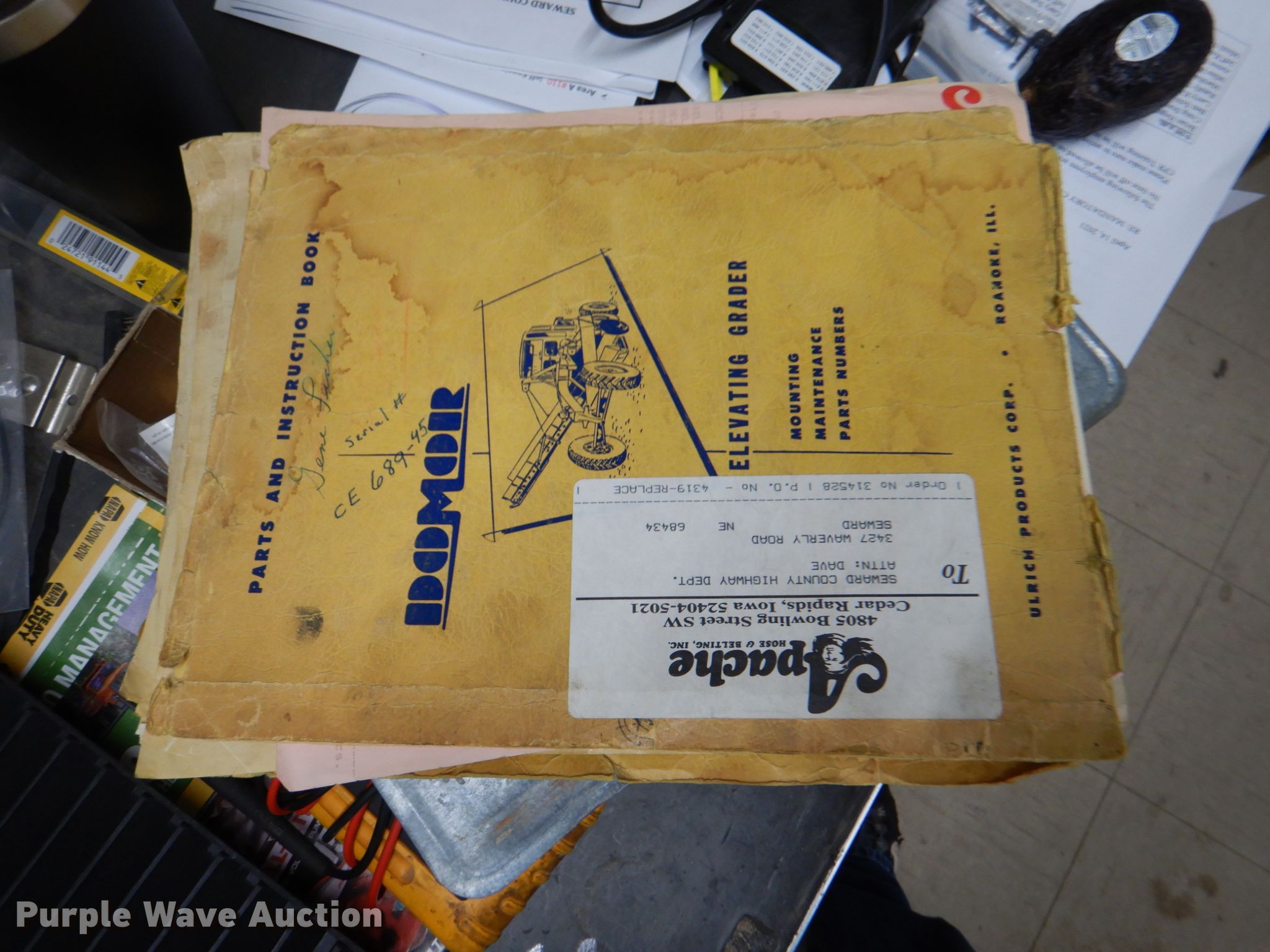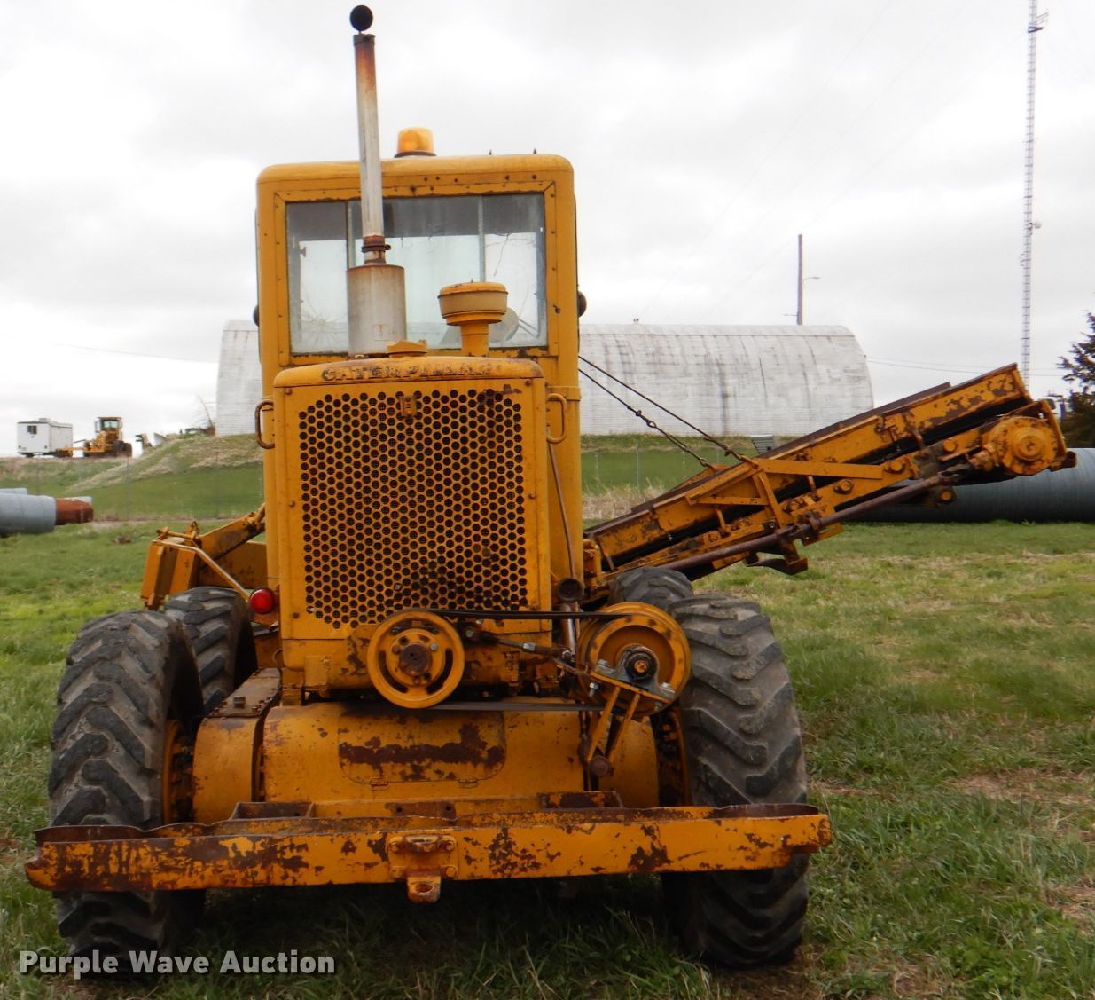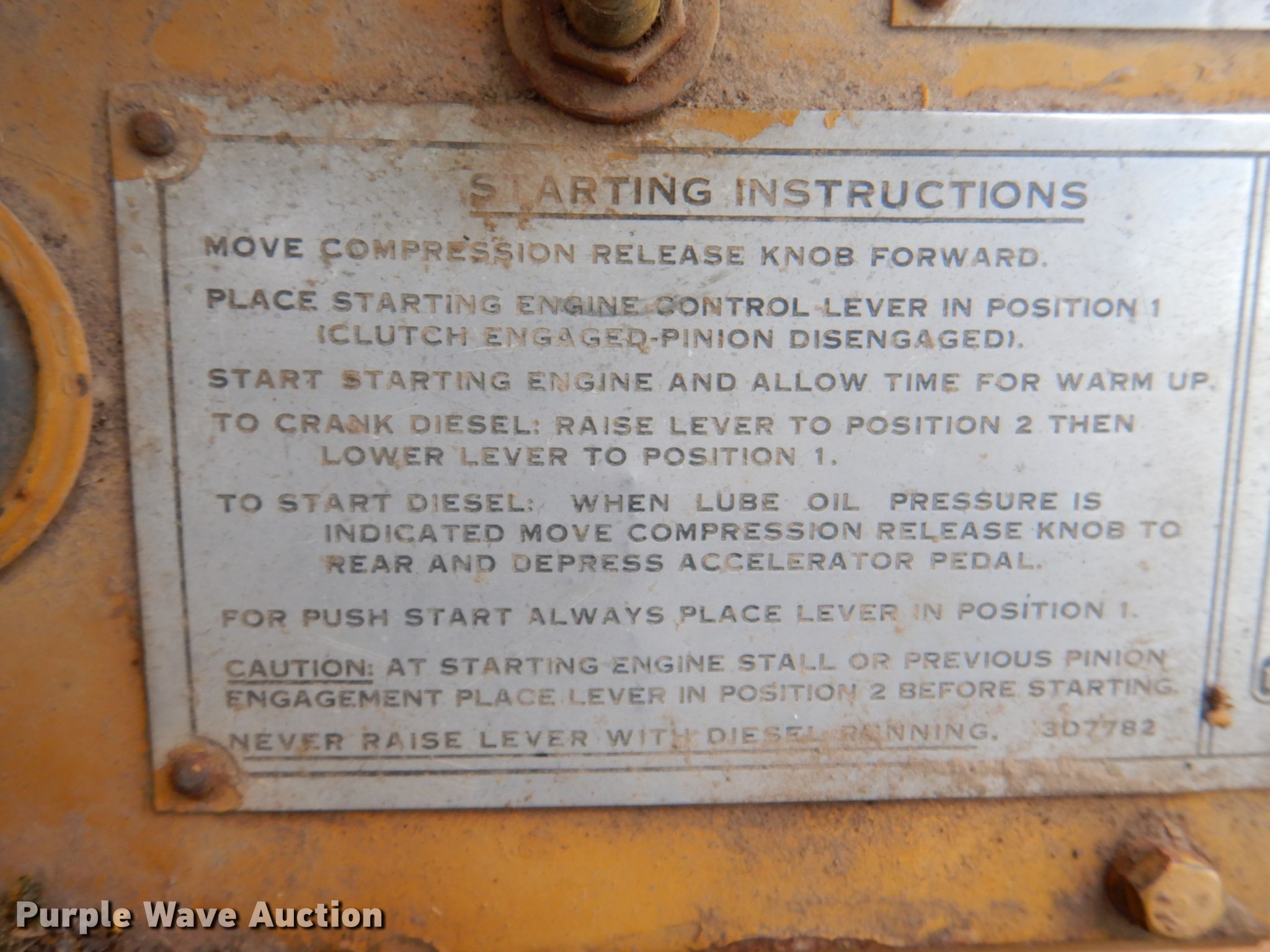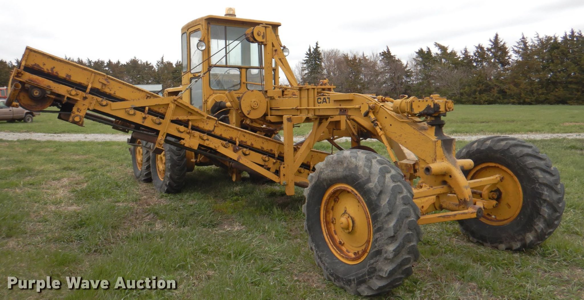 1960 Caterpillar 12 Series E rigid frame motor grader. Unknown hours on meter, Serial: 99E2032. Engine Caterpillar , Cylinders: 6, Fuel type: Diesel, Pony motor. Transmission Powershift, 6F - 2R. Operators station Enclosed cab, Hydraulic control valves: 6. Operational Ditching plow, 29" disk, 16' L elevator, 42" W conveyor. Tires Size: 13.00R24. Notes Unknown operating condition of elevator assembly, Non-operational brakes, Unknown operating condition Pony motor has not been used in eight years, Glass cracked. Seward County, NE. 3427 Waverly Rd. Seward, NE 68434