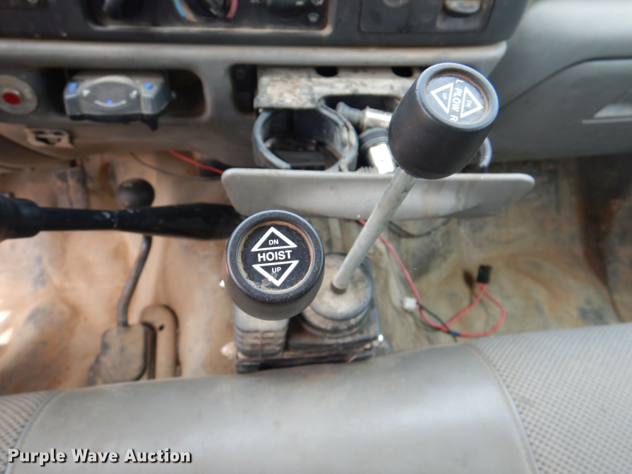 2004 Ford F550 dump flatbed truck. 180,089 miles on odometer. Engine Displacement: 6.8L V10 SOHC 20V, Cylinders: 10, Fuel type: Gas. Transmission Manual, Speed: 6. Chassis Axles: Single, Suspension: Spring, PTO, Wet kit, GVWR: 17,500 lbs. Interior AC, Heat, Cruise control, Auxiliary controls, Brake controller. Operational Dump flatbed Knapheide P3318501, Serial: 925274-93C, 9.3' L x 96" W, Removable sides, Ram: Single, Ice breaker spreader Length: 96", Width: 52", Western ultra snow plow mount Hydraulic , Snow plow blade Width: 108", Bolt on cutting edge.. Tires Size: 225/70R19.5. Notes Dash warning indicator: ABS, Windshield chipped or cracked. Missouri title. 1FDAF57S44EC76581. 655 2nd St. Osceola, MO 64776