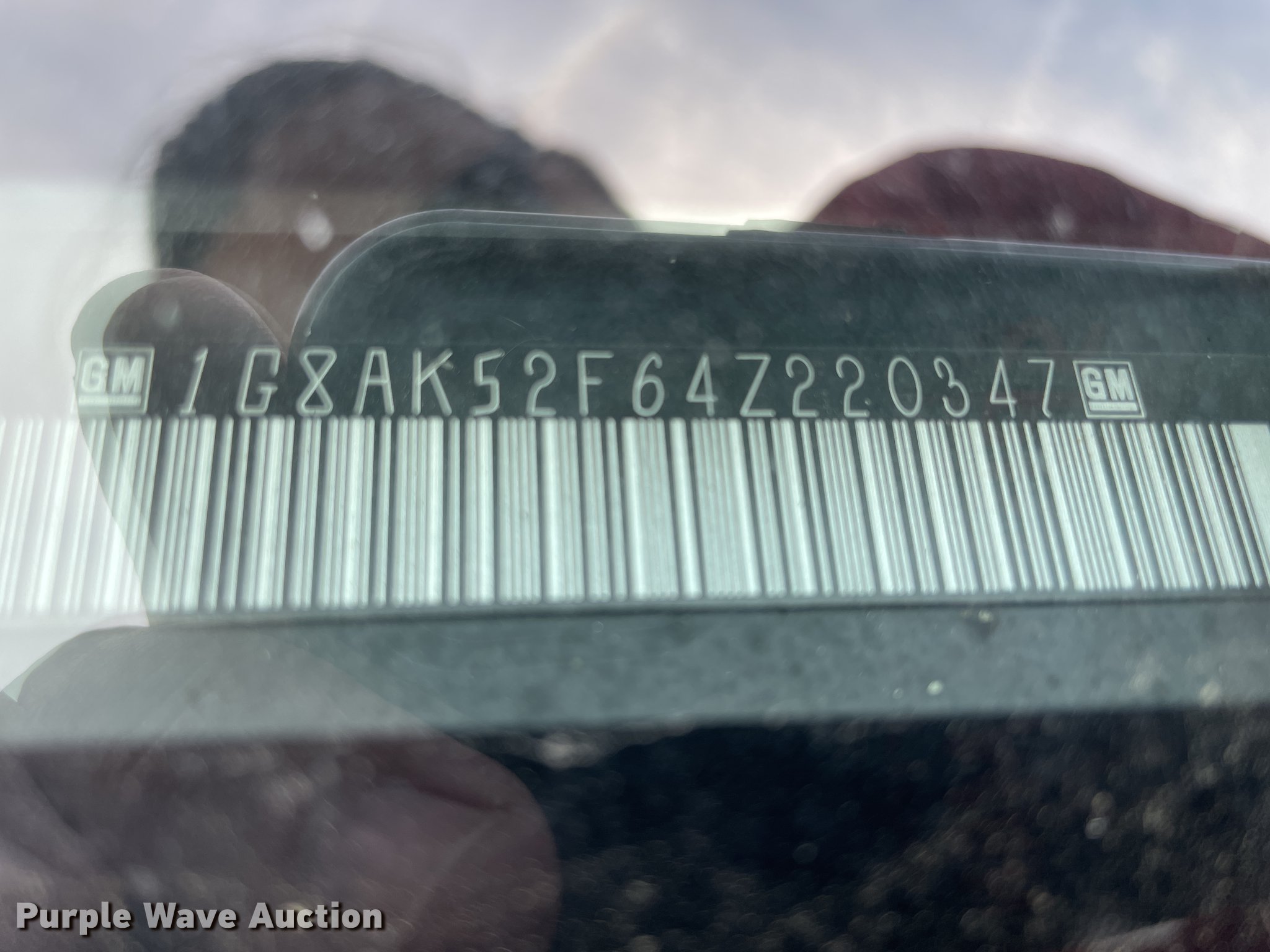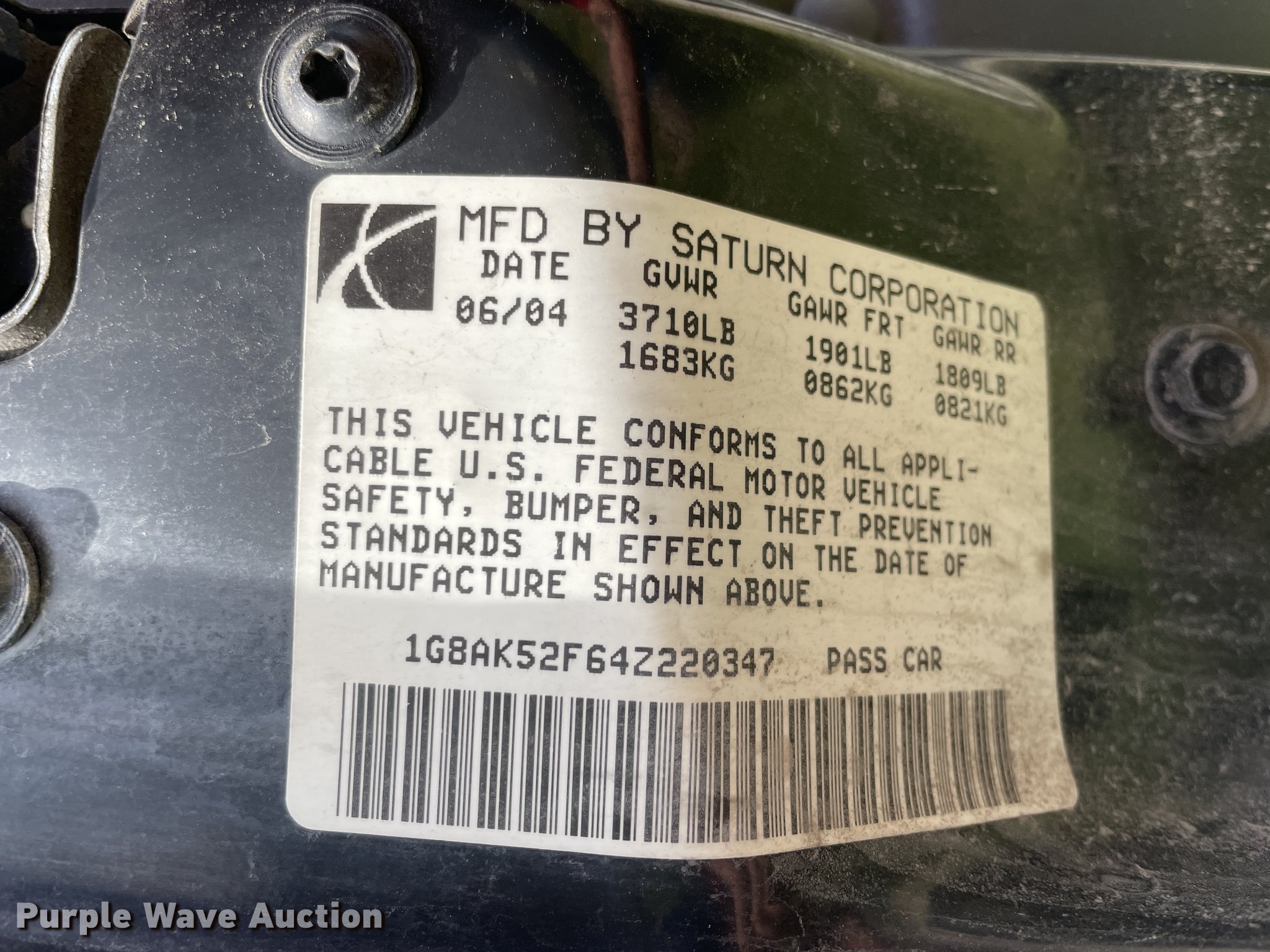 2004 Saturn Ion. 184,893 miles on odometer. Engine Displacement: 2.2L L4 DOHC 16V, Cylinders: 4, Fuel type: Gas. Transmission Manual, Speed: 5. Interior AC, Heat, Power windows, Power locks, Cruise control. Tires Size: 205/55R16. Notes Dash warning indicator: Check engine. Oklahoma title. 1G8AK52F64Z220347. South Coffeyville Police Department. 301 8th St. S Coffeyville, OK 74072
