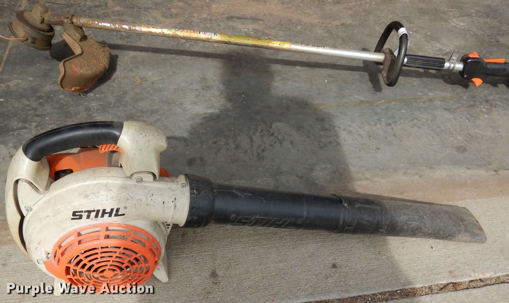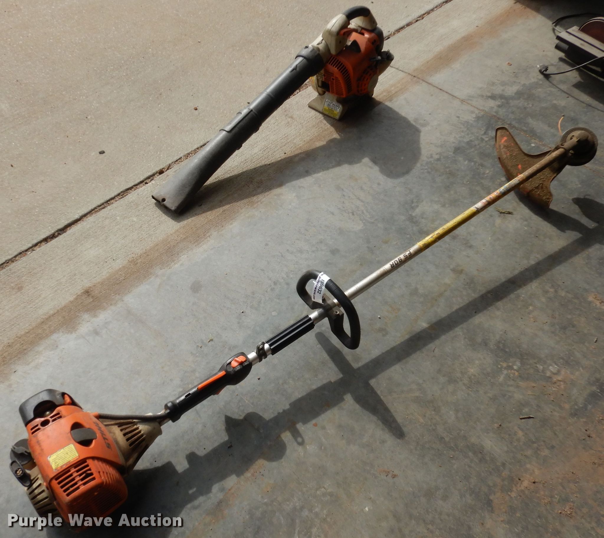 Purple Wave is selling a used Lawn and Garden in Kansas. This item is a Lawn care equipment with the following: Stihl FS90R string trimmer, Stihl BG86C blower, Off switch needs replaced on blower
