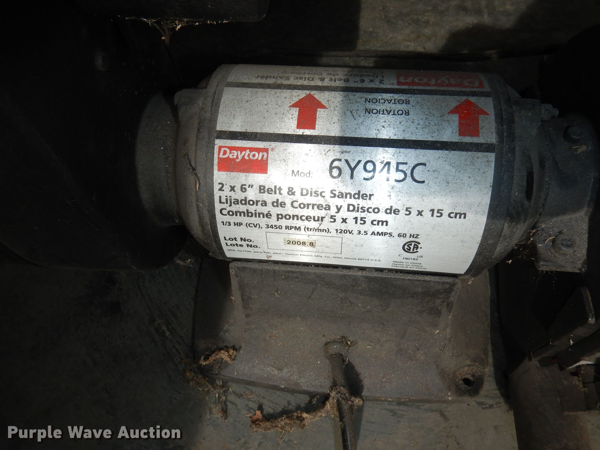 Purple Wave is selling a used Tools in Kansas. This item is a Dayton 6Y945C sander with the following: 2" x 6" belt, Disc sander, Additional sandpaper belts
