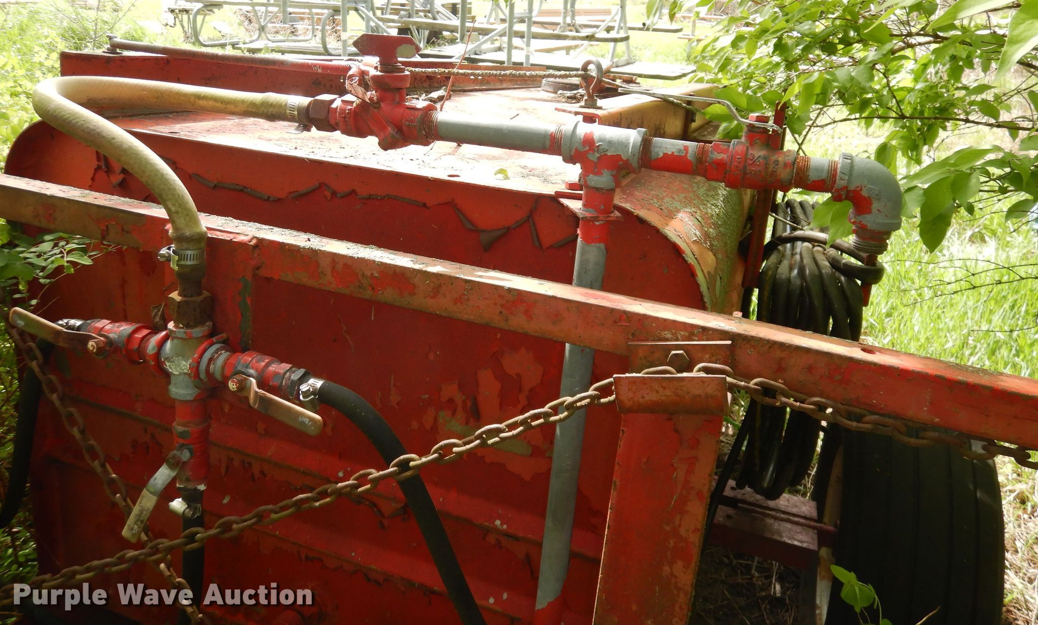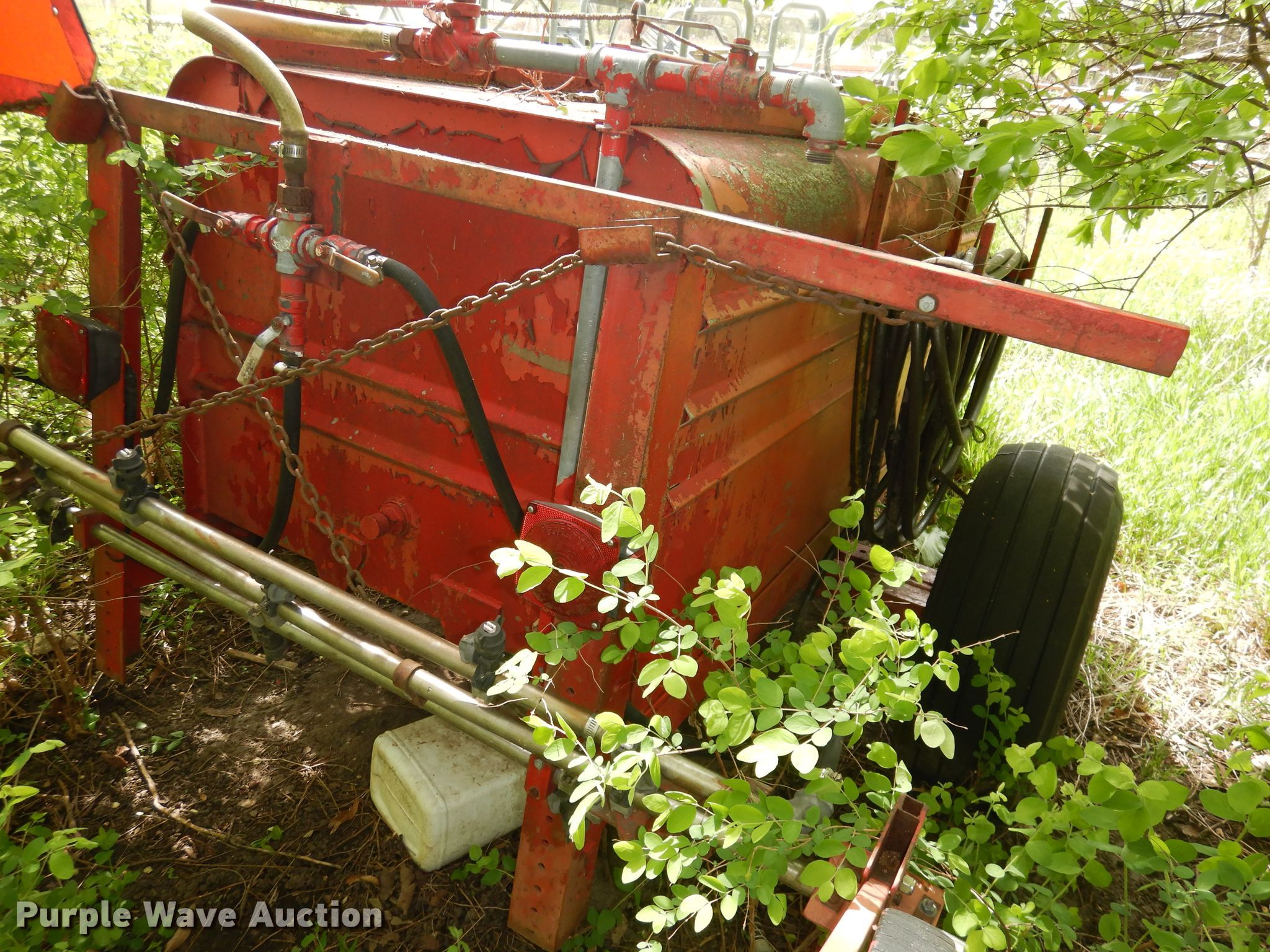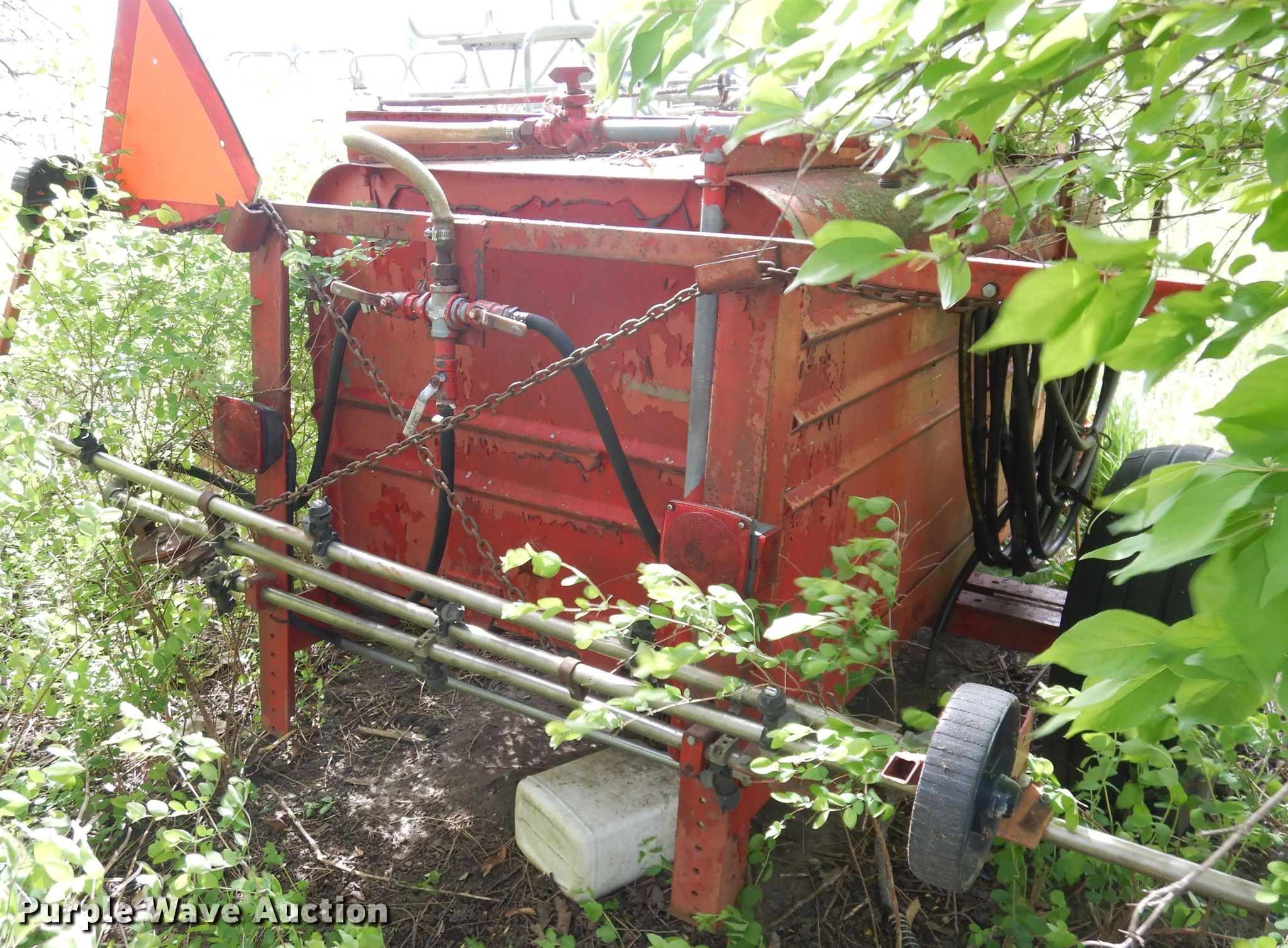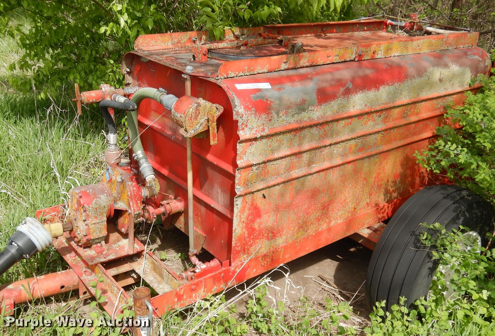 Purple Wave is selling a used Lawn and Garden in Kansas. This item is a Spray rig with the following: Tank, 6' x 3' x 32", 540 PTO, Rear boom, Hitch: Pin, 11L-15 tires, Unknown operating condition