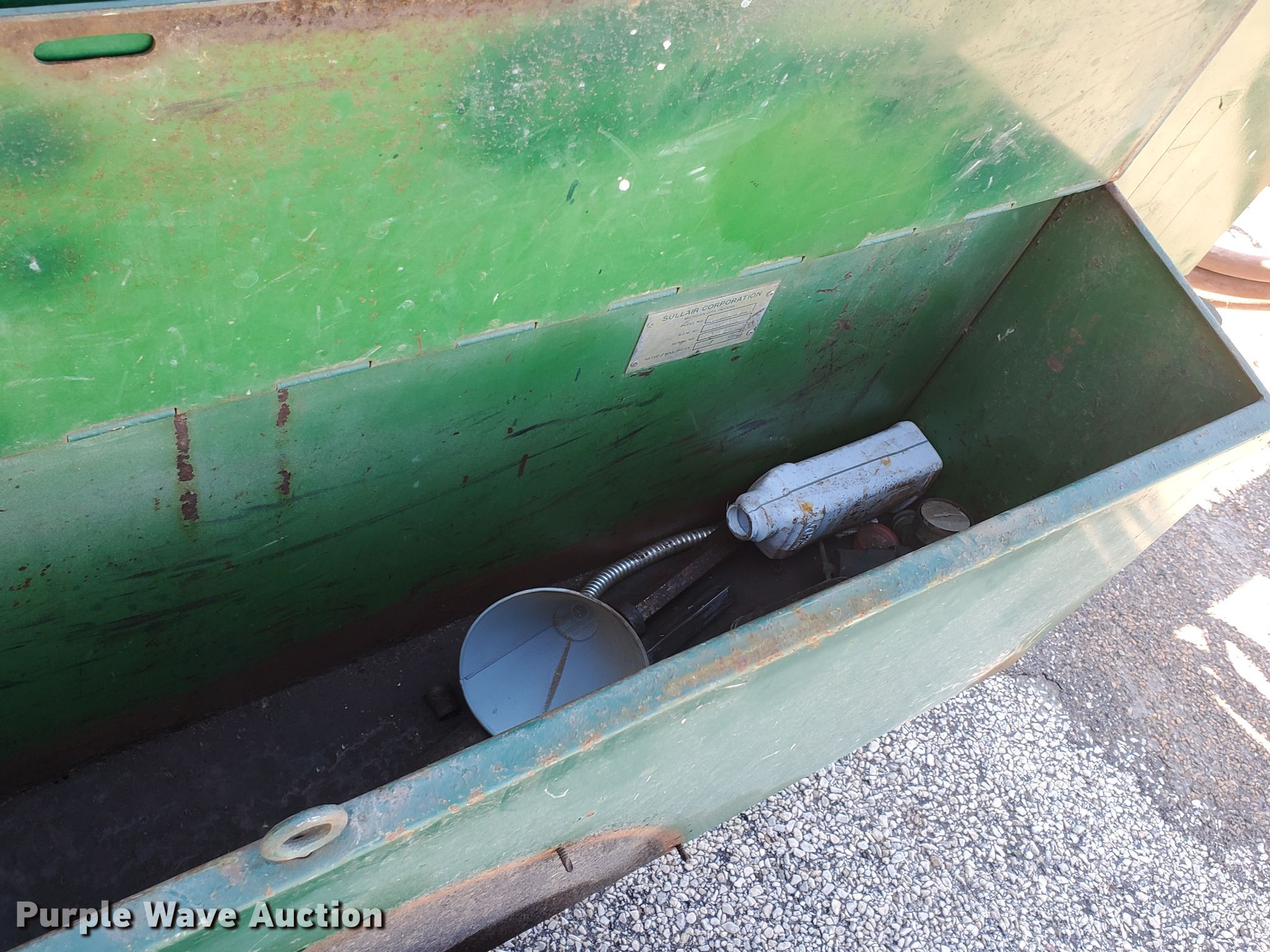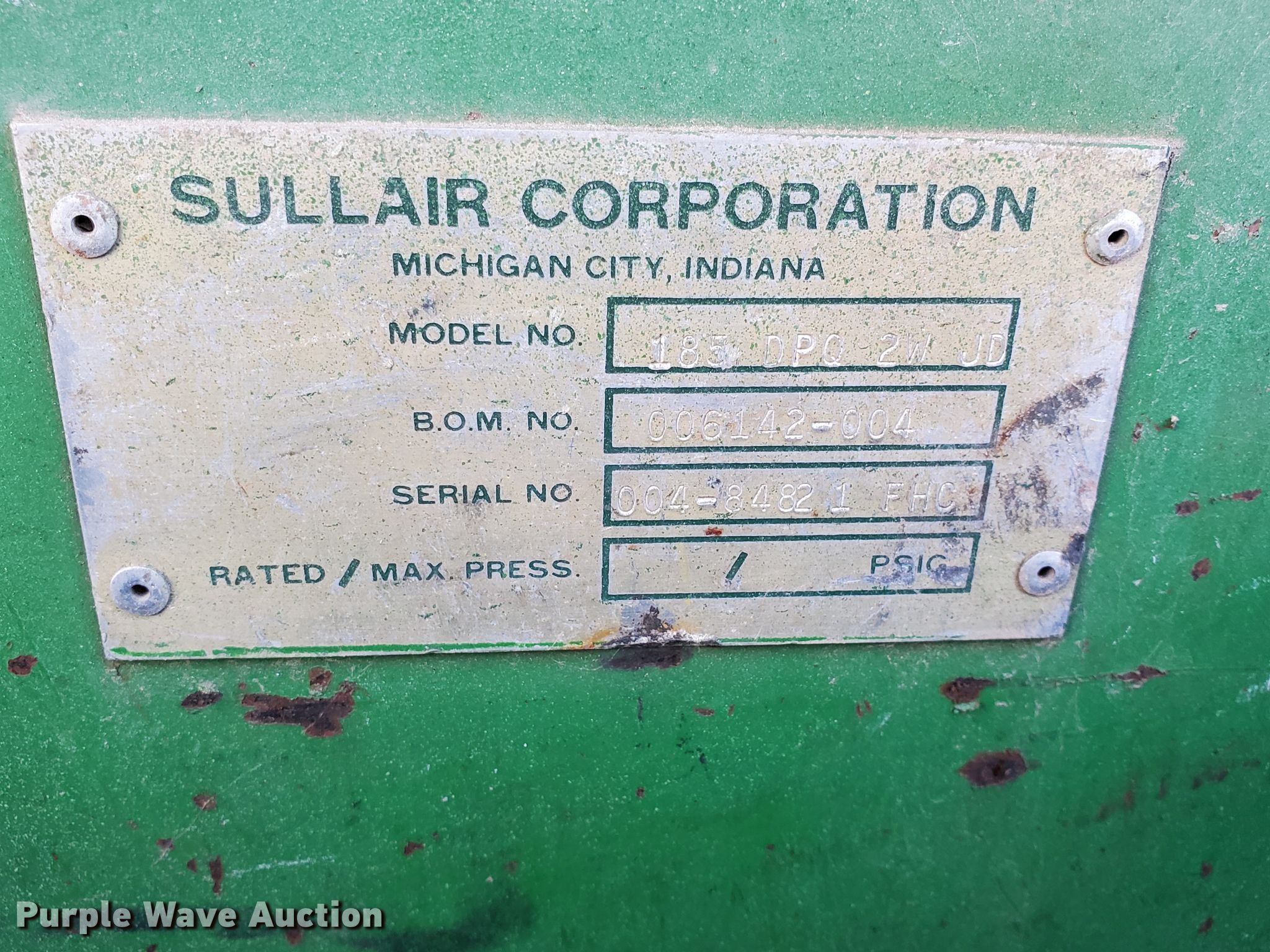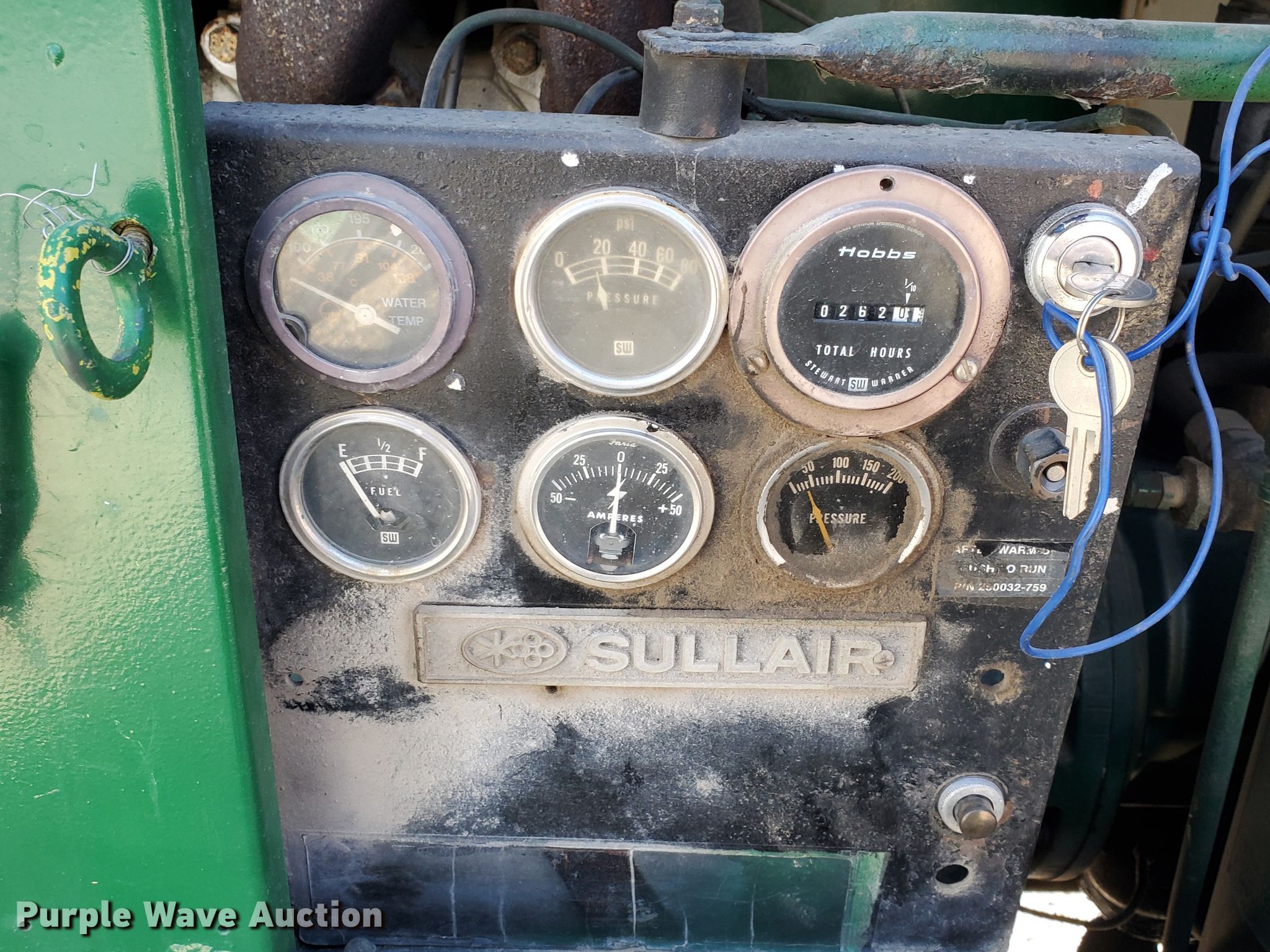 Purple Wave is selling a used Air Compressor in Kansas. This item is a Sullair 185DPC2WJD air compressor with the following: 262 hours on meter, Serial: 004-84821FHC