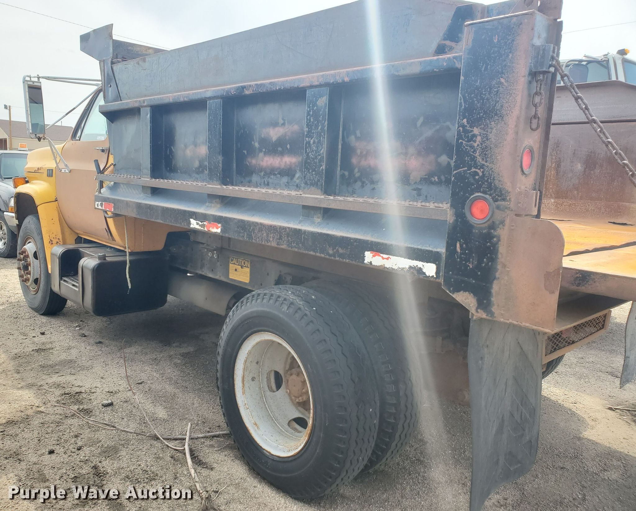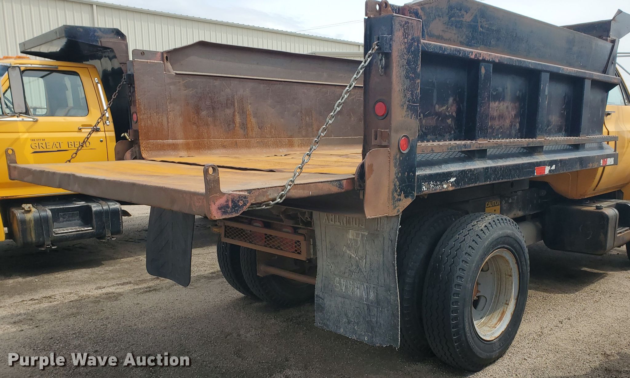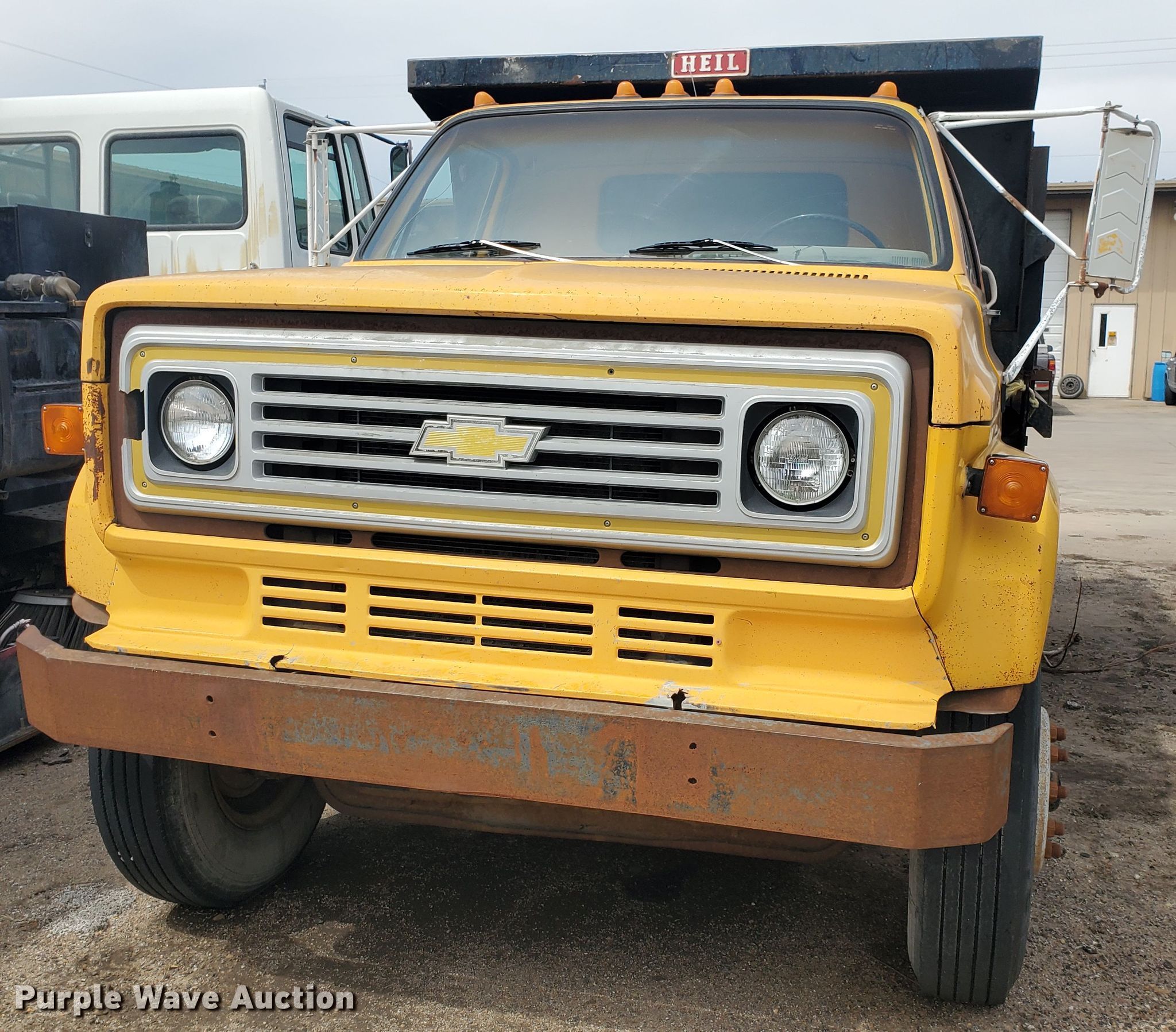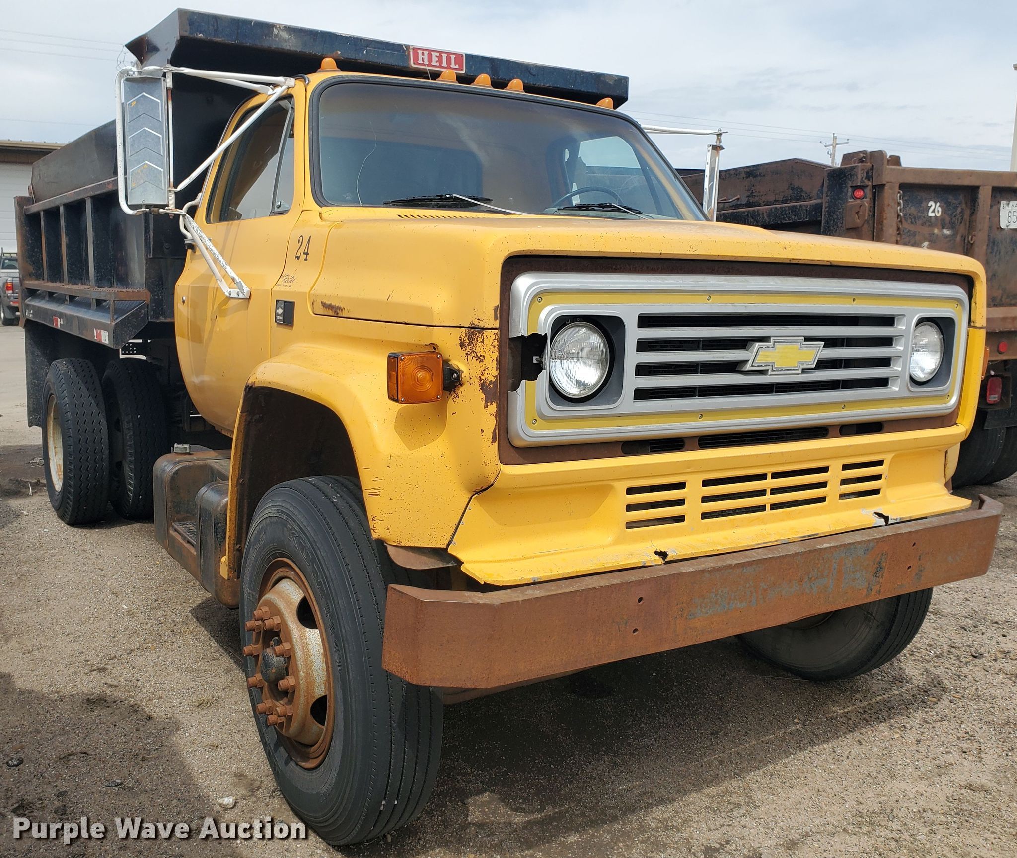 1985 Chevrolet C70 dump truck. 104,182 miles on odometer. Engine Displacement: 366 C.I.D., Cylinders: 8, Fuel type: Gas. Transmission Automatic. Chassis Axles: Single, Suspension: Spring, Brakes: Hydraulic, PTO, GVWR: 26,500 lbs FAWR: 9,000 lbs, RAWR: 17,500 lbs. Interior Heat. Operational Dump bed Heil SLT5YD1P, Capacity: 5 cu.yd., 10' L x 96" W, Side height: 28", Side board height: 10", Bed type: Steel, Ram: Single , End gate: Manual. Tires Size: 9.00-20. Notes Possible fuel pump issues, Windshield chipped or cracked, Bed is not completely bolted down, Non-operational unit. Kansas title. 1GBL7D1B4FV215302. City of Great Bend. 1209 Williams St. Great Bend, KS 67530