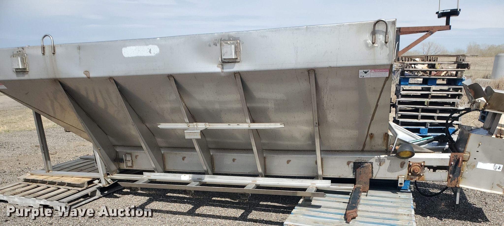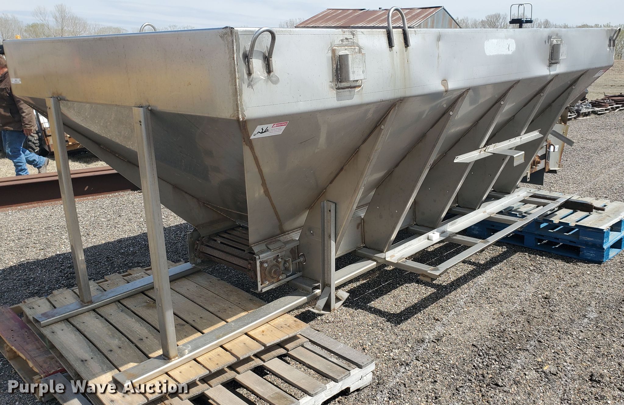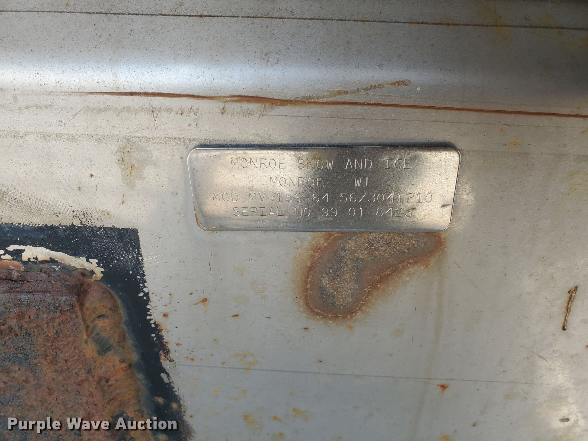 Purple Wave is selling a used Truck Part and Attach. in Kansas. This item is a Monroe MV-156-84-56/3041210 stainless steel spreader with the following: 13'L, Spinner plate missing, Unknown operating condition, Serial 110-99-01-8423