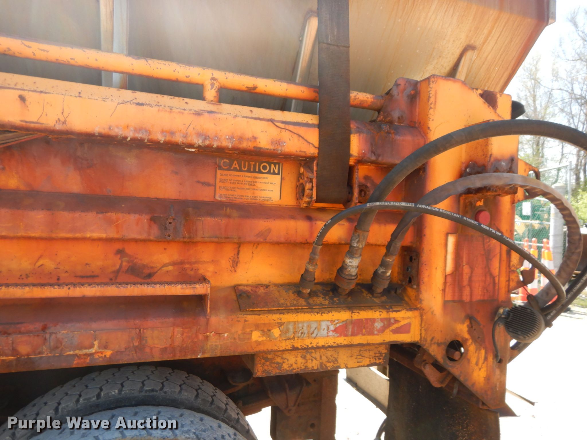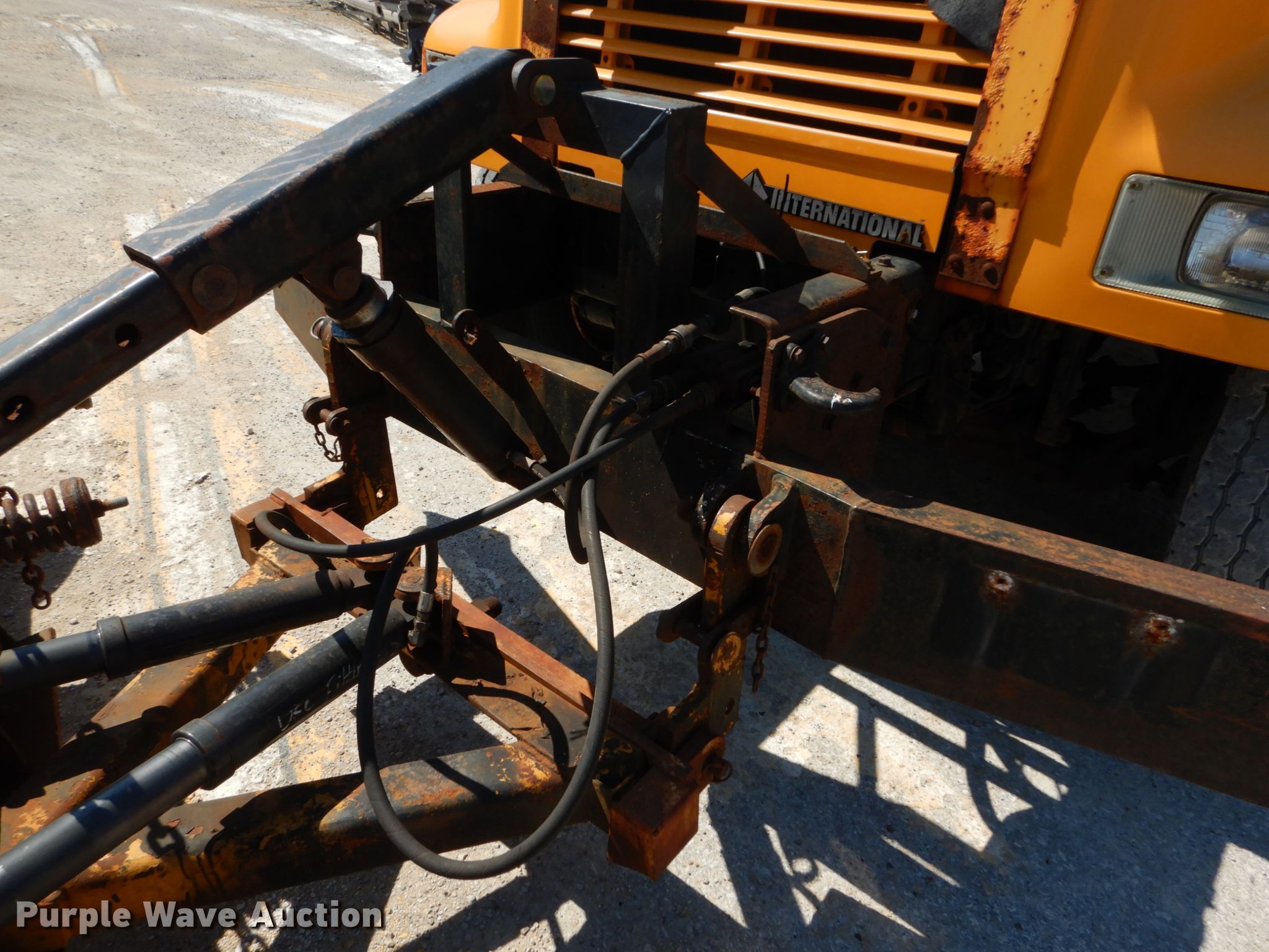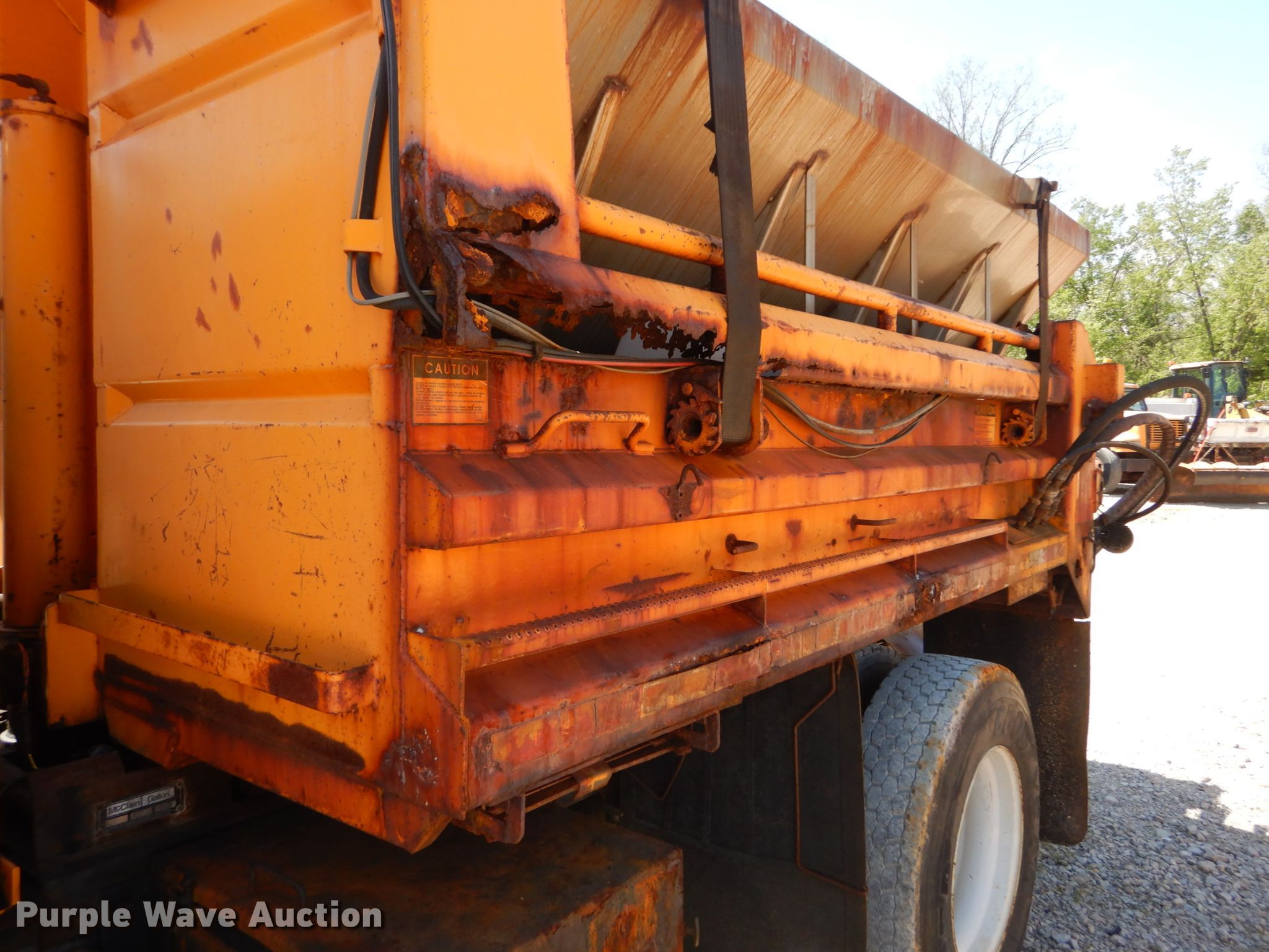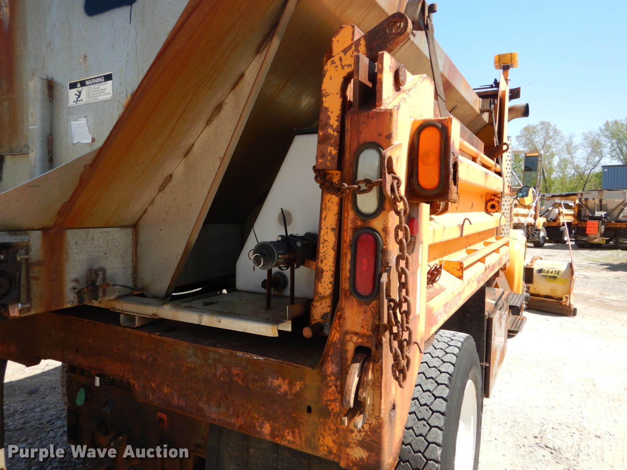 2002 International 4900 dump truck. 163,304 miles on odometer, Engine hours: 10,761, MODOT ID: 6845. Engine International DT466, Displacement: 7.6L, Cylinders: 6, Fuel type: Diesel. Transmission Allison , Automatic. Chassis Axles: Single, Suspension: Spring, Brakes: Air, PTO, GVWR: 37,000 lbs FAWR: 16,000 lbs, RAWR: 21,000 lbs, Wheelbase: 170". Interior AC, Heat, Heated mirrors, Power windows, Cruise control. Operational Dump bed 10' L x 96" W, Side height: 24", Bed type: Steel, Roll tarp, Ram: Single , End gate: Air operated, Spreader Flink, Plow Width: 144". Tires Front: 315/80R22.5, Rear: 11R22.5. Notes Dash warning indicator: ABS, Dead battery , Unknown operating condition of spreader. Missouri title. 1HTSDAAR92H523895. Missouri Department of Transportation (MODOT). 2309 Barrett Station Rd. Ballwin, MO 63021
