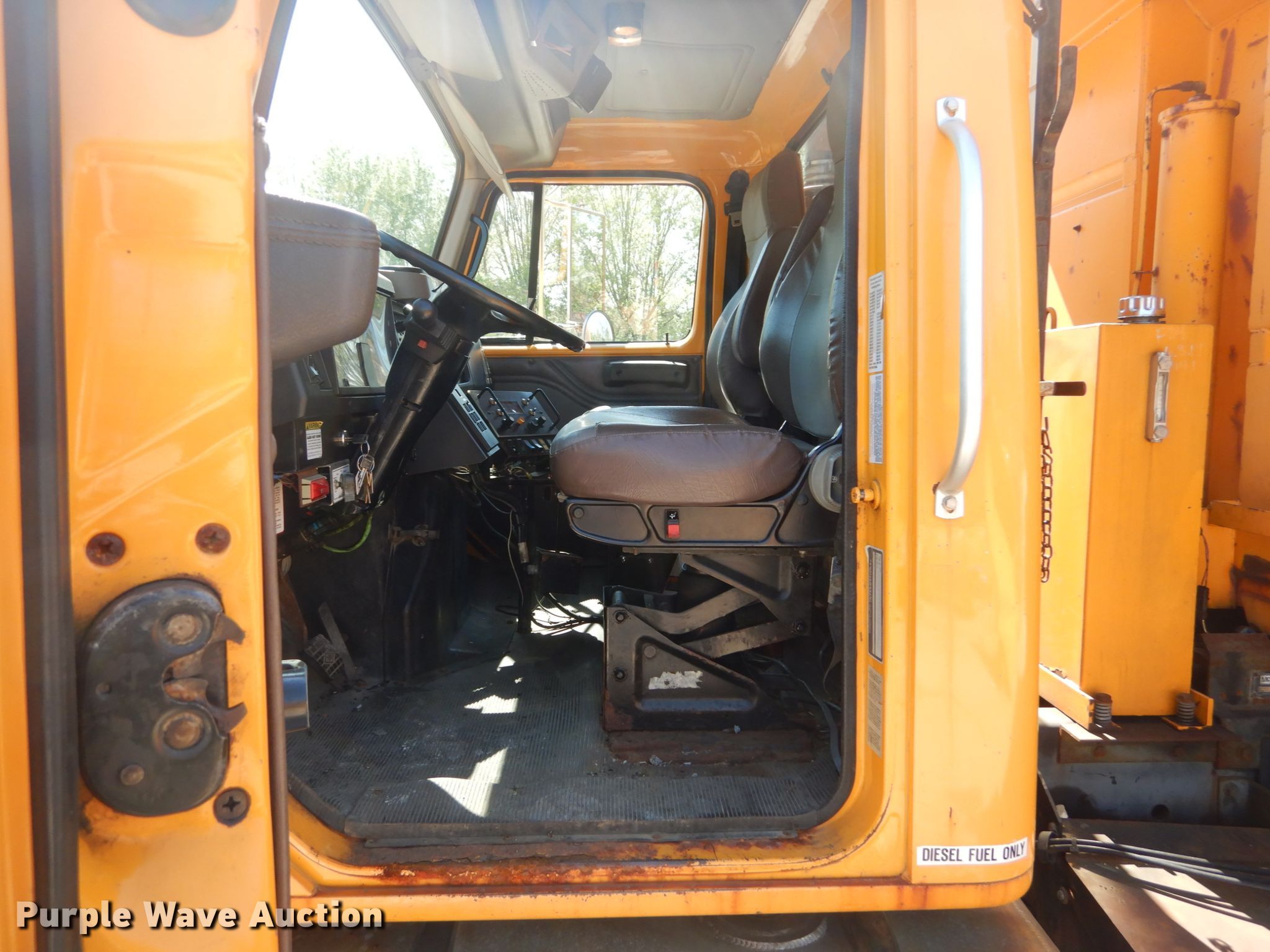 This 2002 International 4900 dump truck will sell to the highest bidder regardless of price.