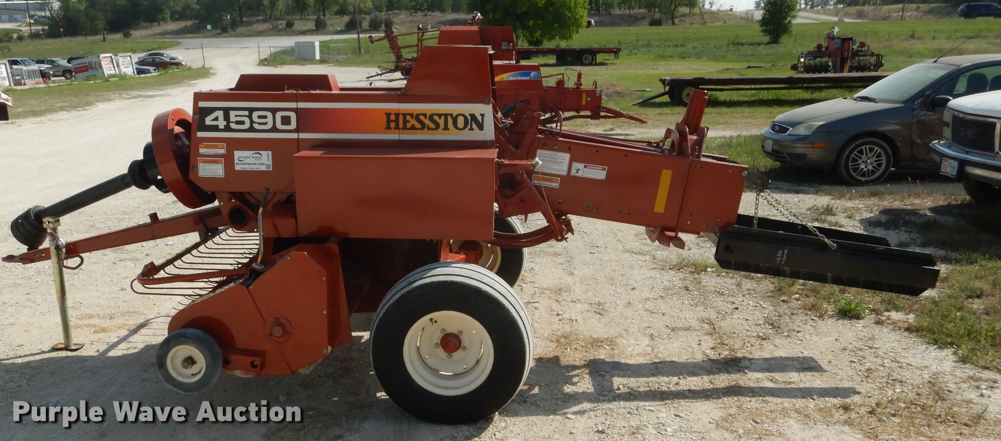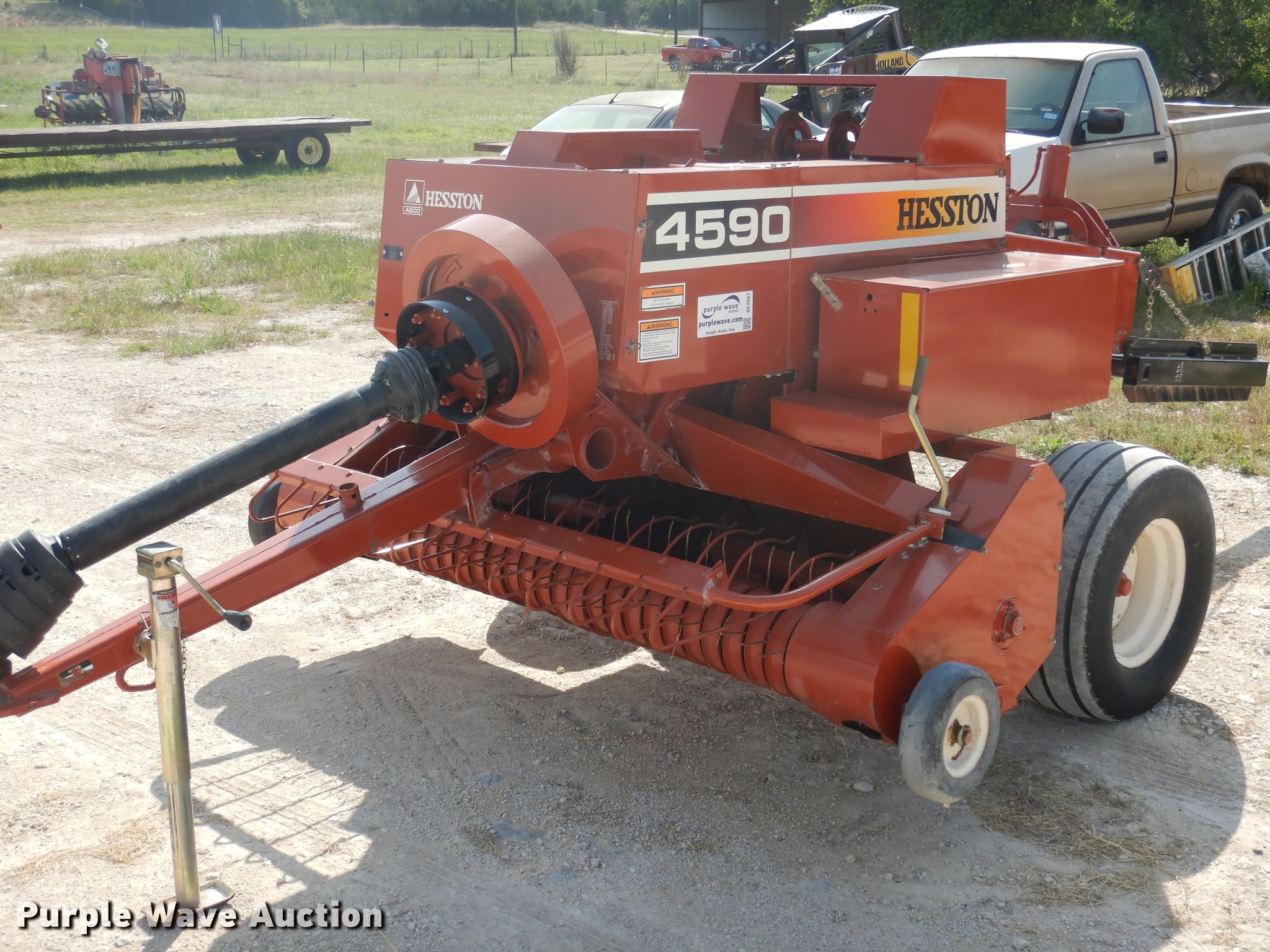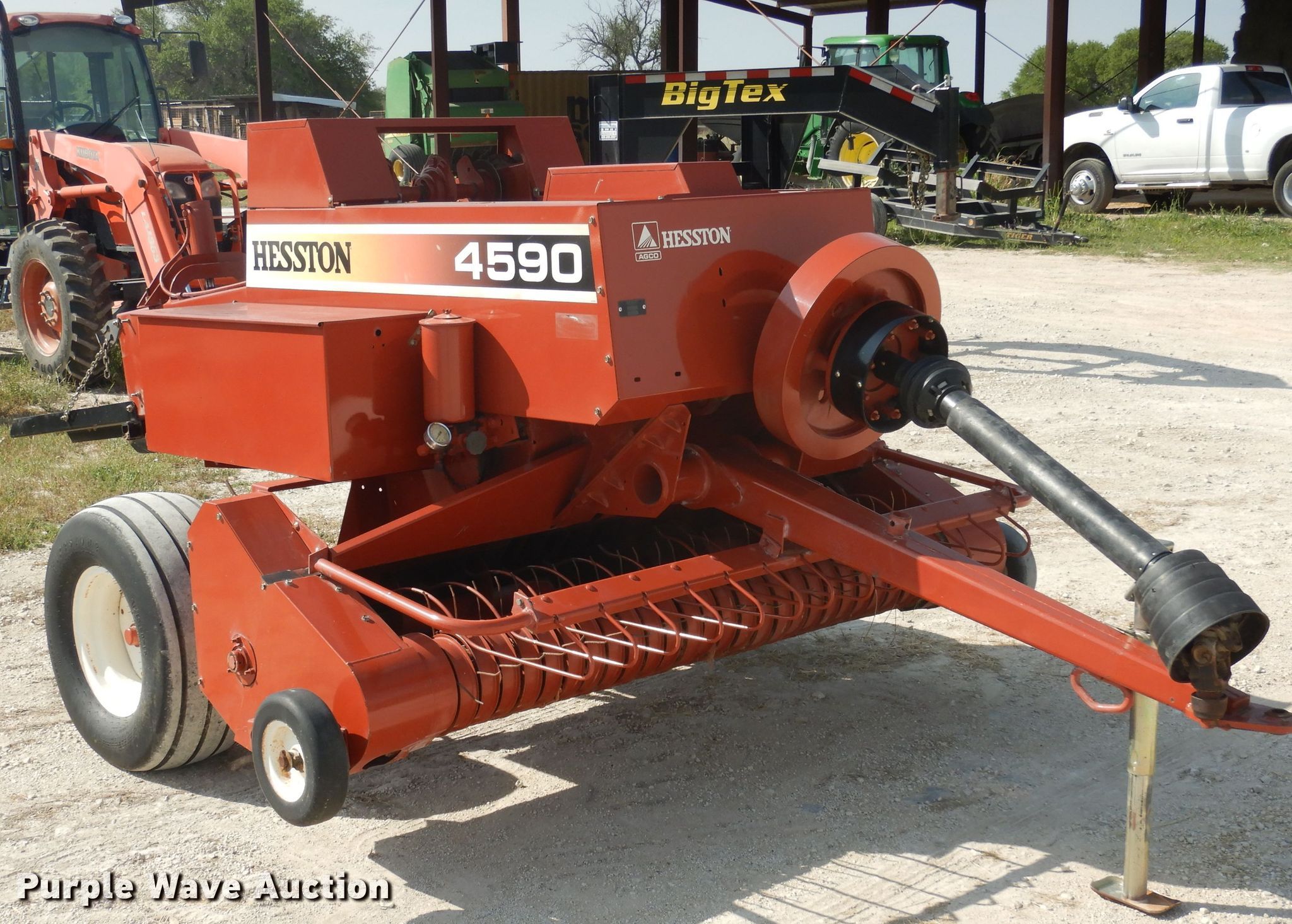 Purple Wave is selling a used Square Baler in Texas. This item is a 2005 Hesston 4590 small square baler with the following: Bale count: 48,000, Serial: HR65459