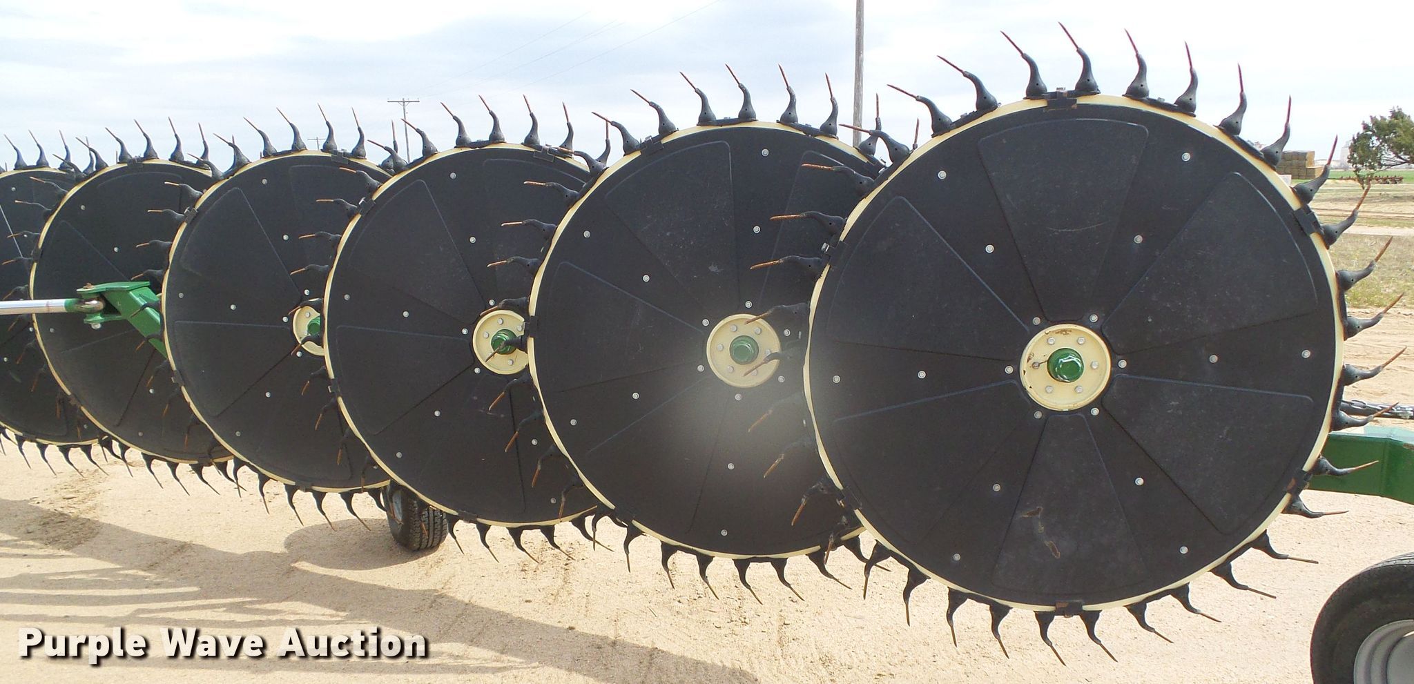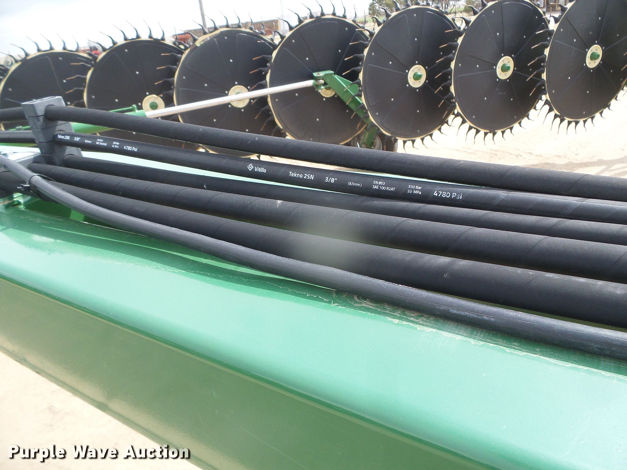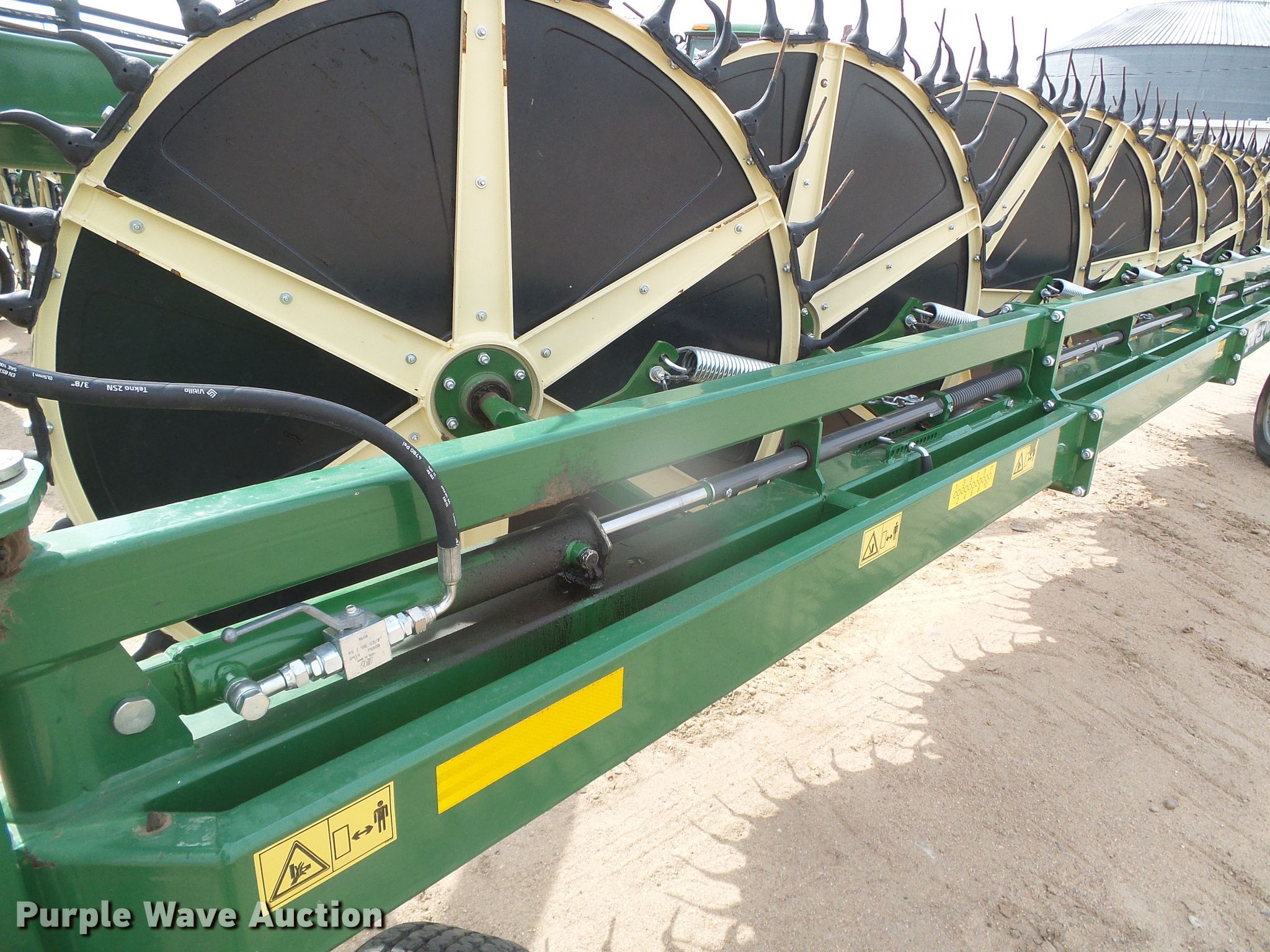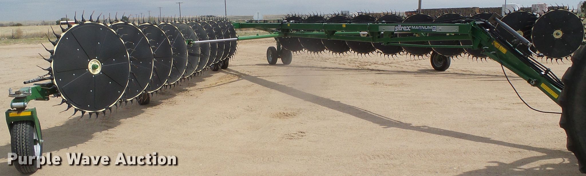 Purple Wave is selling a used Hay Rake in Kansas. This item is a Sitrex Magnum Pro Evolution MKE1834-2037 hay rake with the following: (20) 4' diameter wheels, Hydraulic fold, ST250/75R15 tires