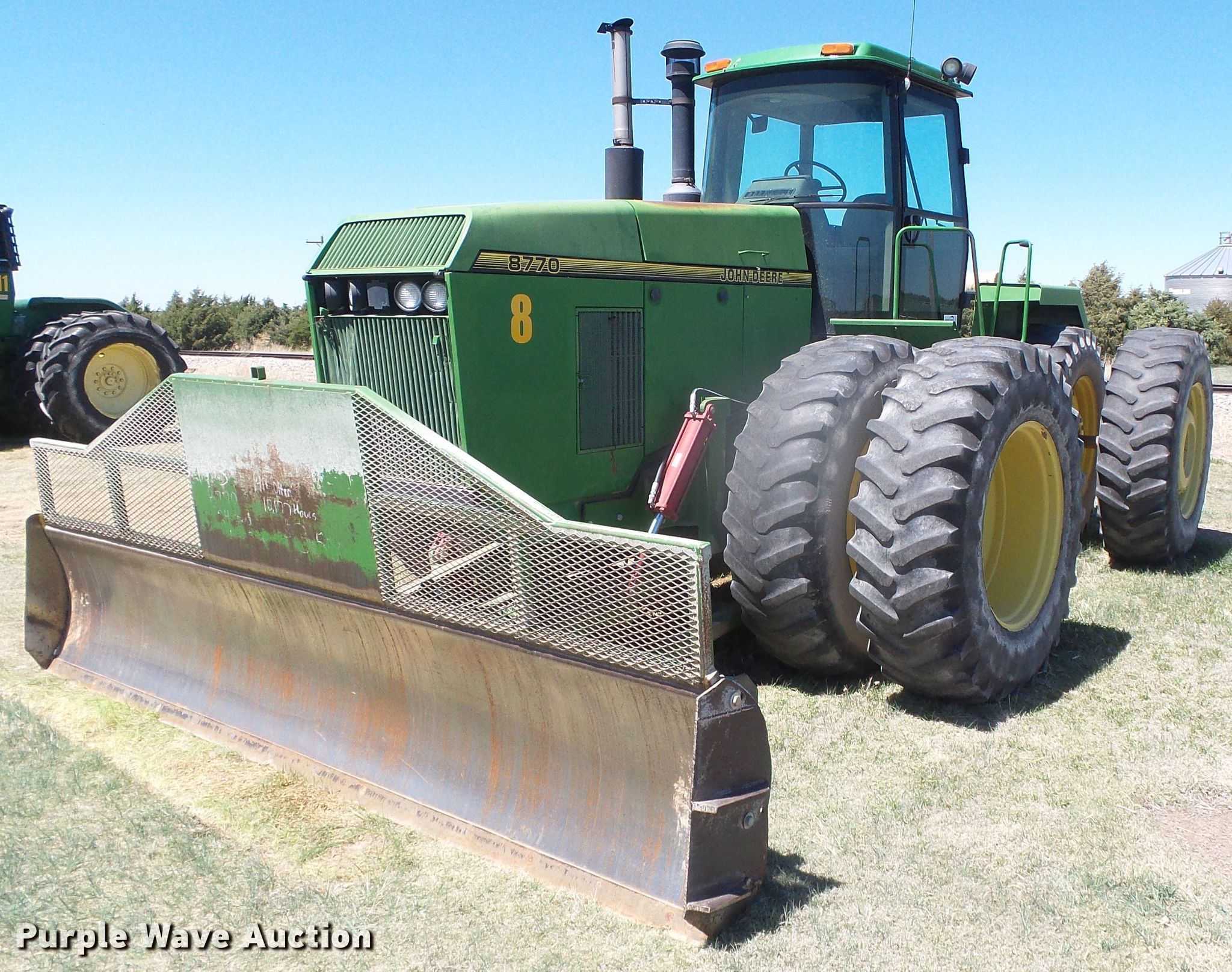 Purple Wave is selling a used Articulated 4-Wheel Drive Tractor in Kansas. This item is a 1993 John Deere 8770 4WD tractor with the following: 10,383 hours on meter, Serial: RW8770HOO1389, Unit #: 8