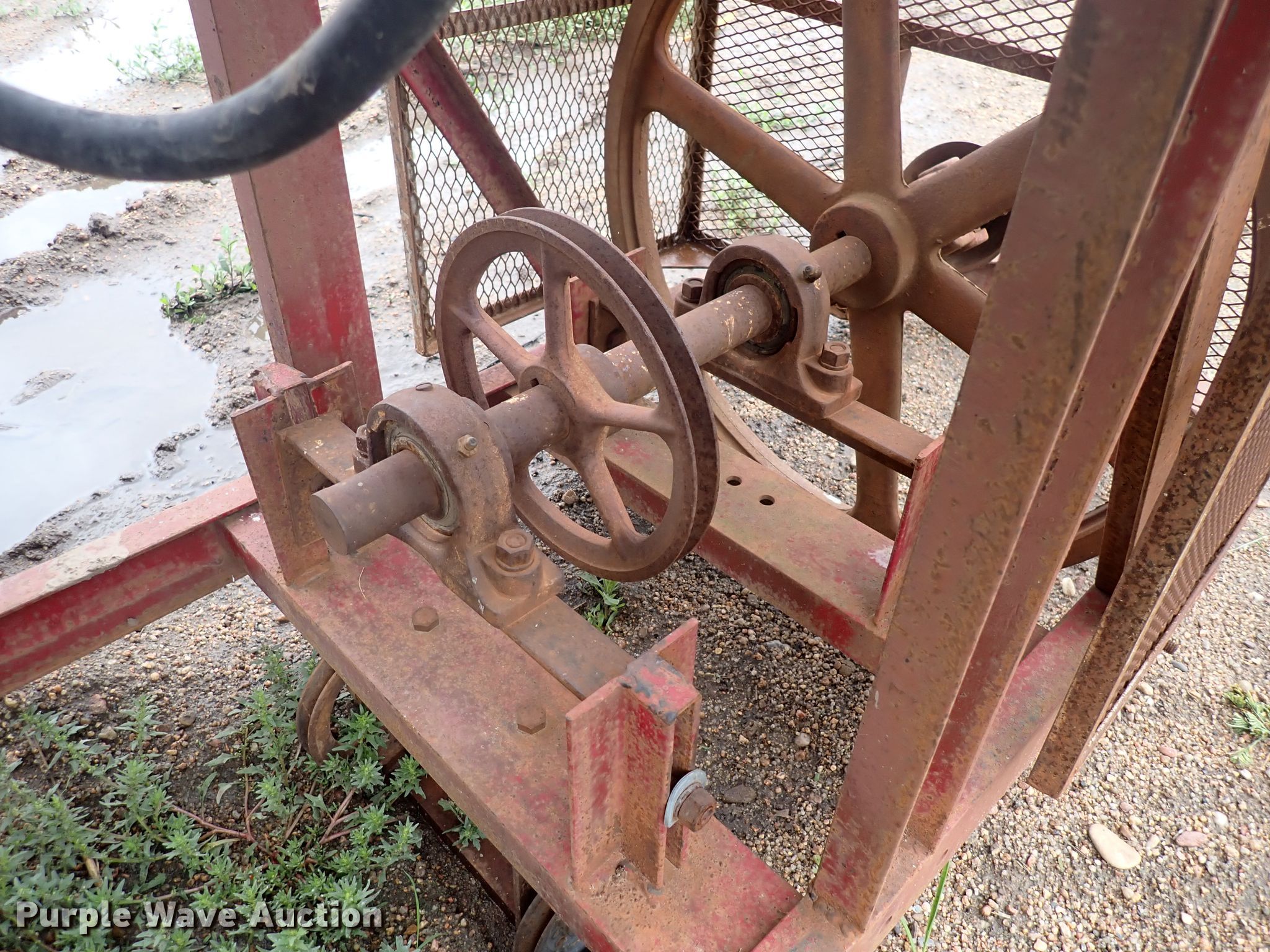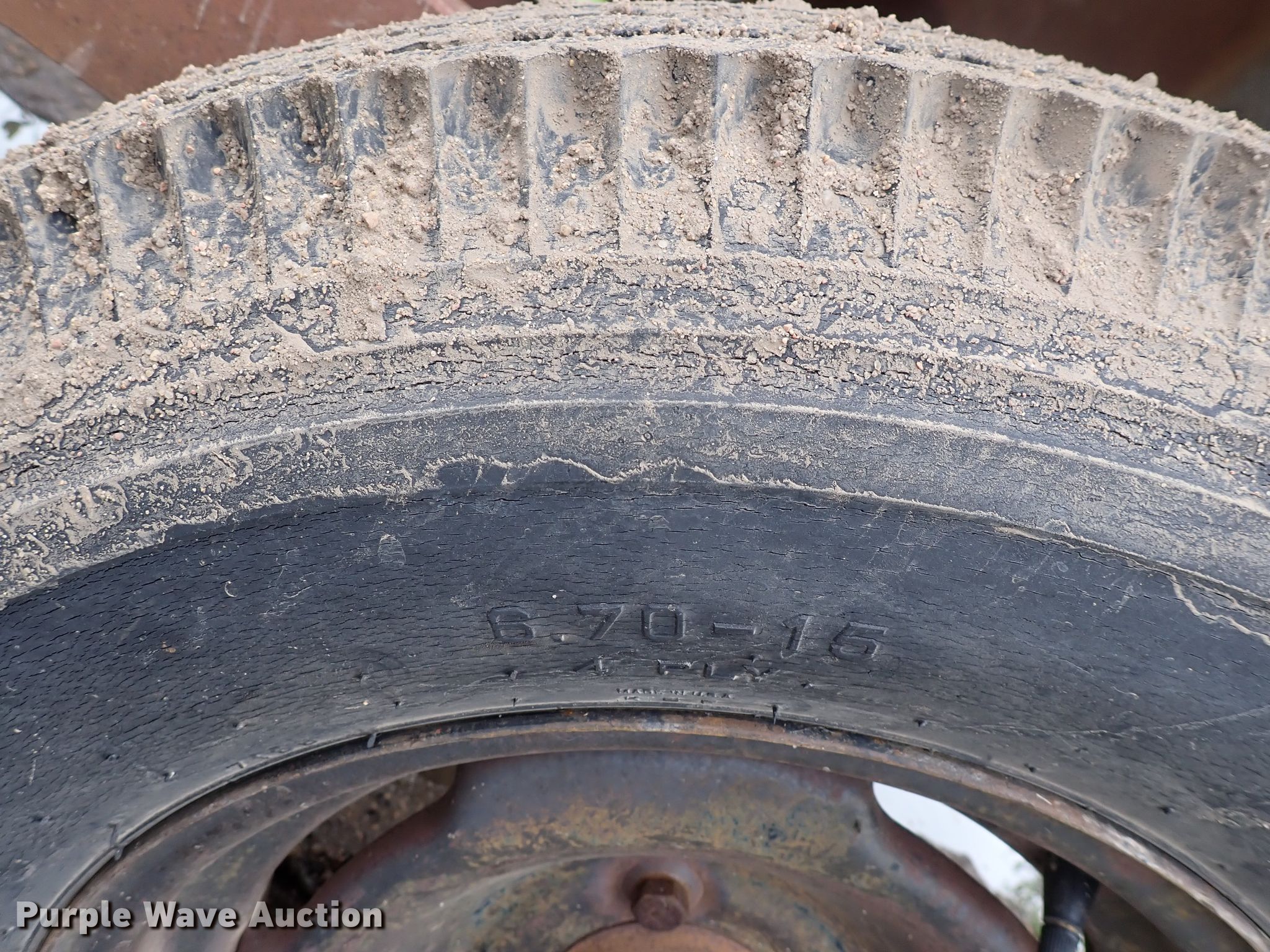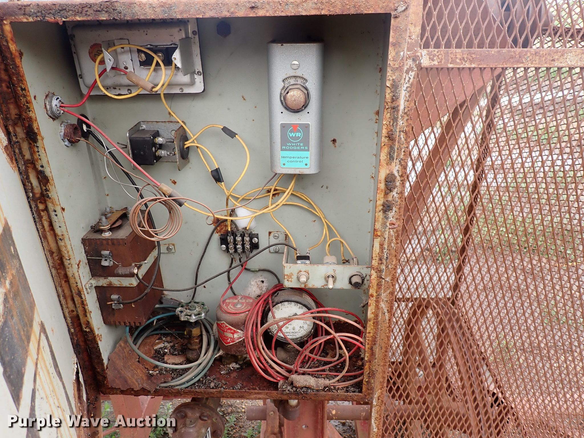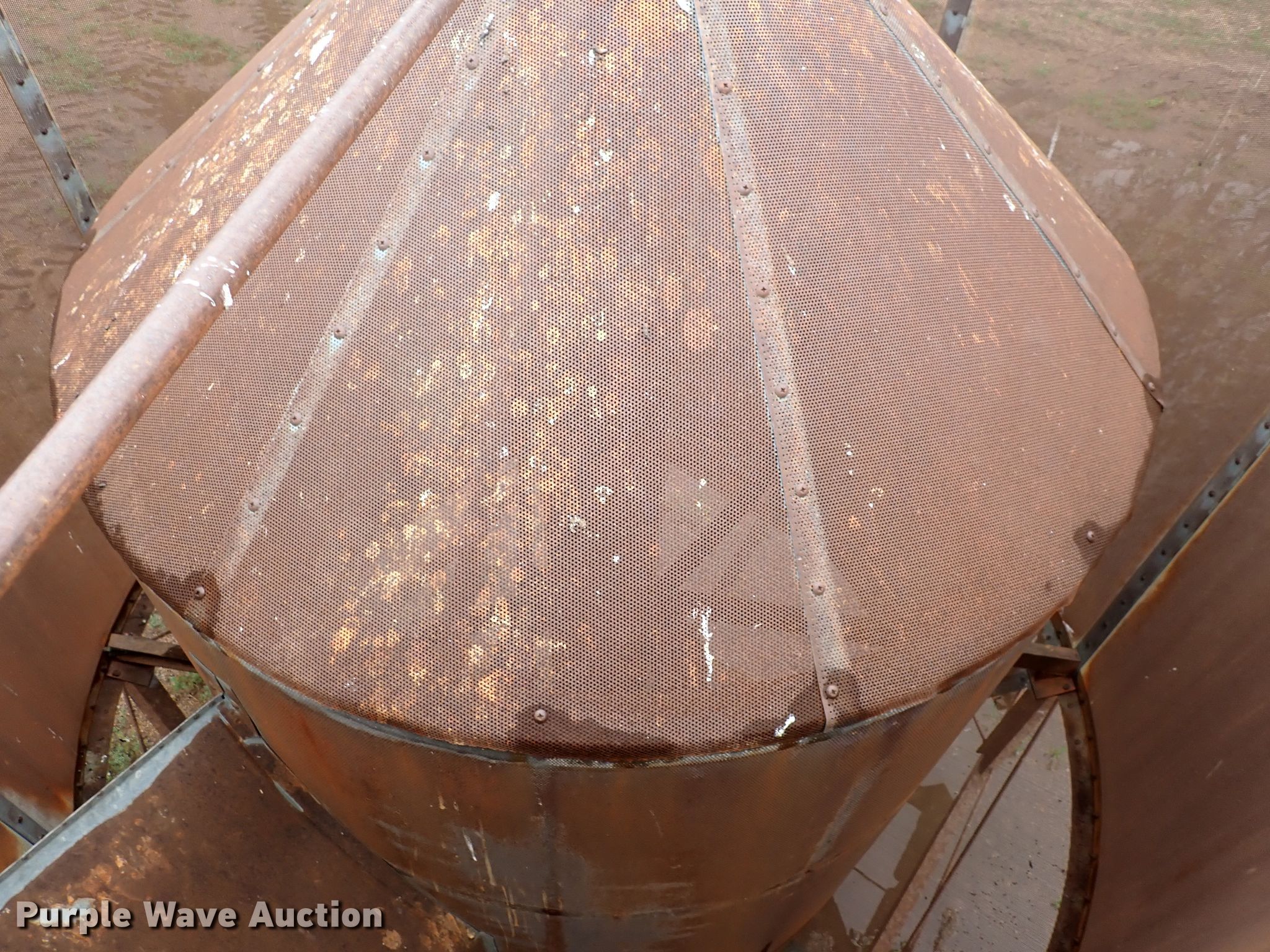 Purple Wave is selling a used Grain Dryer in Kansas. This item is a Gilmore grain dryer with the following: Dial thermometer, 6.70-15 tires, Flat tire, PTO end shaft missing