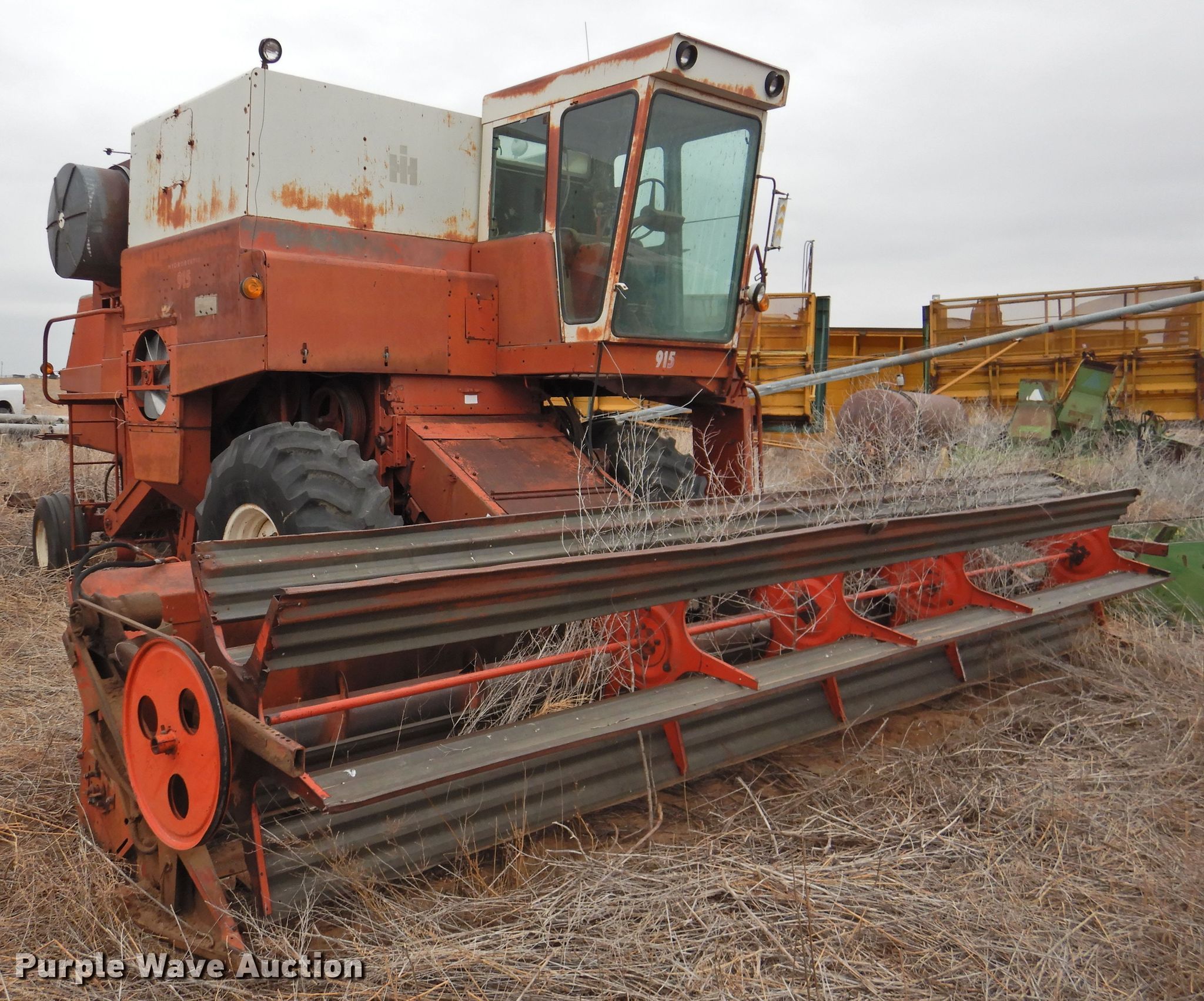 Purple Wave is selling a used Combine in Texas. This item is a International Harvester 915 combine with the following: 2,458 hours on meter, Serial: 1570157U019210