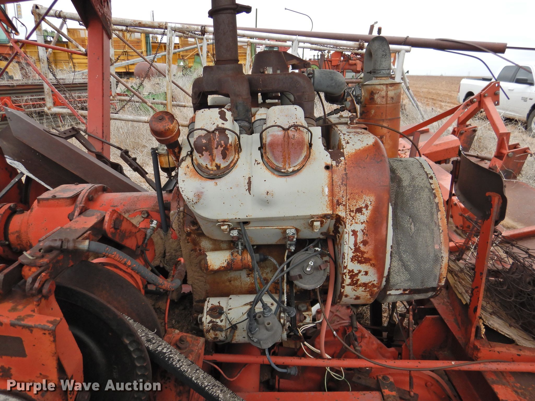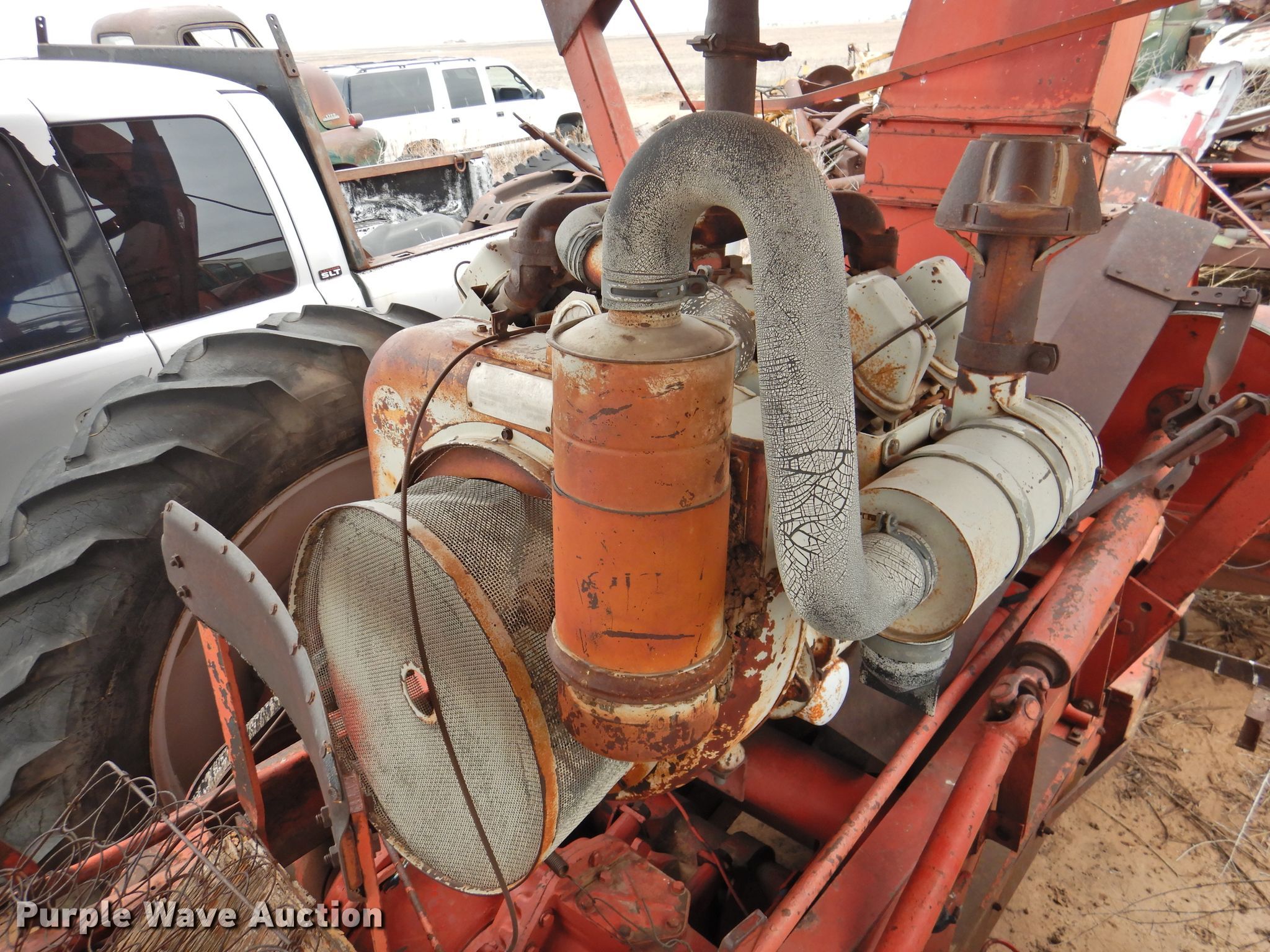 Long 444 cotton picker. Serial: 1017, Rows: 2, Row Width: 30", Engine Make: Wisconsin V461D Fuel Type: Gasoline, Cylinders: 4, Tires Front: 9.5-16, Rear: 13.6-38. Dutton Farms. 1499 County Rd 2. Tulia, TX 79088