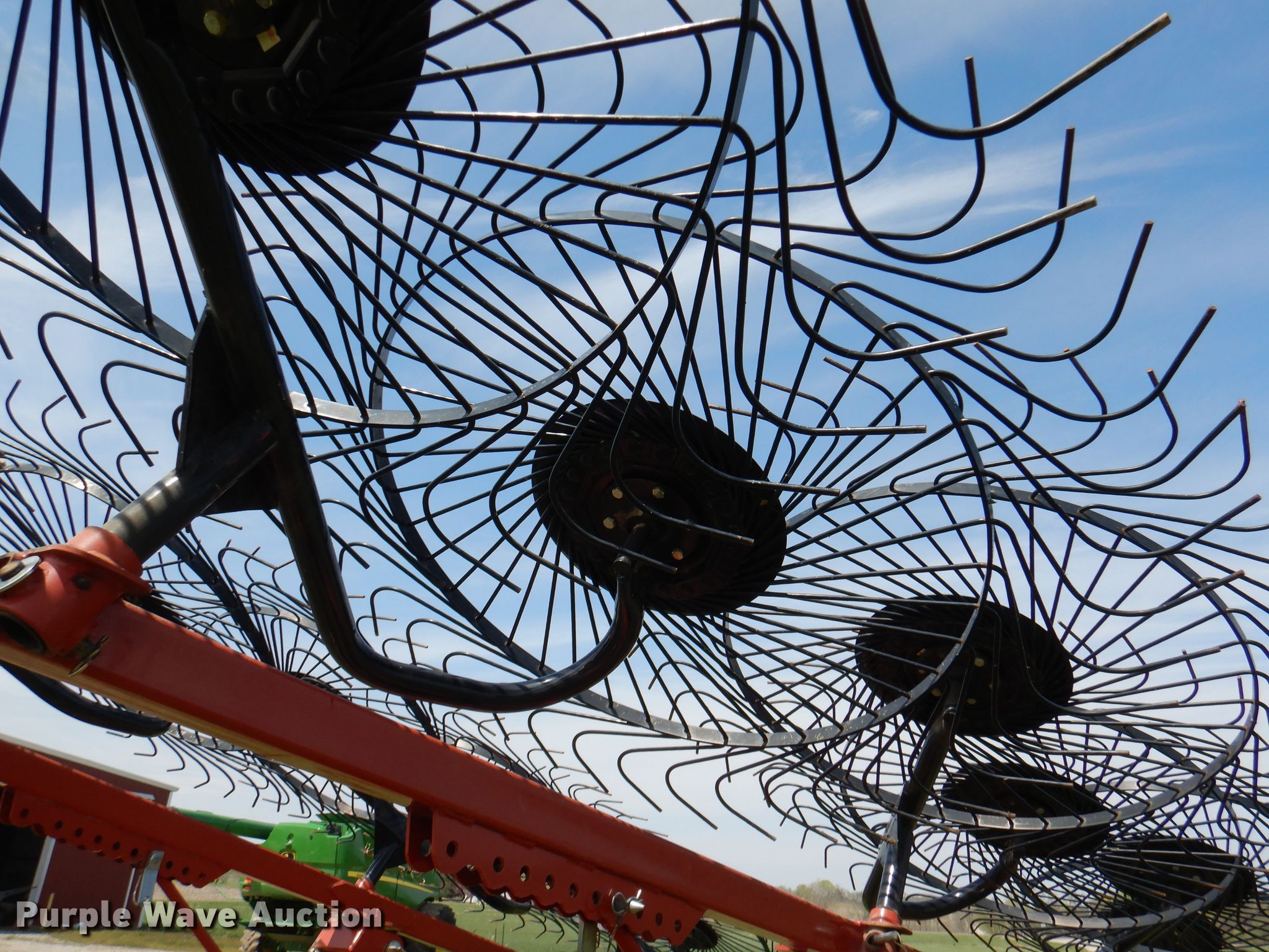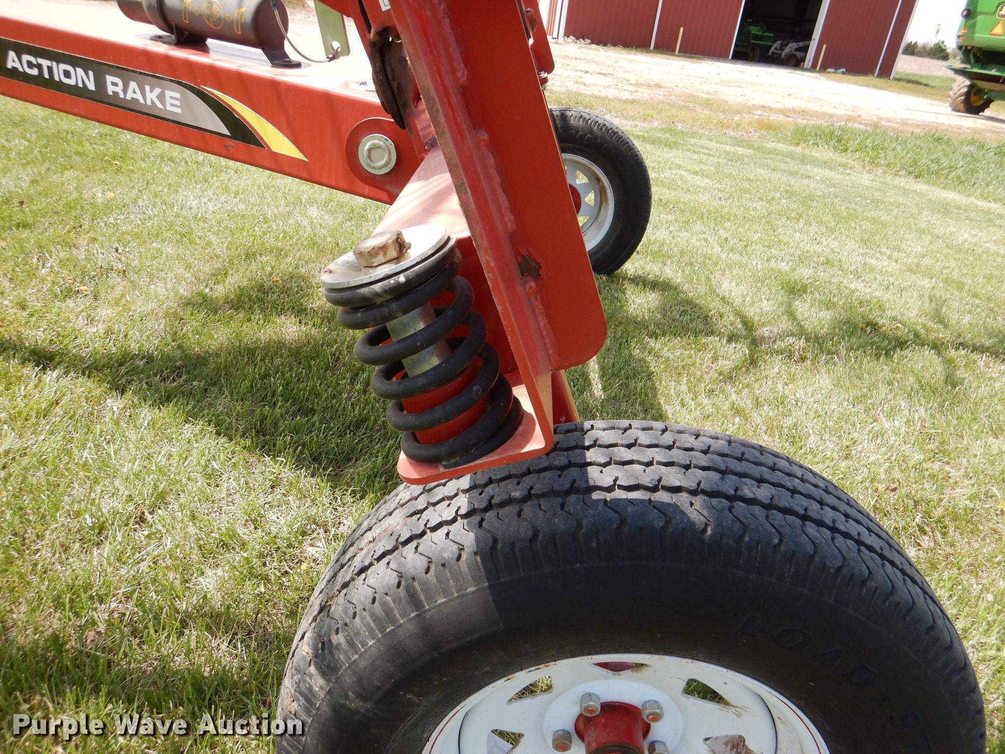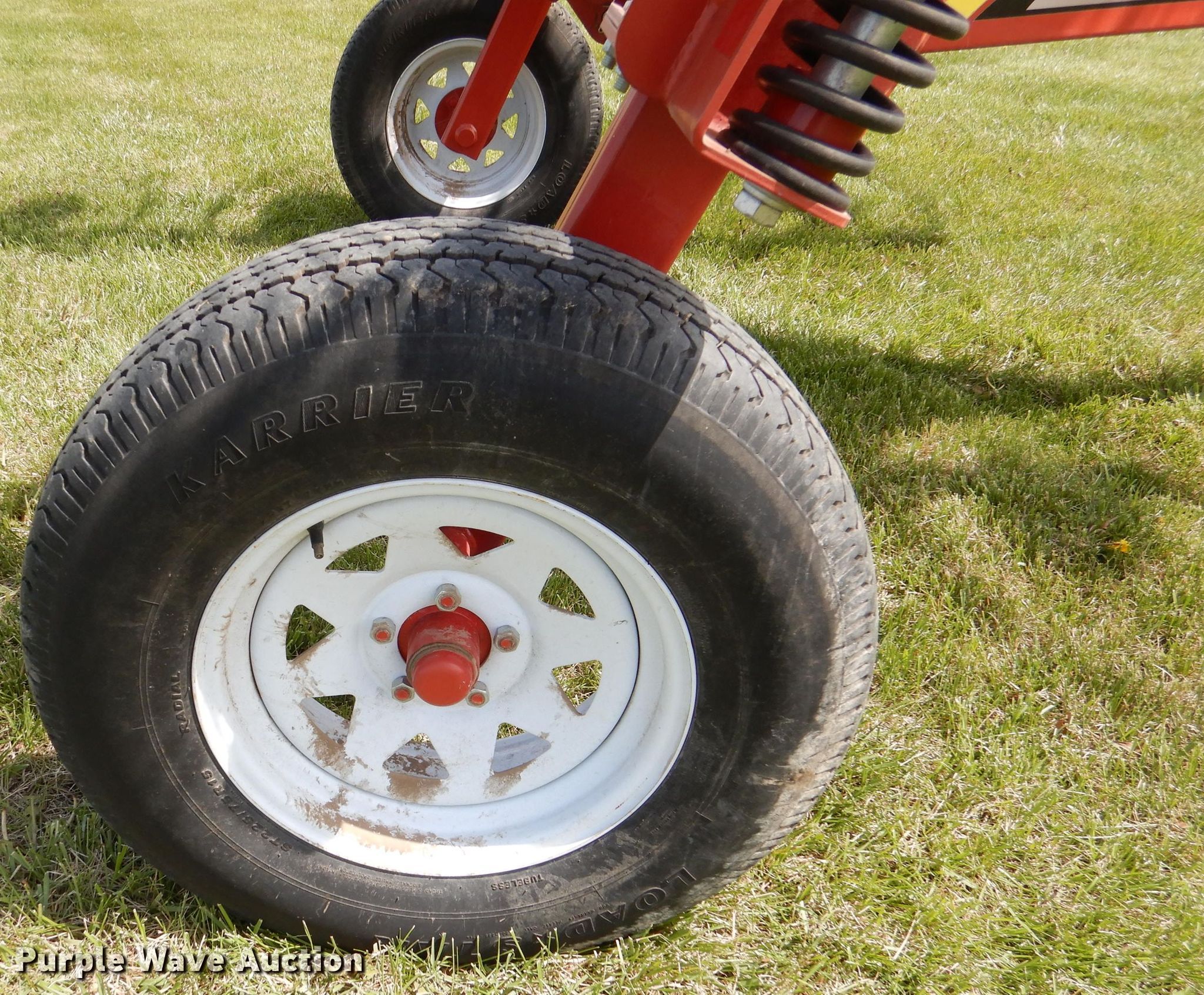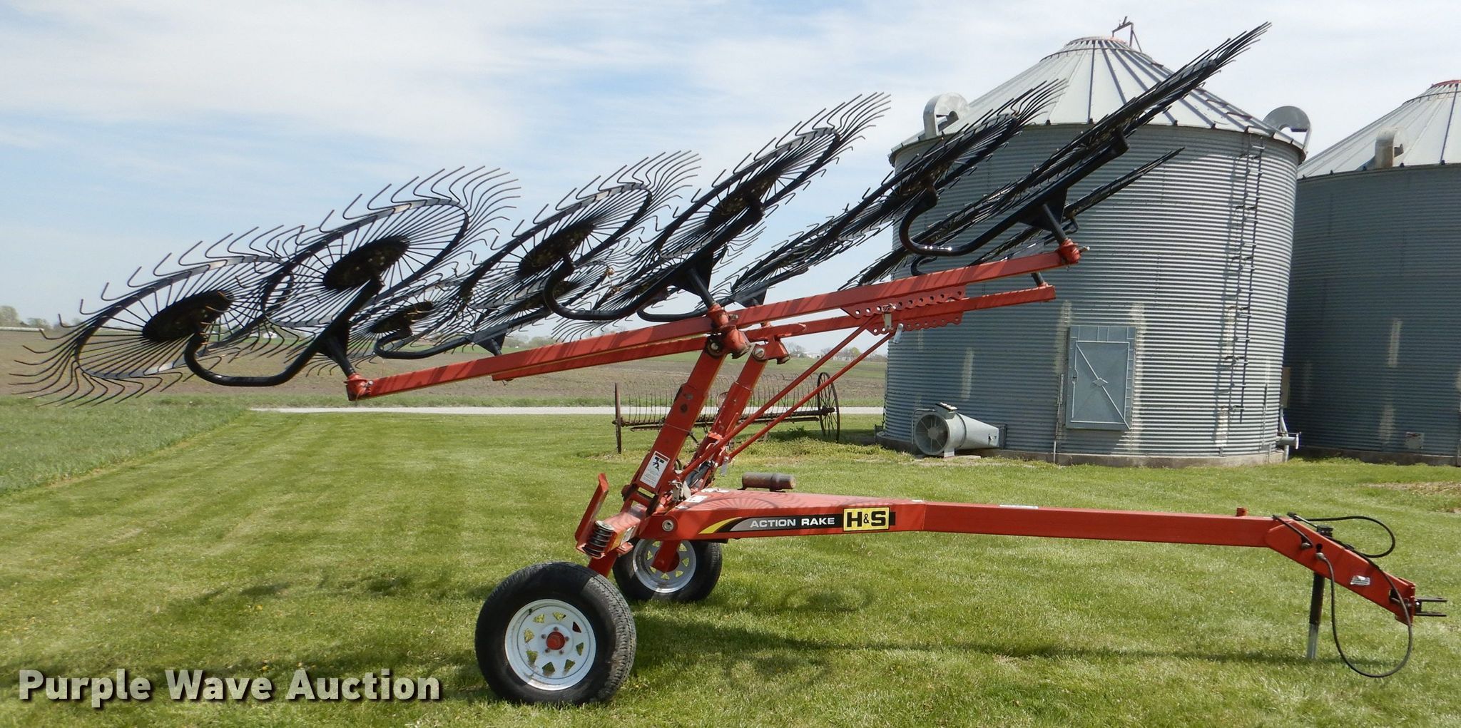 Purple Wave is selling a used Hay Rake in Kansas. This item is a H&S AR1261 hay rake with the following: Approximately 25'W, (12) 36" diameter wheels, Hydraulic lift/fold, 225/75R15 tires, Serial: 216099