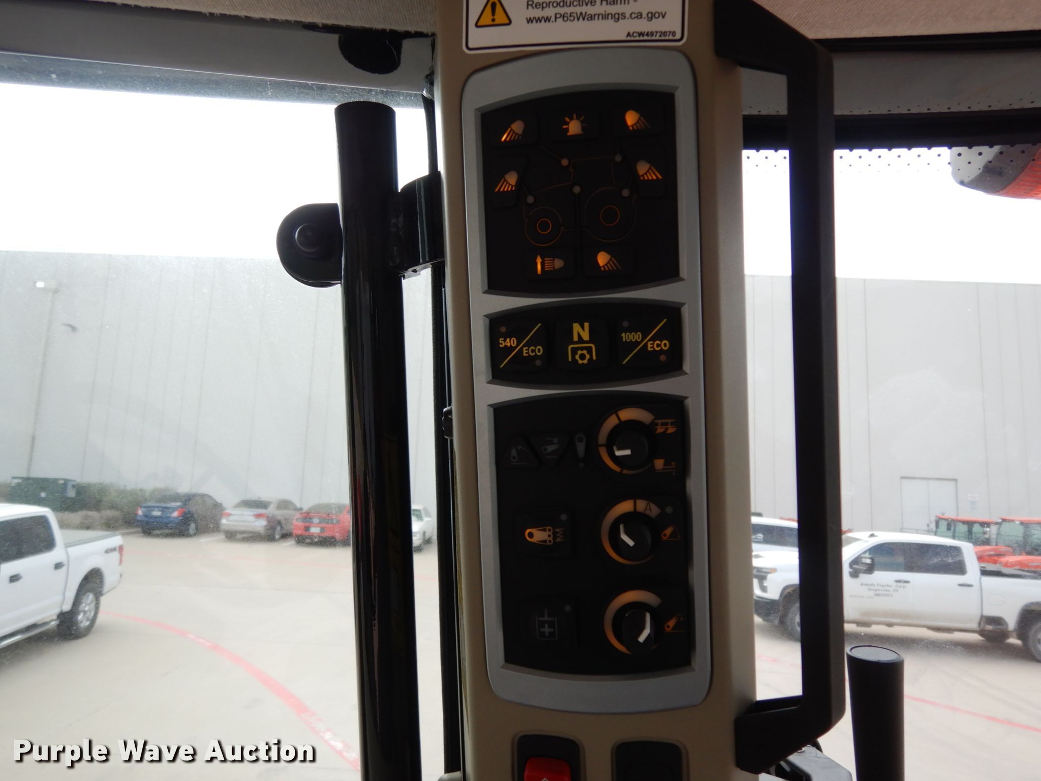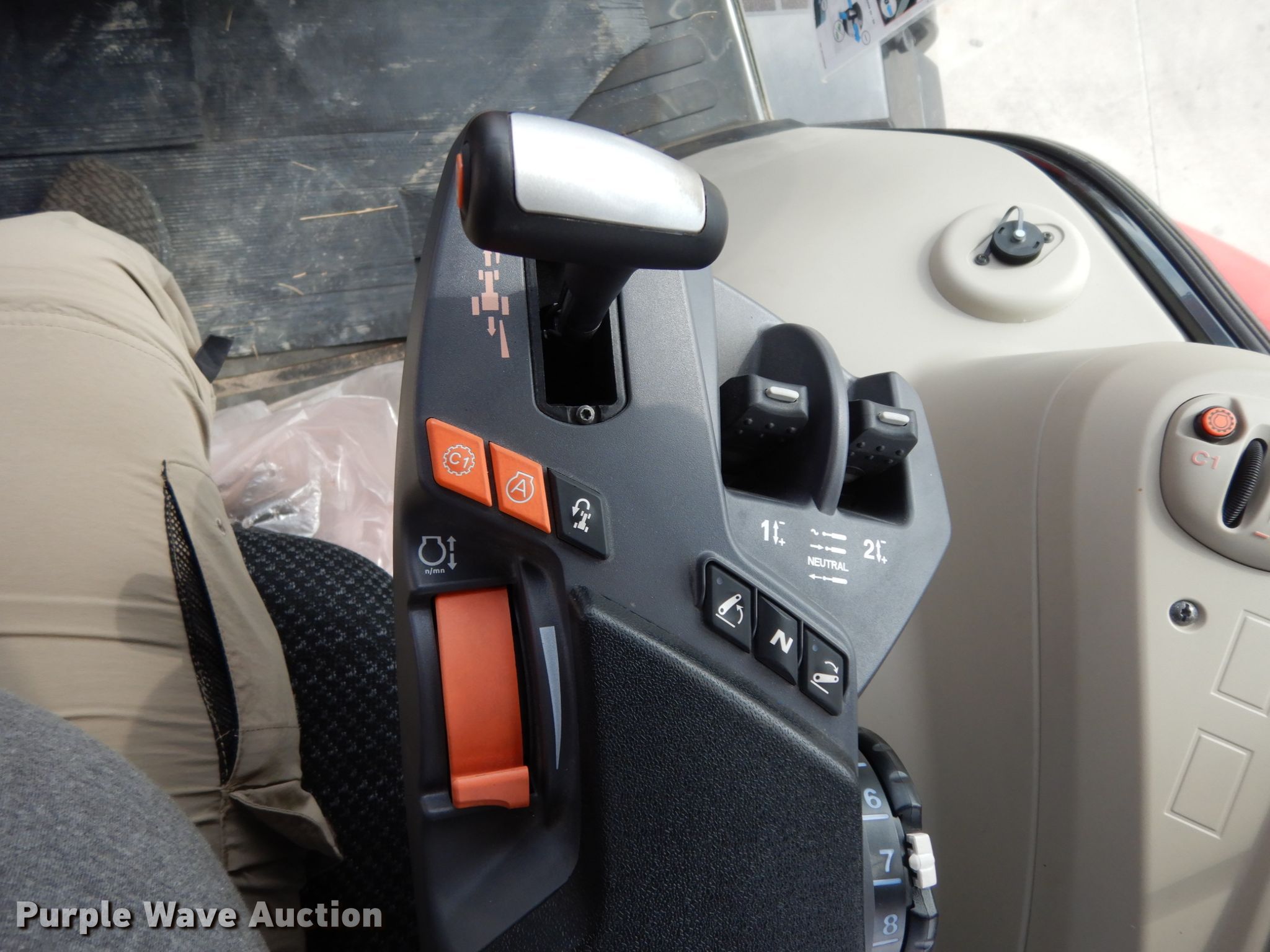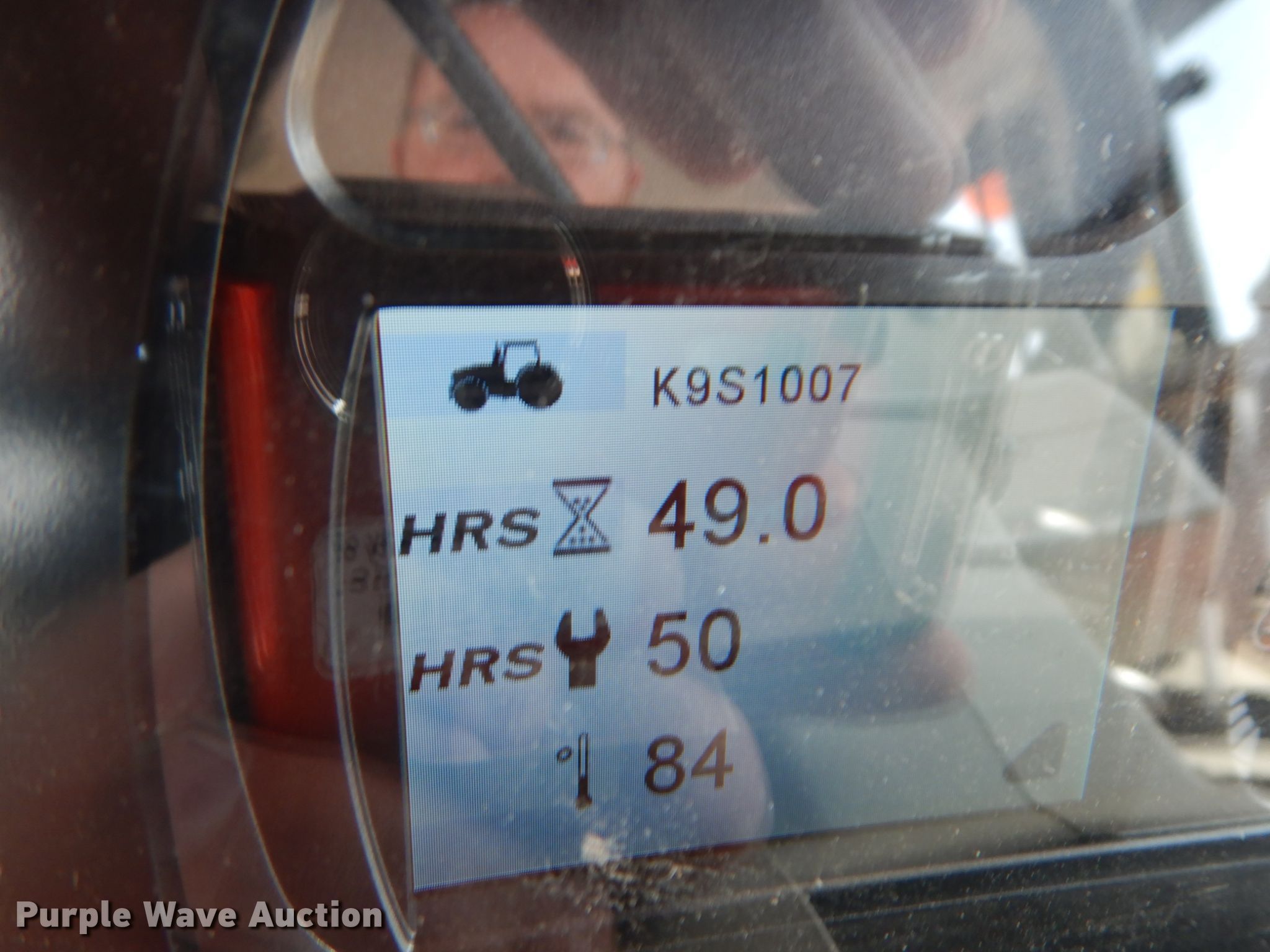 2019 Massey-Ferguson 7724S MFWD tractor. 49 hours on meter, Serial: AGCM7724EKN9S1007. Engine AGCO, Displacement: 7.4L, Cylinders: 6, Fuel type: Diesel. Transmission Dyna-VT CVT, Left-hand reverser. Operators station AC, Heat. Operational PTO: 1000, Three point Top link, Quick attach, Seven pin outlet, ISOBUS outlet, Hydraulic remote sets Rear: 4. Tires Front: 380/85R34, Rear: 480/80R46, Wheel weights: 2, Duals. Kubota Tractor Corp. 1000 Kubota Dr. Grapevine, TX 76051