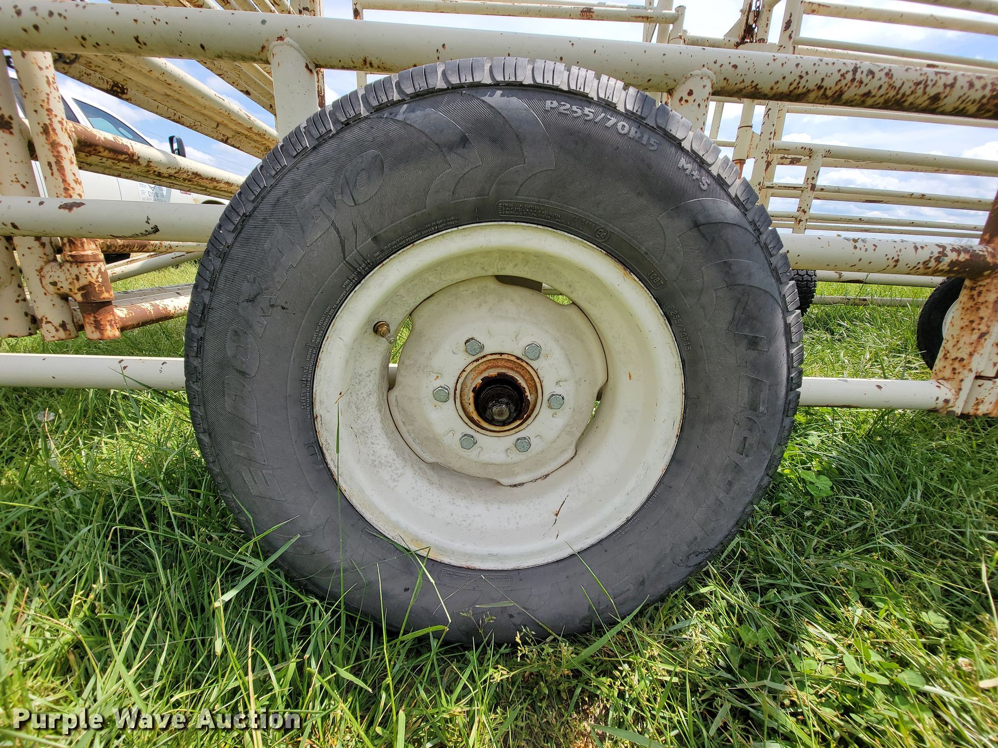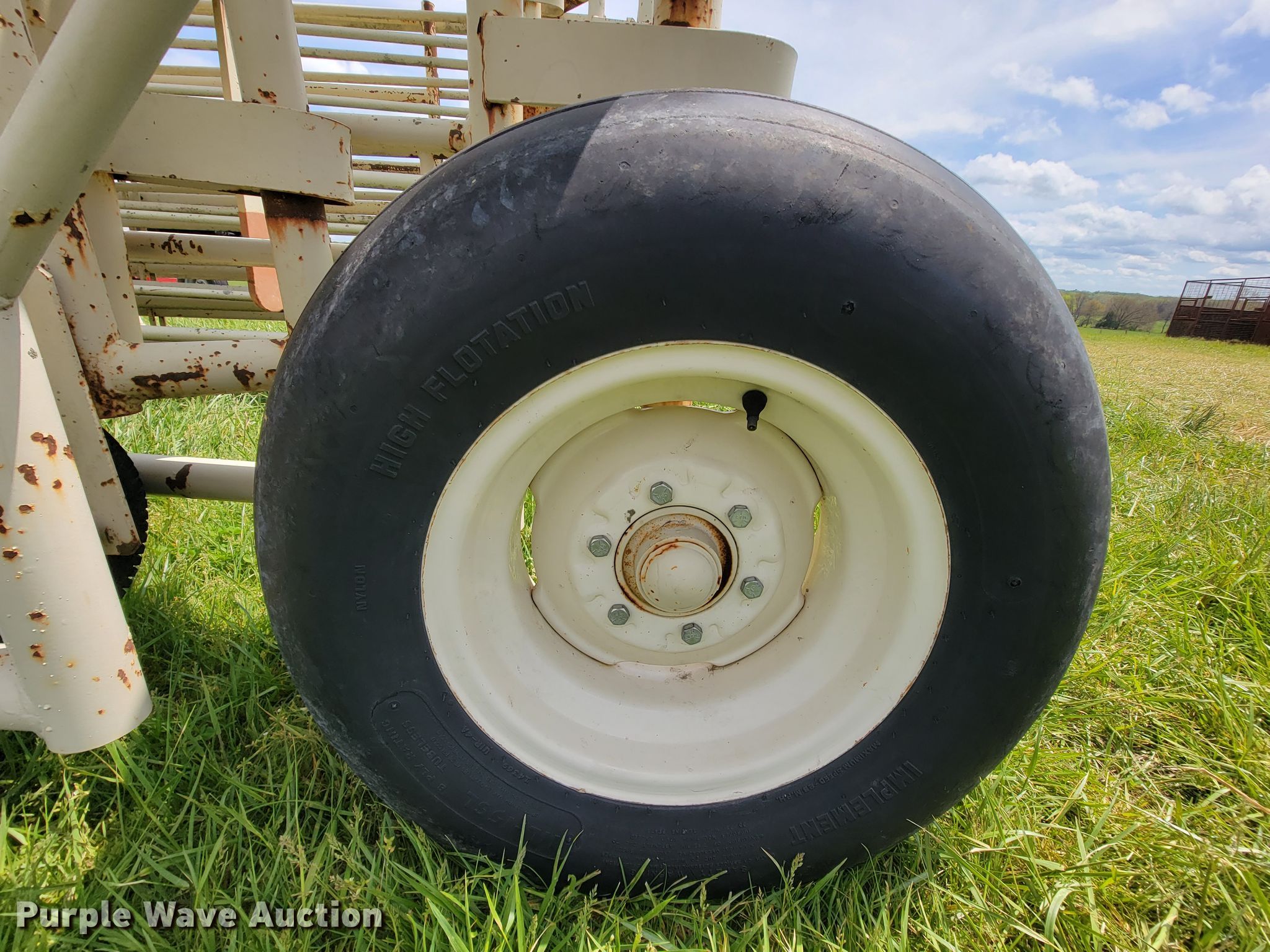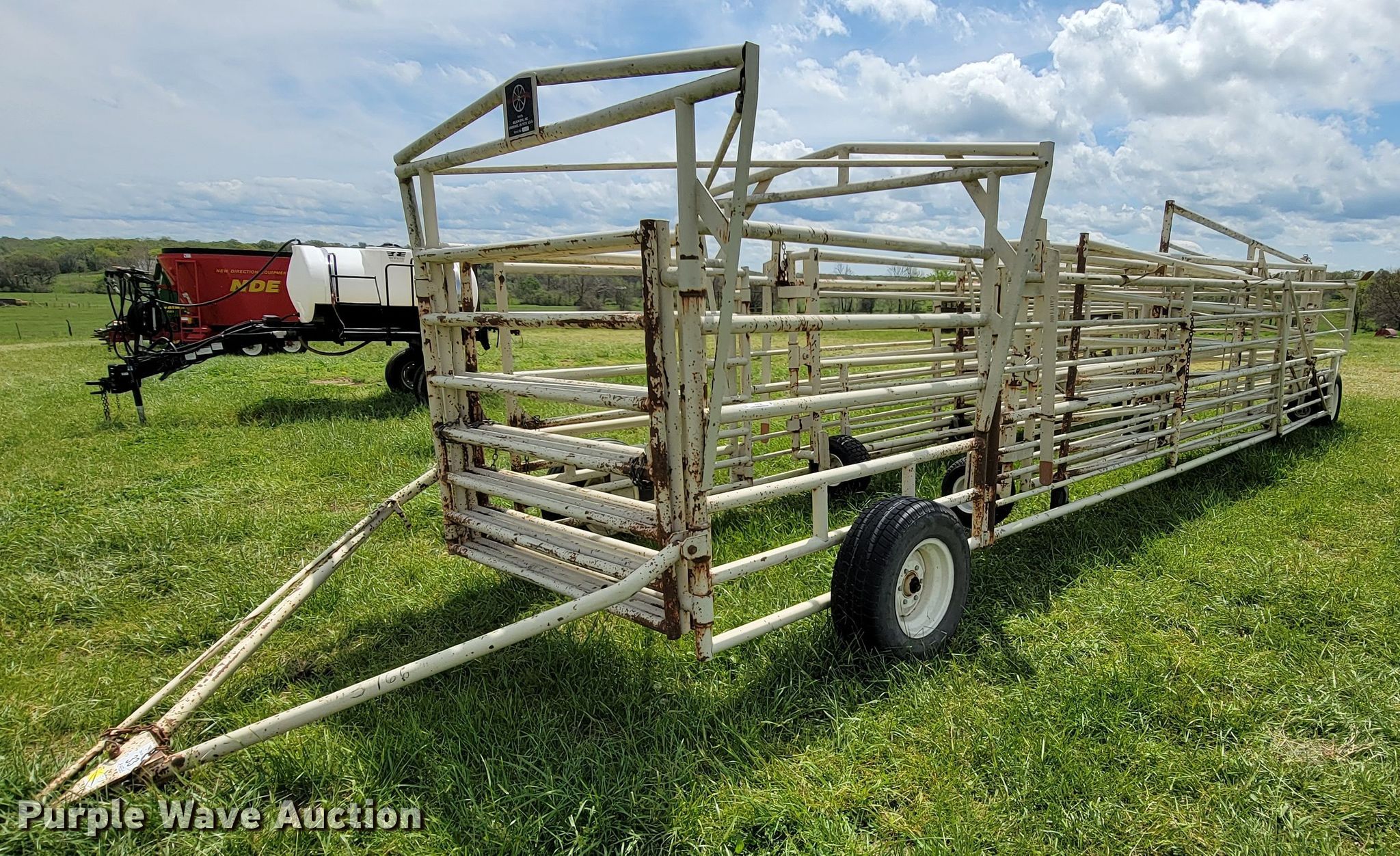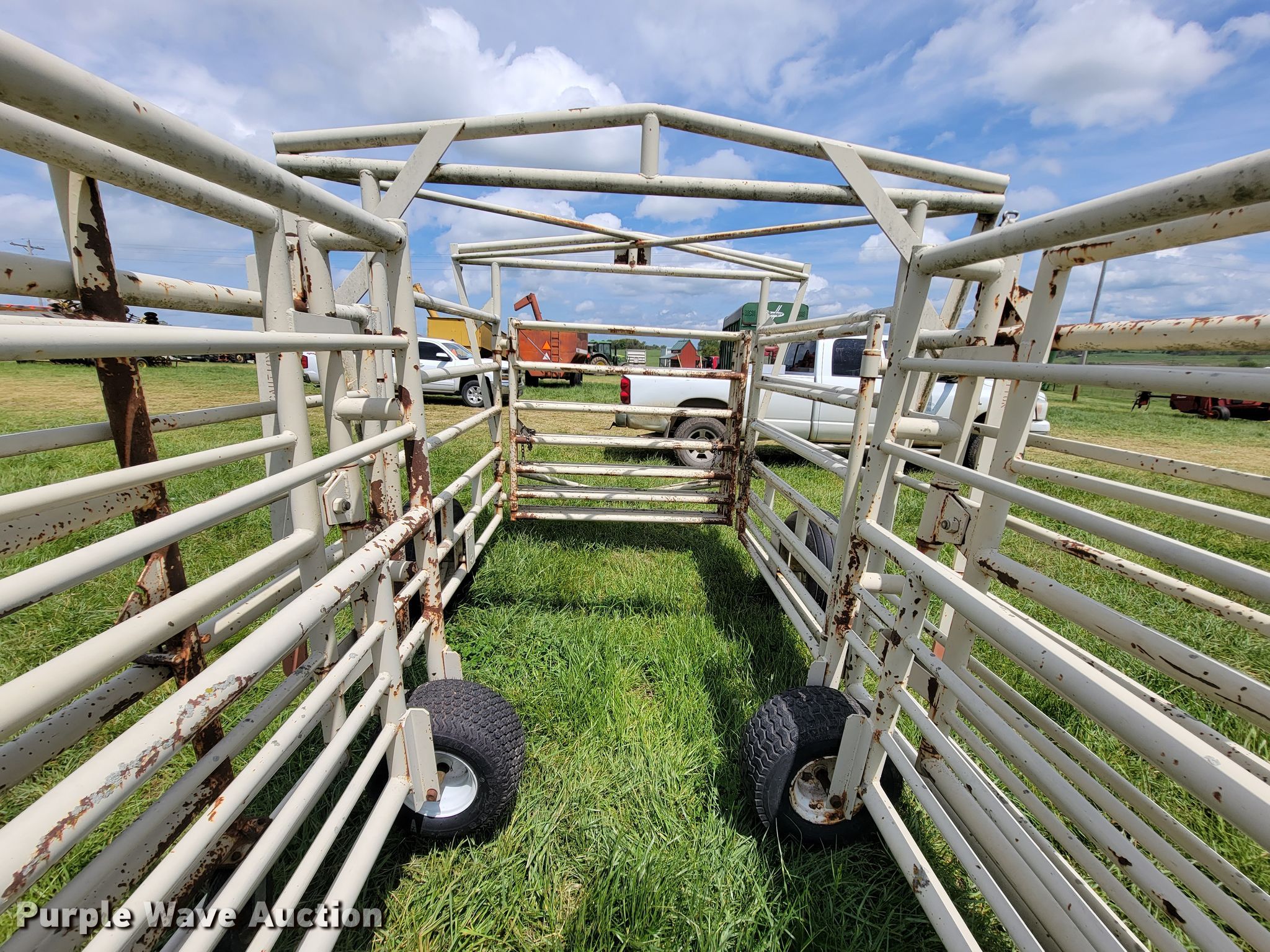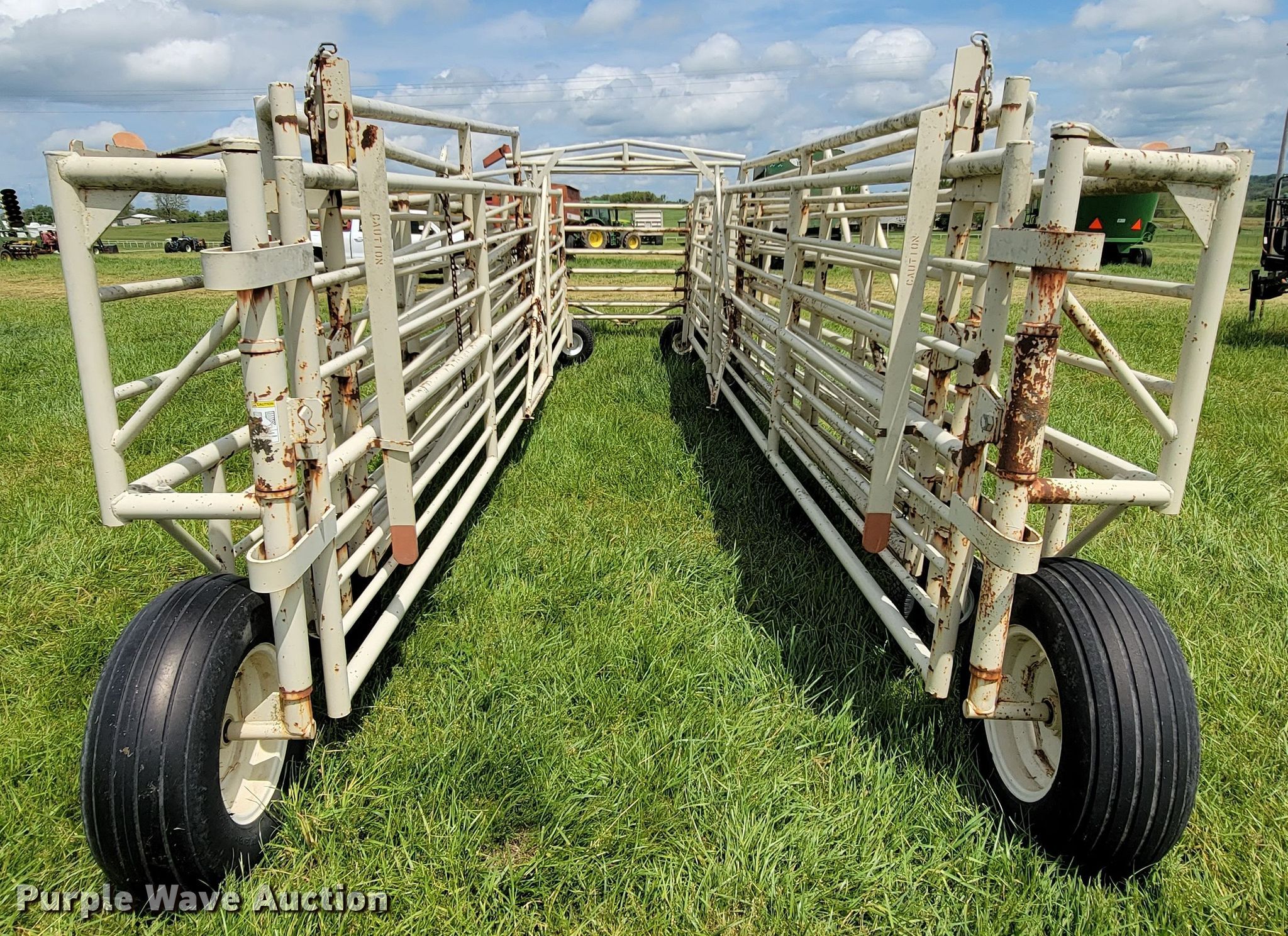 Purple Wave is selling a used Livestock Equip. in Missouri. This item is a Wilson corral with the following: (11) panels, (2) 24'L, (2) 22'L, (2) 20'L, (2) 10'L, (3) 6'L, 10' swing gate, (2) gauge wheels, 11L-15 tires, Serial 2214