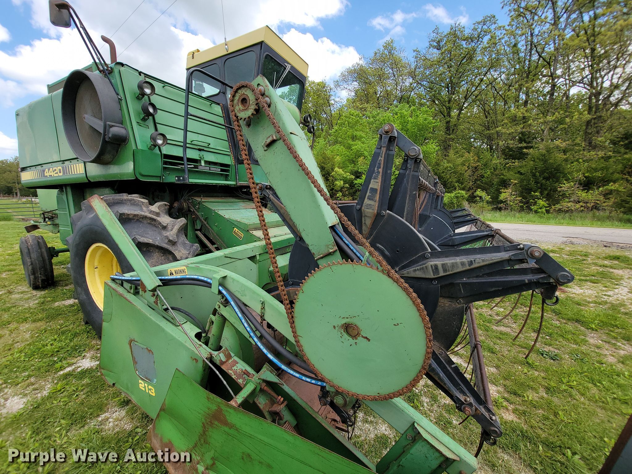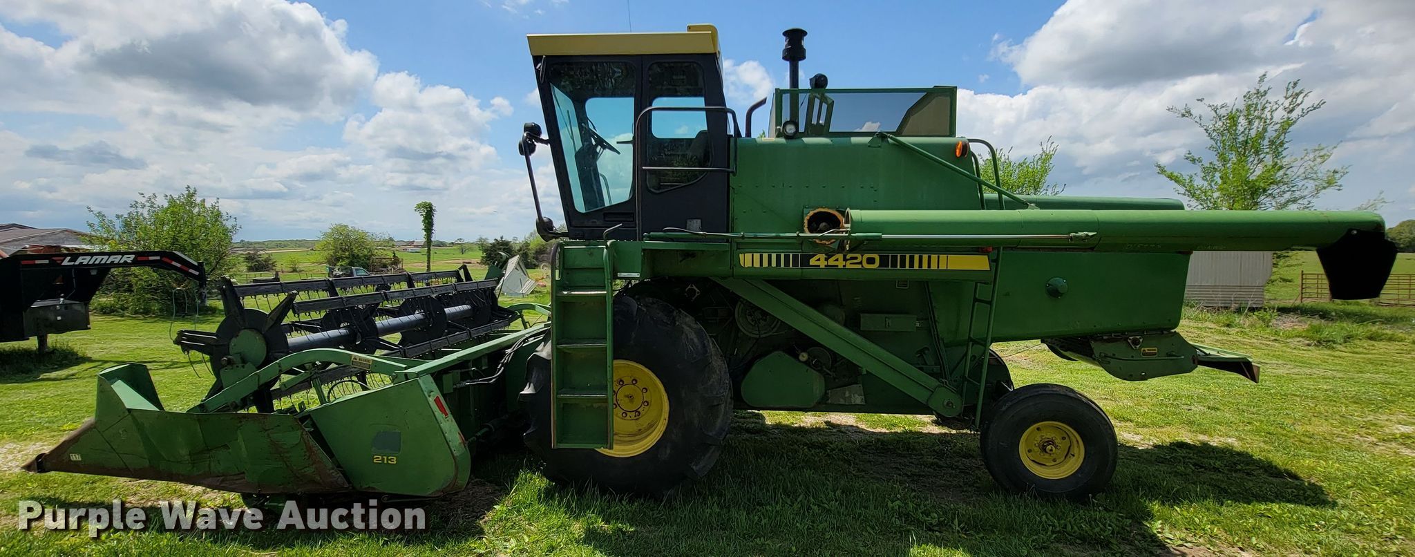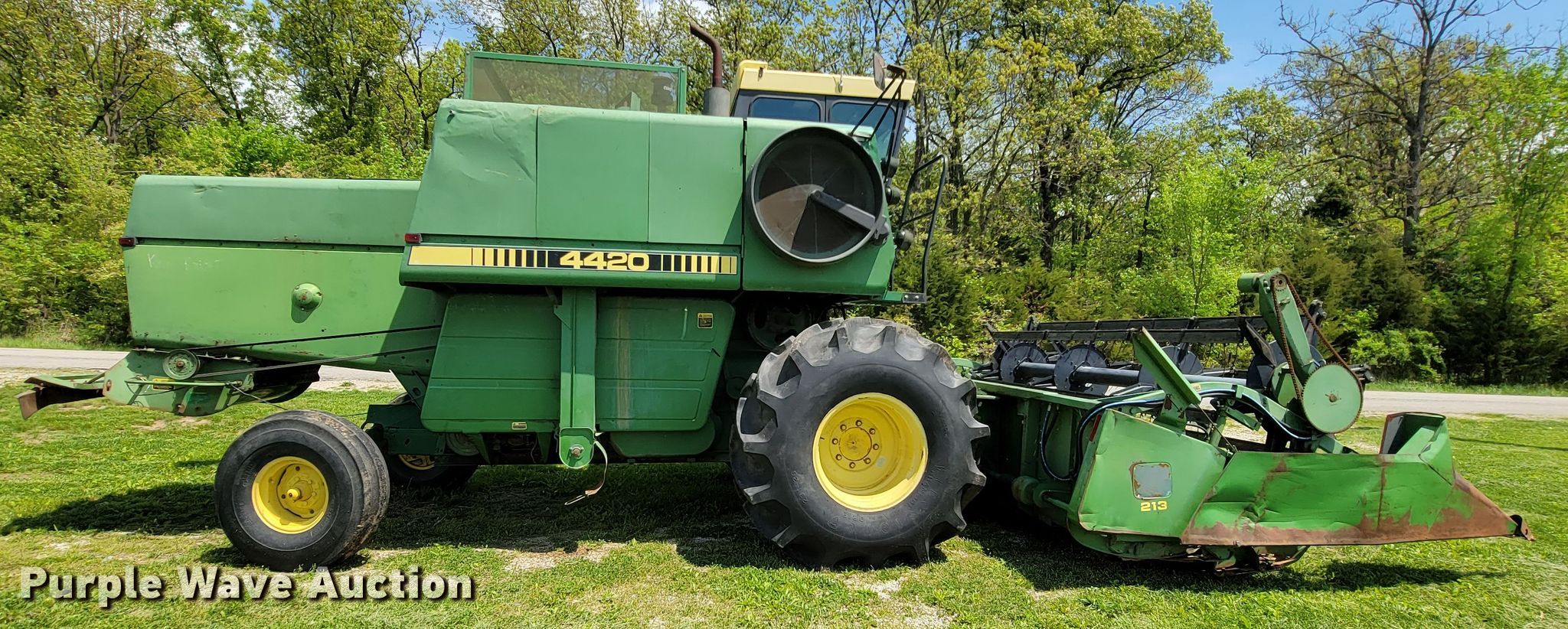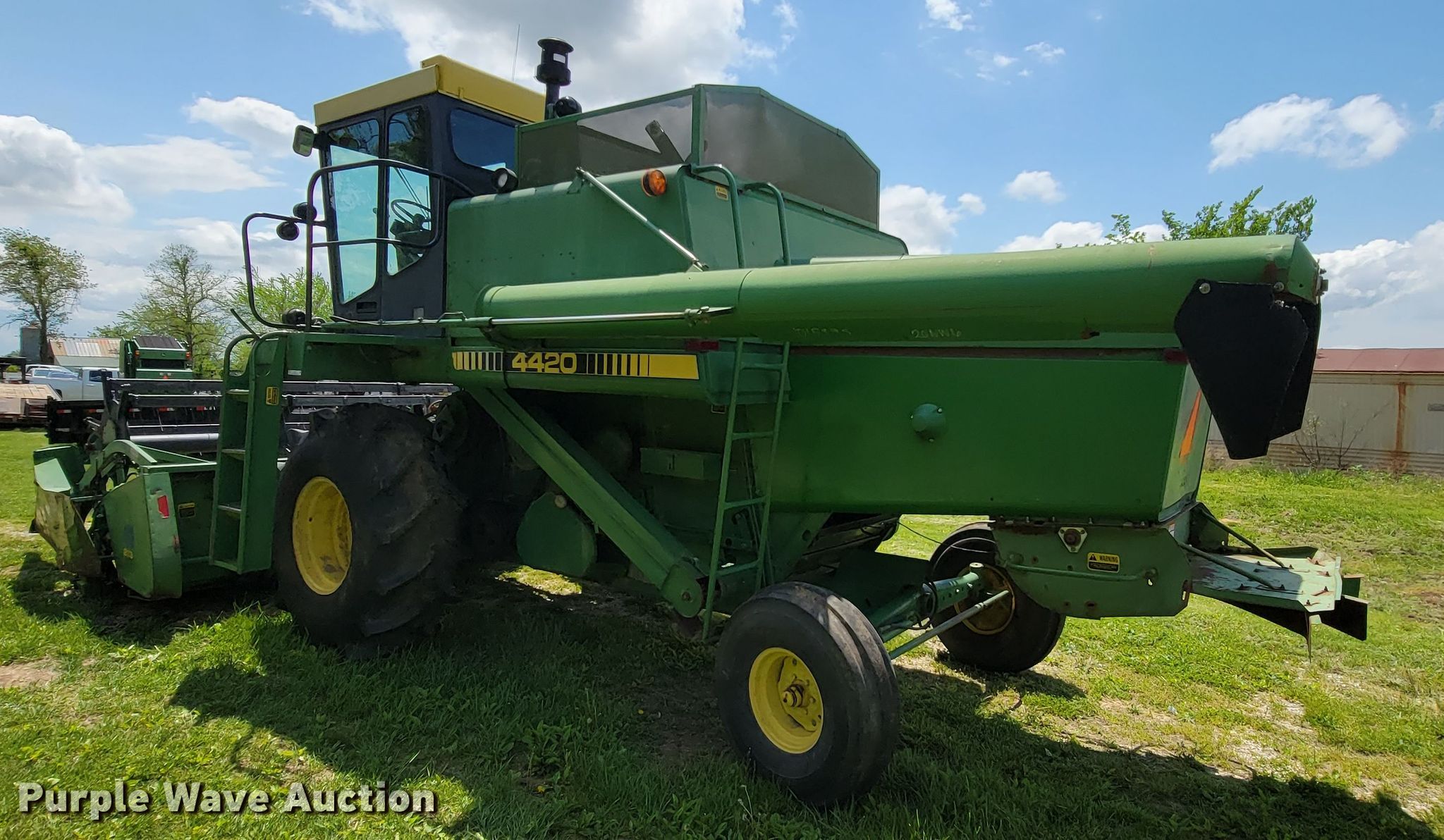 Purple Wave is selling a used Combine in Missouri. This item is a 1984 John Deere 4420 RWA combine with the following: Engine hours: 3,633, Serial: H04420X600240