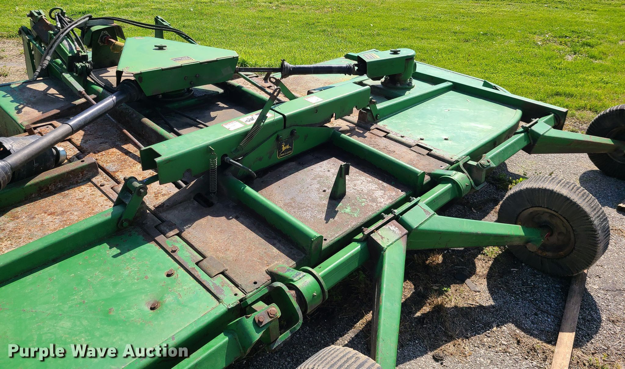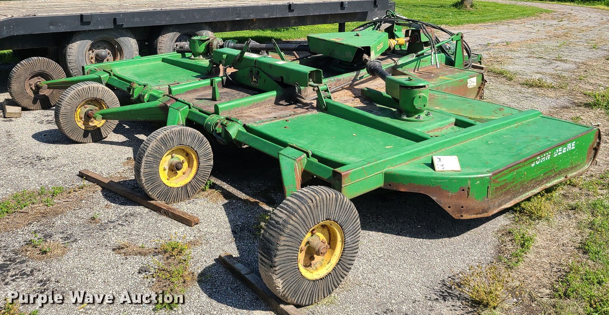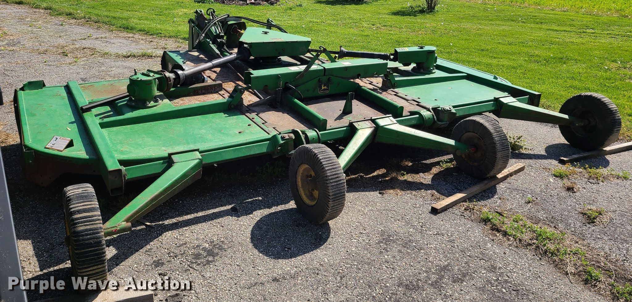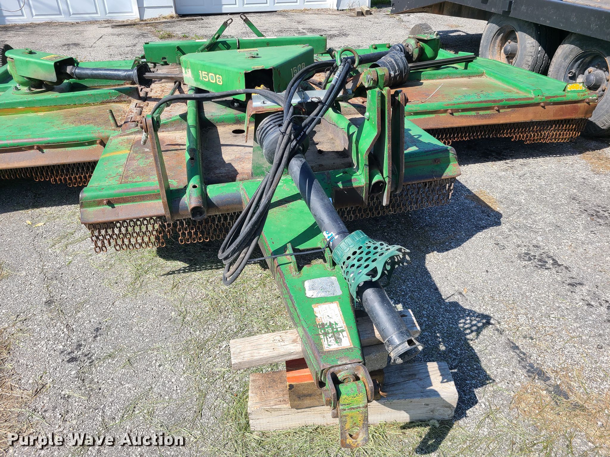 Purple Wave is selling a used Mower, Cutter, Shredder in Missouri. This item is a John Deere 1508 batwing rotary mower with the following: 15'W, 1000 PTO, Solid tires, Serial W01008F029831