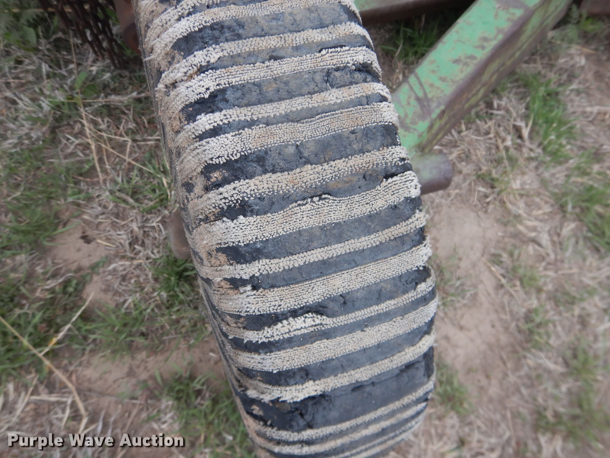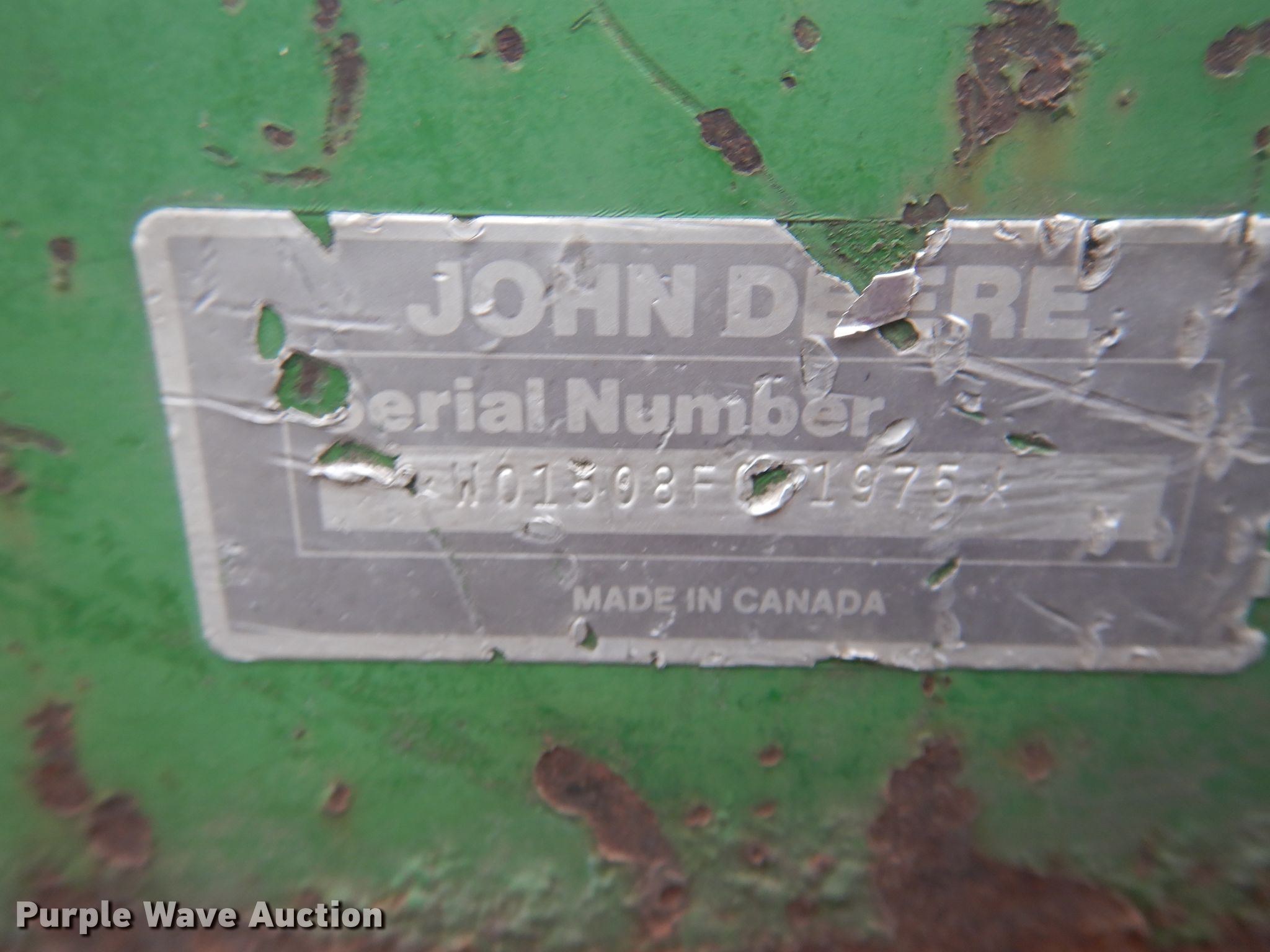 John Deere 1508 batwing rotary mower. Serial: W01508F01975. Operational Width: 15', Hydraulic lift, Hydraulic fold, PTO: 1000. Tires Solid. Notes Unknown operating condition , Serial W01508F01975. 1587 Cottonwood. Sublette, KS 67877