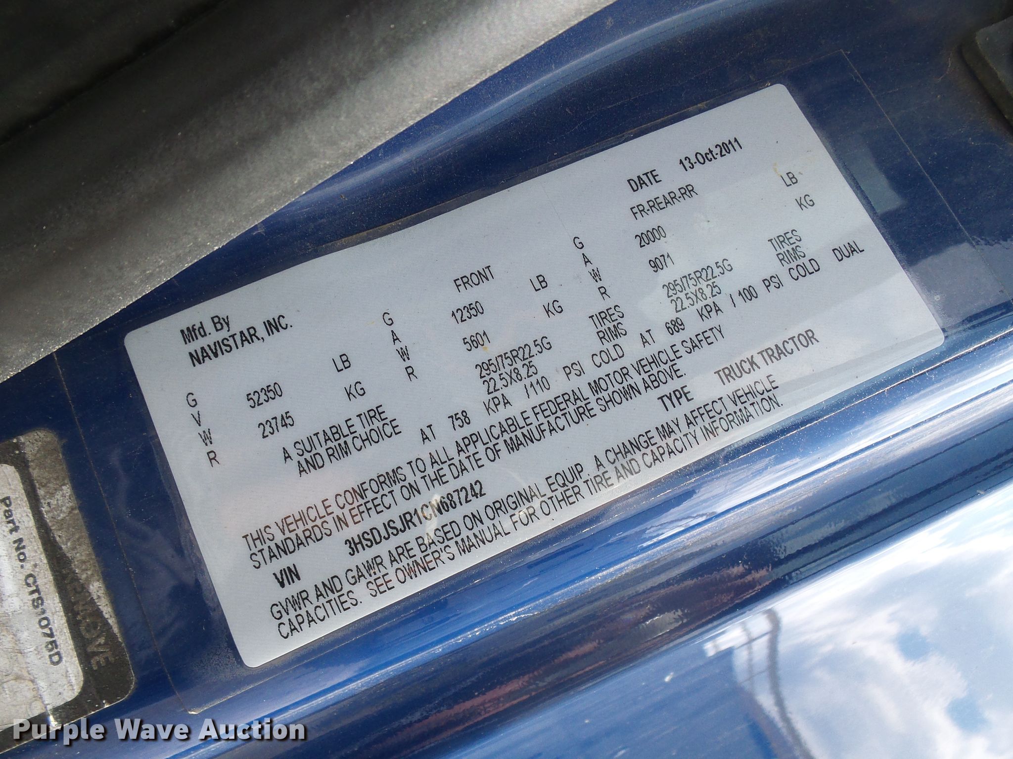 Purple Wave is selling a used Truck Tractor in Missouri. This item is a 2012 International ProStar truck tractor with the following: 696,986 miles on odometer, Engine hours: 24,181