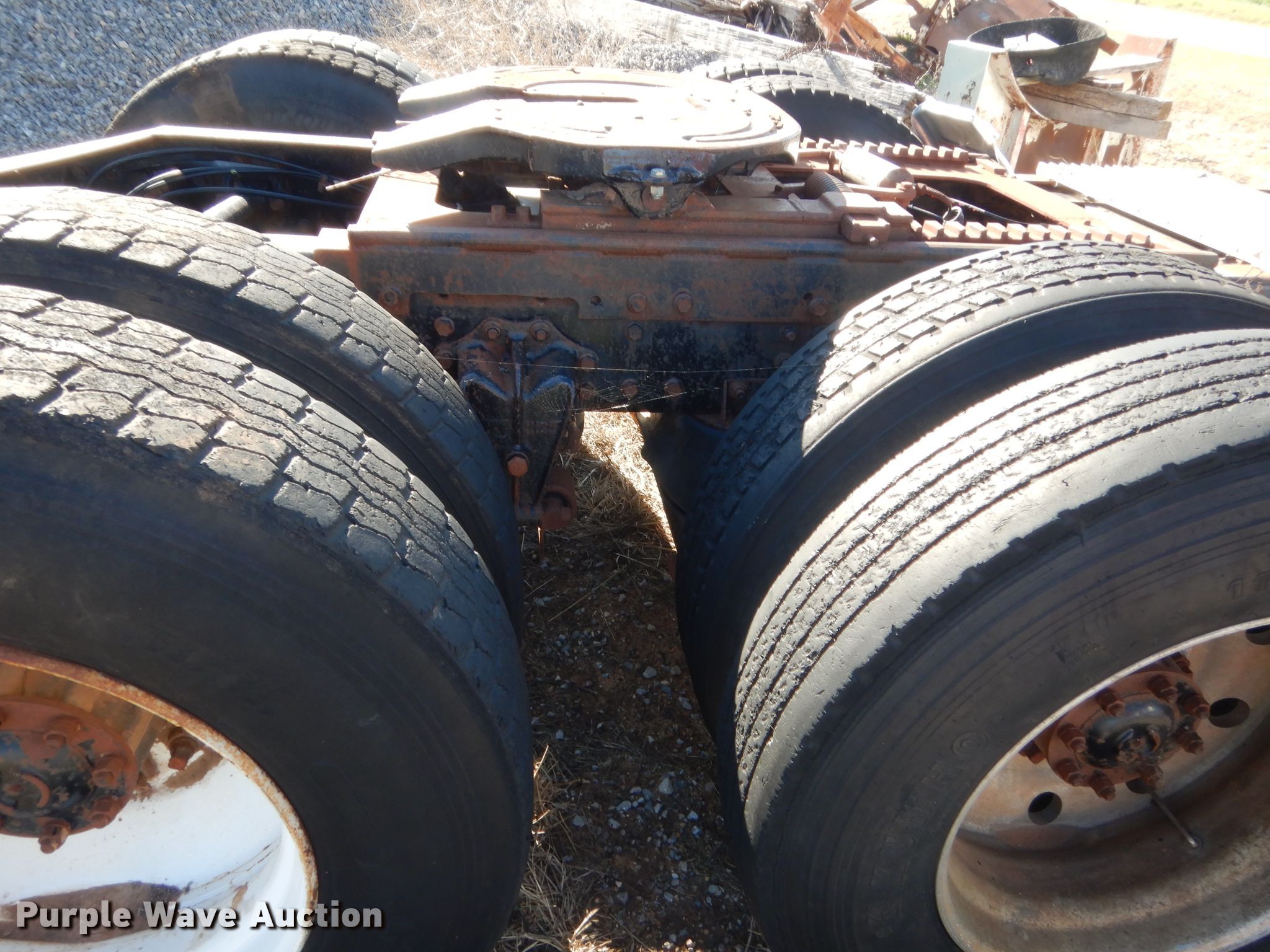 1989 White GMC WIA semi truck. 591,443 miles on odometer. Engine Cylinders: 6, Fuel type: Diesel. Transmission Eaton Fuller Roadranger, Manual, Speed: 13. Chassis Axles: Tandem, Suspension: Air, Brakes: Air. Interior Sleeper Sleeper length: 3', Beds: Single. Operational Fifth wheel type: Air operated, Fuel tank: Dual. Tires Size: 11R24.5. Notes Non-operational engine, Non-operational unit. Oklahoma title. 4V1WDBCH1KN616437. Geary, OK 73040