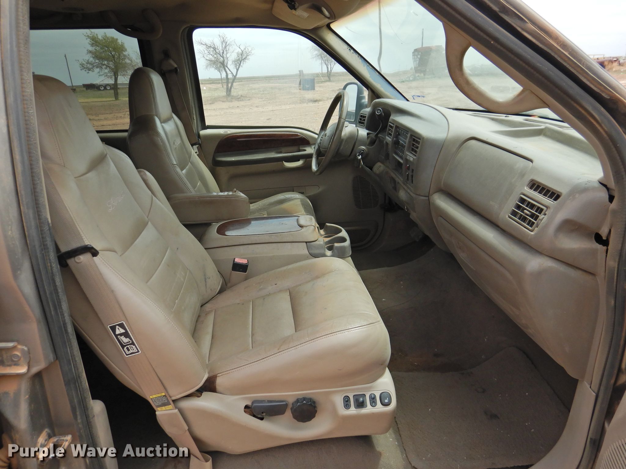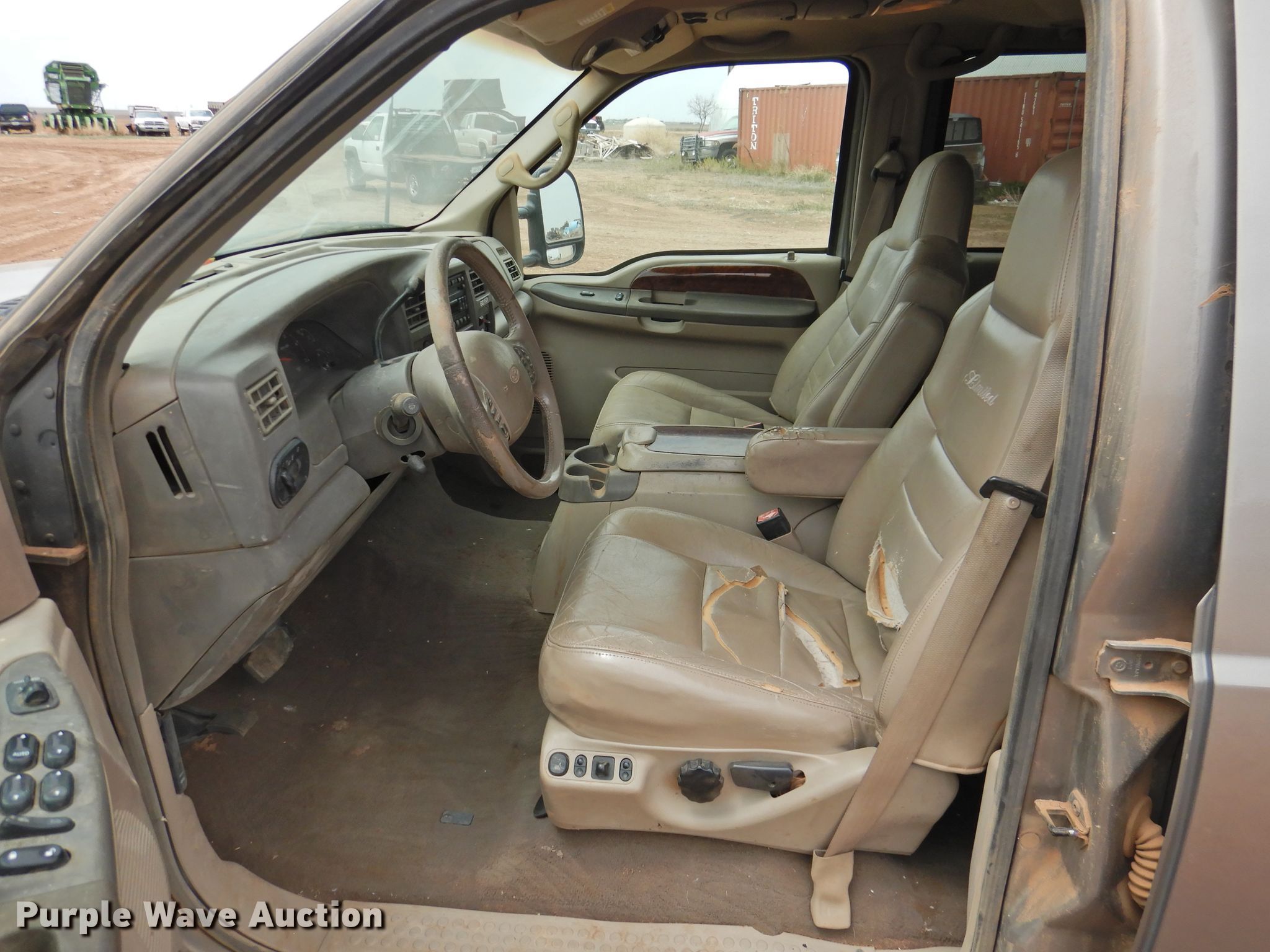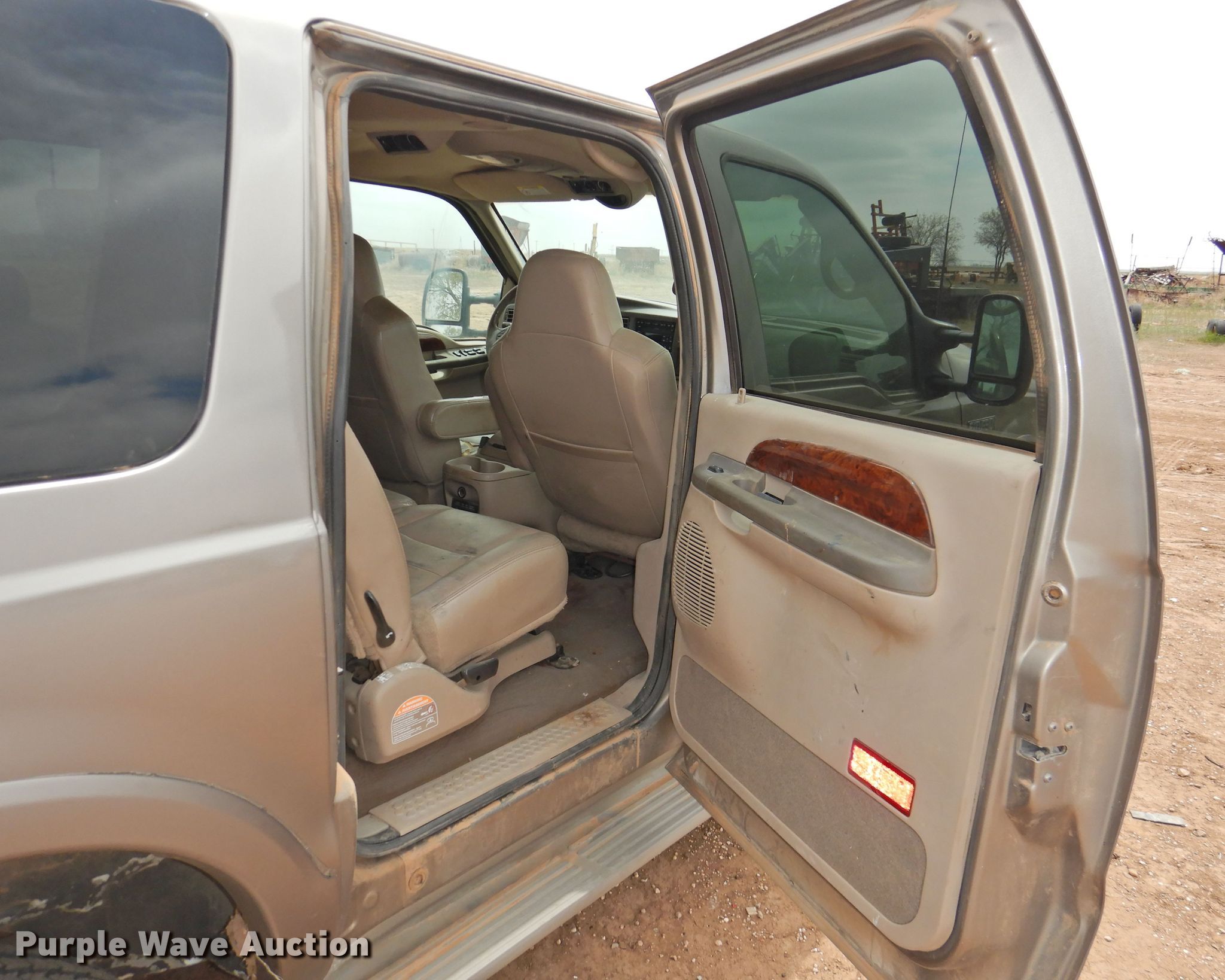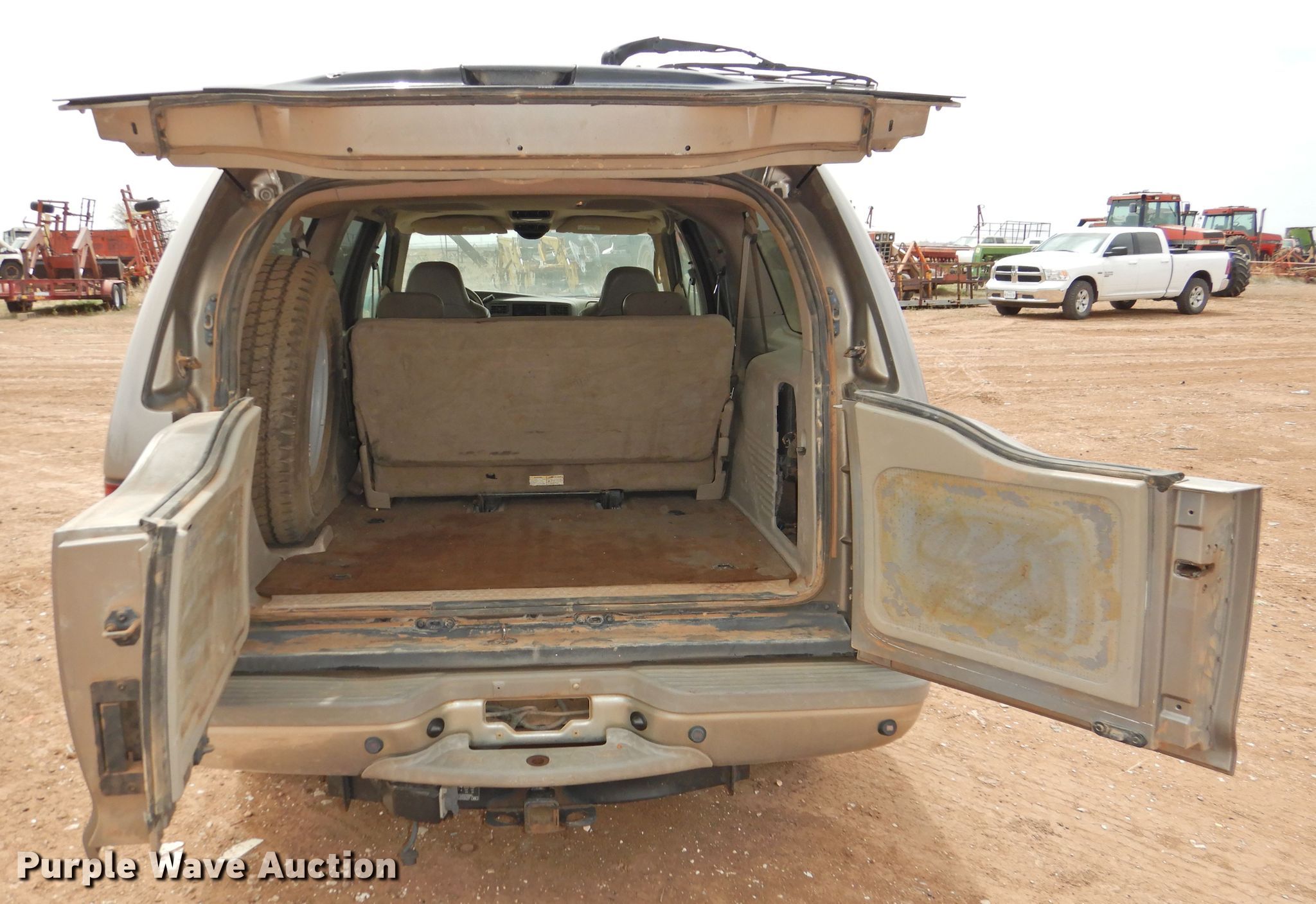 2002 Ford Excursion SUV. 196,304 miles on odometer. Engine Displacement: 7.3L V8 OHV 16V, Cylinders: 8, Fuel type: Diesel. Transmission Automatic, Four wheel drive. Interior AC, Heat, Seat: Heated, Power driver, Power passenger, Power windows, Power locks, Cruise control. Tires Size: 235/85R16. Texas rebuilt salvage title. Title distribution may be delayed up to 30 days from verification of funds. 1FMSU43F62EB88111. Dutton Farms. 1499 County Rd 2. Tulia, TX 79088