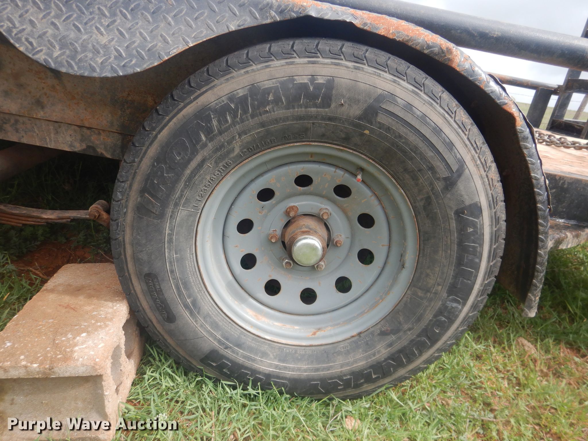 2013 Road Boss equipment trailer. Claim #: 2021803200. Dimensions Overall: 22' L x 101" W, Deck: 18' L x 7' W, Ramps: Manual Length: 6'. Operational Deck type: Wood. Chassis Ball hitch: 2 5/16", Landing gear: Single, Manual, Suspension: Spring, Brakes: Electric, Axles: Tandem. Tires Steel wheels, Size: 235/80R16. Notes Rollover damage. Insurance salvage unit.. Oklahoma title. 5Z0BP1827DP005608. Oklahoma Farm Bureau Insurance. Arapaho, OK 73620