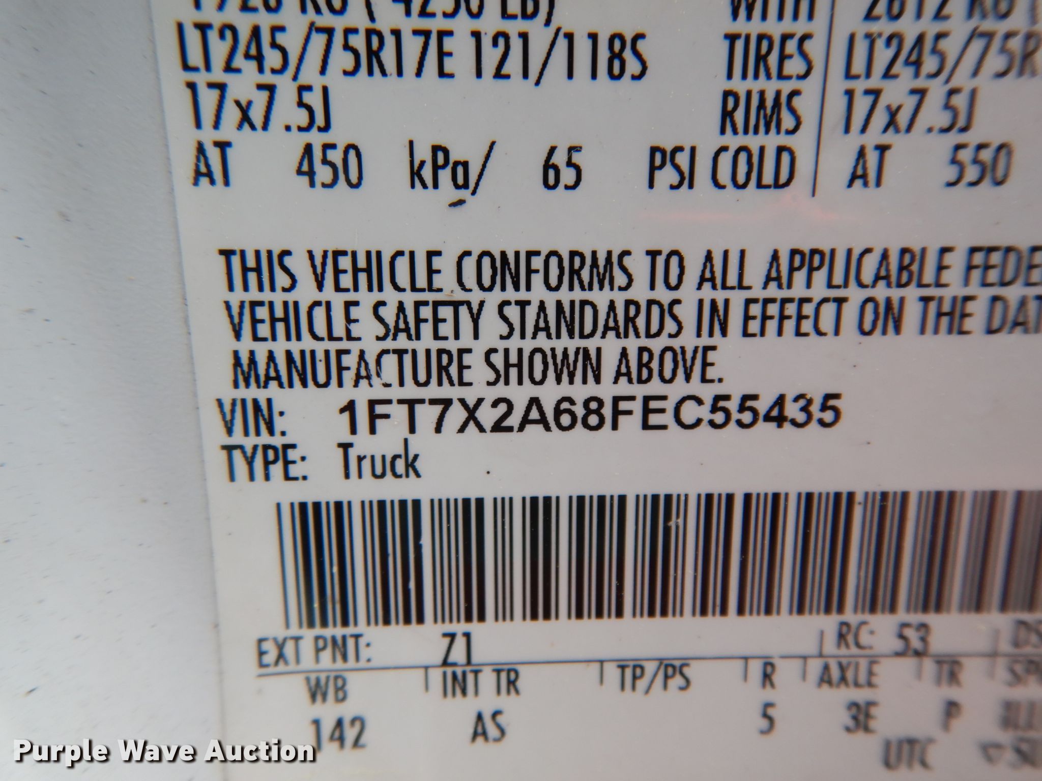 2015 Ford F250 Super Duty SuperCab pickup truck. 120,888 miles on odometer, Unit #: 110156. Engine Displacement: 6.2L V8 OHV 16V, Cylinders: 8, Fuel type: Gas. Transmission Automatic, Four wheel drive. Interior AC, Heat, Heated mirrors, Cruise control. Tires Size: 245/75R17. Notes Dash warning indicator: Check engine, TPMS, Air bag, Traction Control, Windshield chipped or cracked. Missouri title. 1FT7X2A68FEC55435. Lionmark Construction Companies. 493 Dr M Roper Pkwy N. Bullard, TX 75757