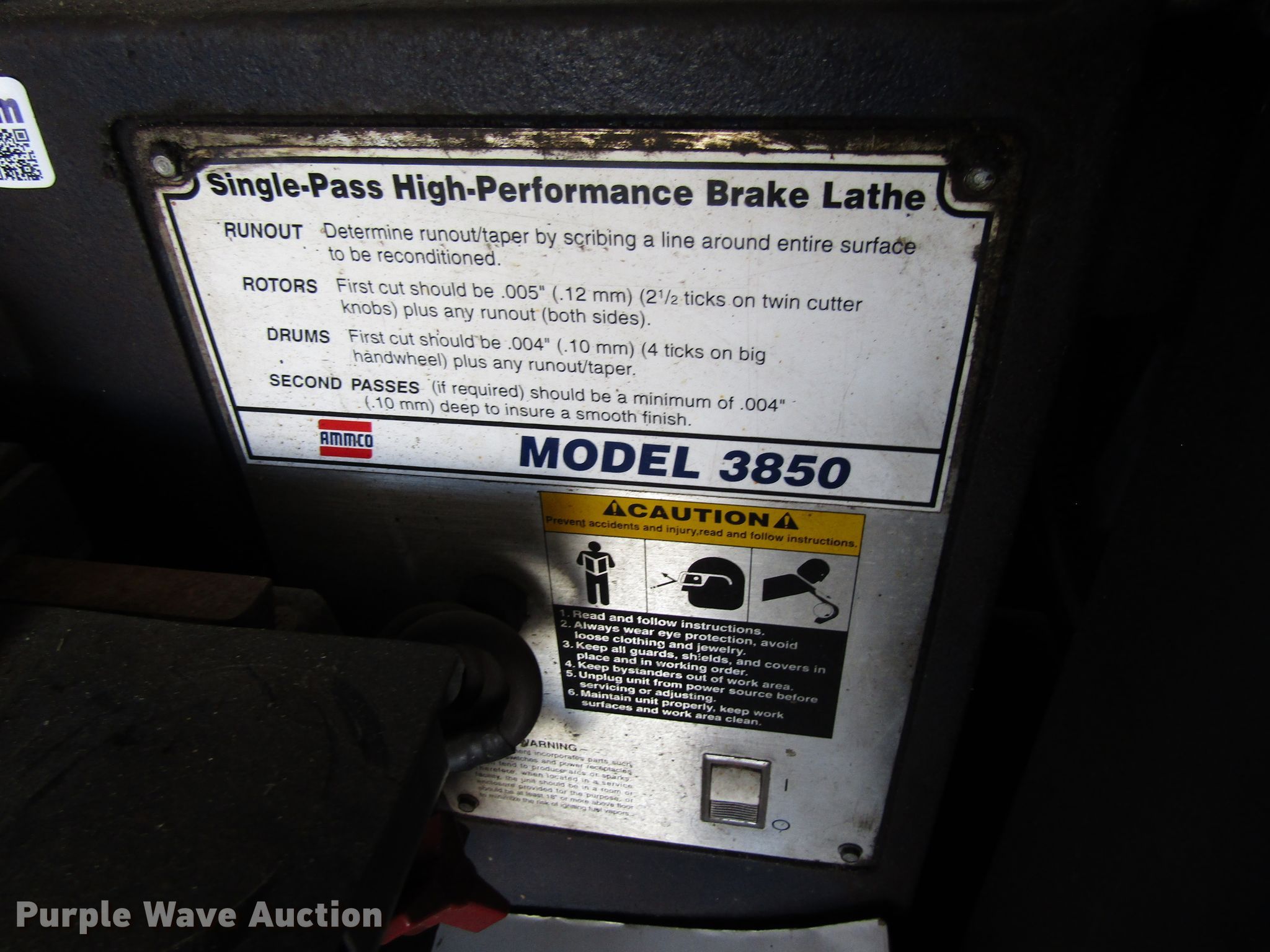 Purple Wave is selling a used Tools in Iowa. This item is a Ammco 3850 brake lathe with the following: Extra fitting/accessories, Manuals