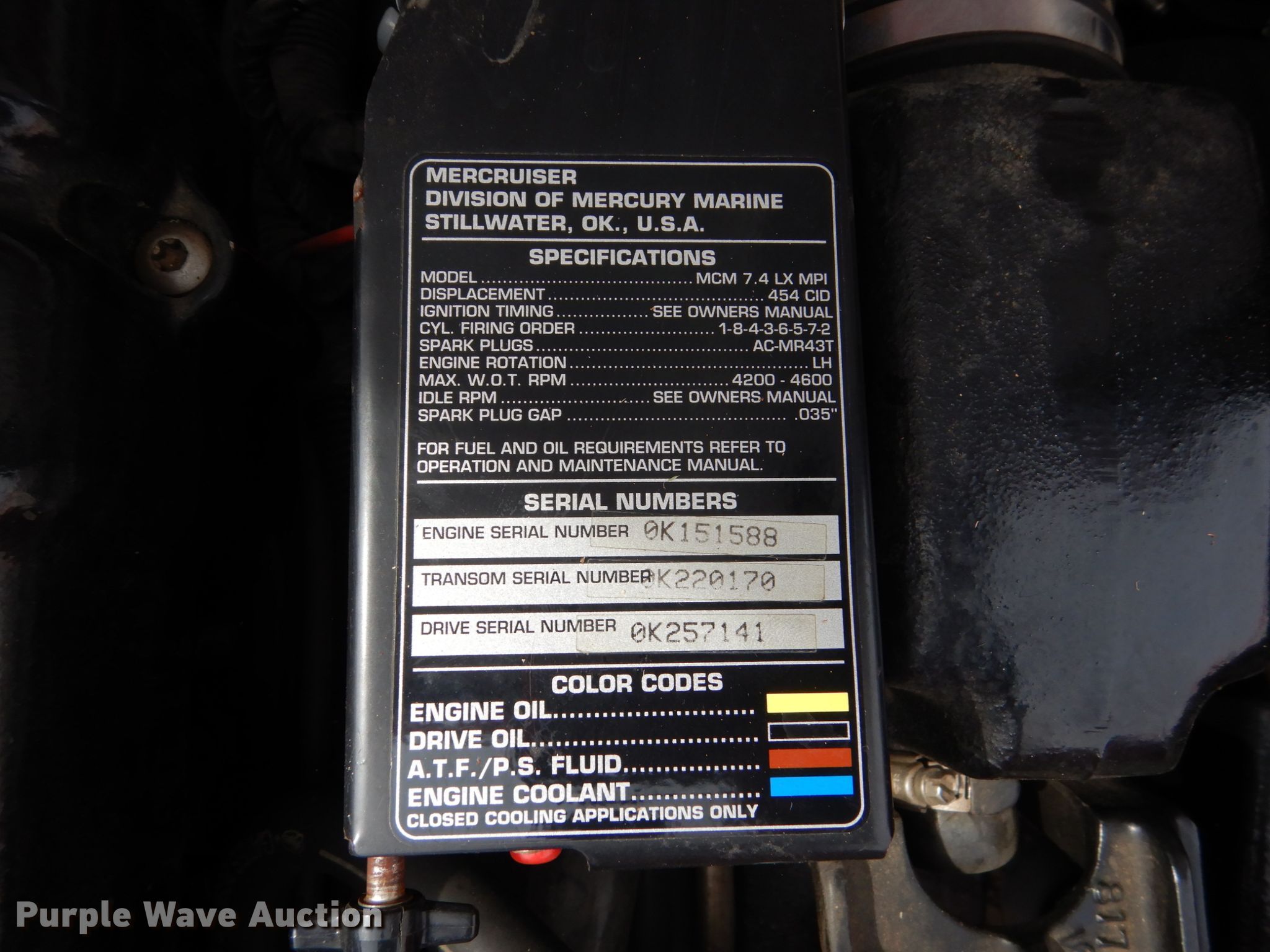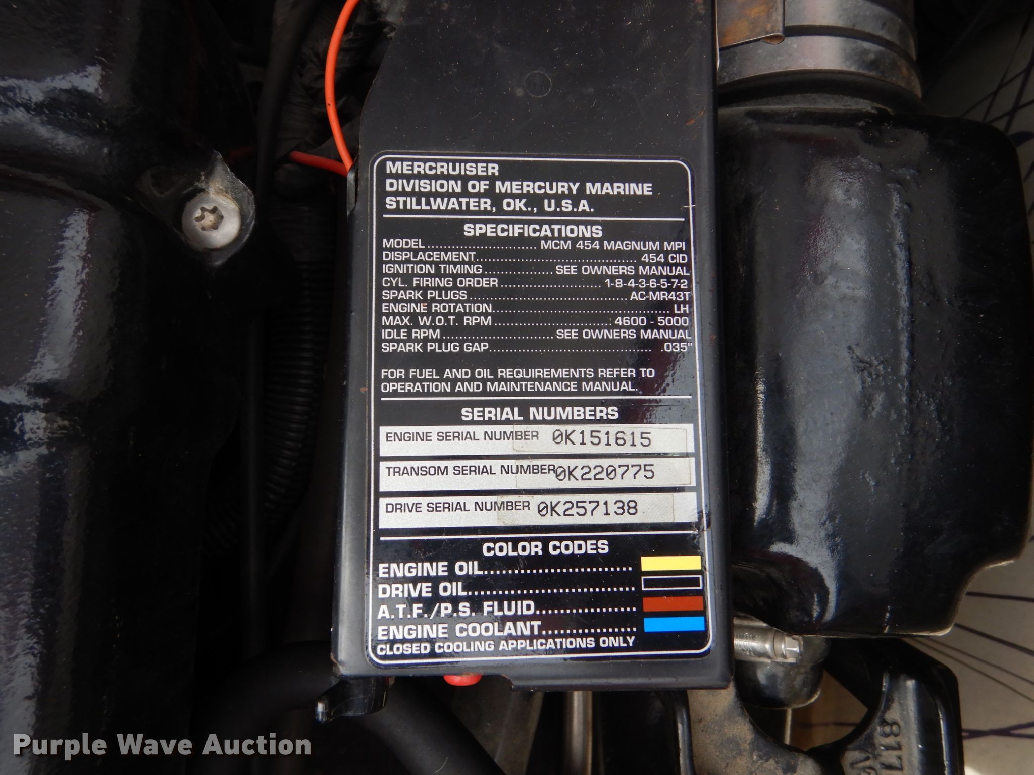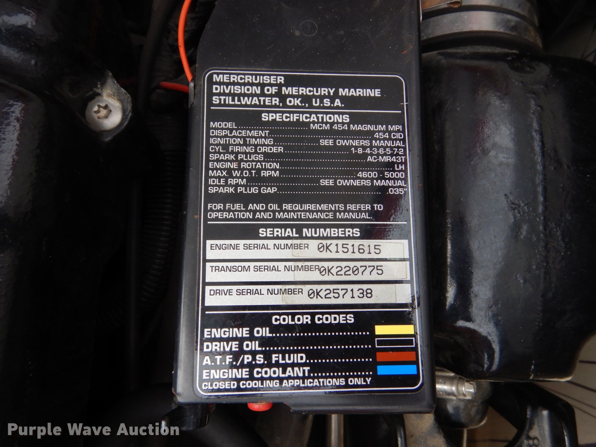 1997 Baja Outlaw boat. 347 hours on meter, Length: 29', Hull ID: AGC56055C797. Engine Engine type: Inboard, Mercury MCM 454 Magnum MPI, Cylinders: 8, Fuel type: Gas, Outdrive Make: MerCruiser, Model: Bravo One, Serial: OK220775, Propellor: Stainless steel. Second engine Engine type: Inboard, Mercury MCM 454 Magnum MPI, Cylinders: 8, Gas , Outdrive Make: MerCruiser, Model: Bravo One, Serial: OK220170, Propeller: Stainless steel. Operational Cuddy cabin. Trailer HLT Limited Eagle, Overall length: 36', Triple axle, GVWR: 15,240 lbs, Tire size: 225/75R15. South Dakota title. 4H1003336G0501194. Groeneweg Construction. 525 N Main Ave. Parker, SD 57053